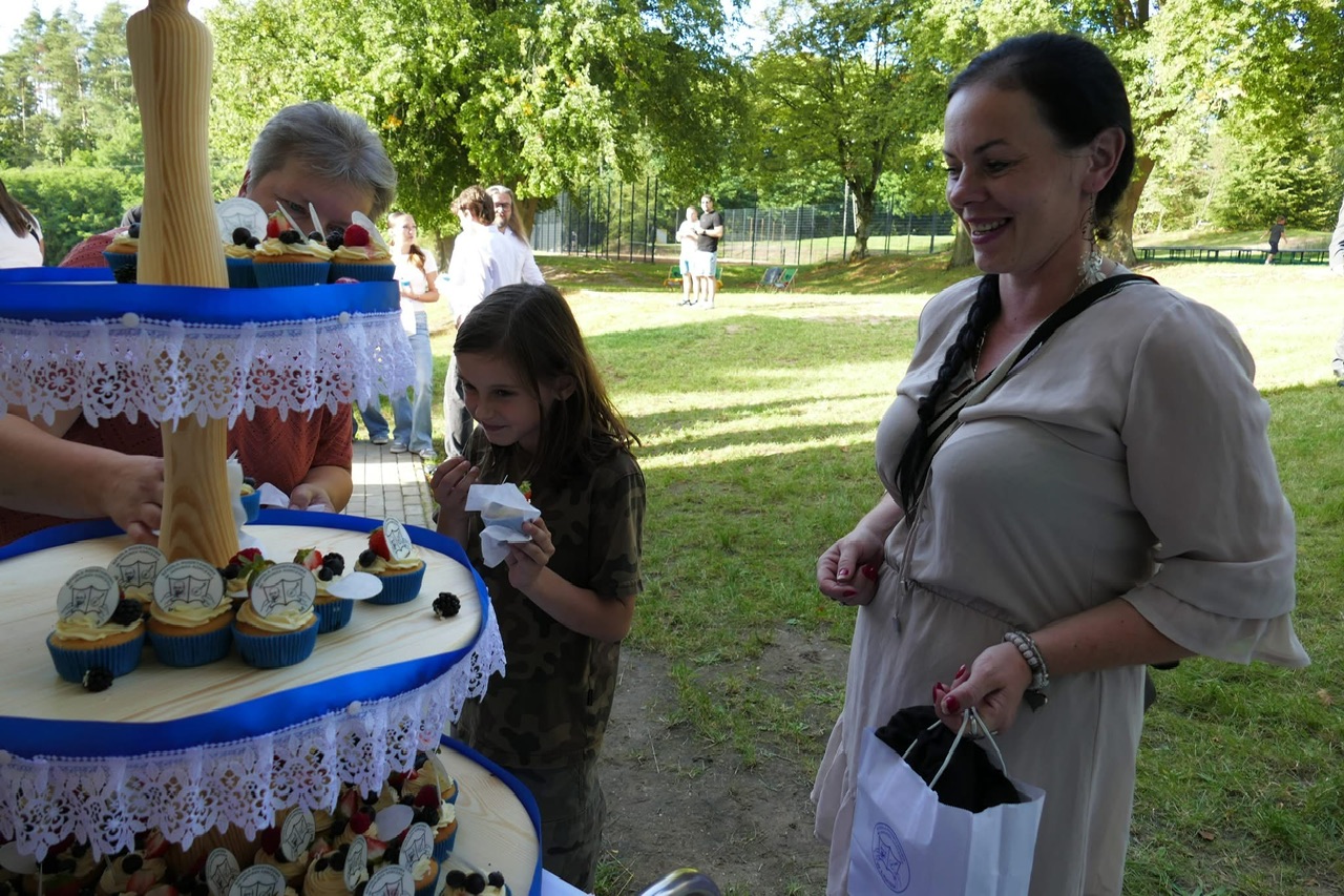 Był czas na życzenia, podziękowania, wręczanie upominków i kwiatów dla dyrektor Pauli Pikulik. Następnie uczestnicy częstowali się jubileuszowym tortem i zwiedzali wystawy przygotowane w szkole: kroniki, pamiątki związane z działalnością „Fryg”, księgę pamiątkową, sale dawnych robótek ręcznych. Na placu za szkołą czekały smakołyki przygotowane przez OSP Łąkie i Koło Gospodyń Wiejskich. Najmłodsi korzystali z atrakcji plenerowych, a starsi bawili się wieczorem na dyskotece.