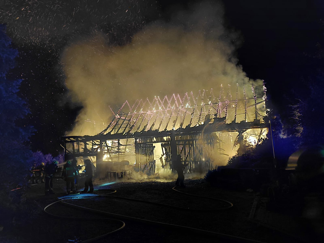 Ogień szybko objął całą stodołę wraz z przechowywanymi tam materiałami gospodarczymi, nawozami oraz garażowanym samochodem pożarniczym, który obecnie stanowił własność prywatną, a niegdyś służył w jednej z jednostek OSP na terenie powiatu.