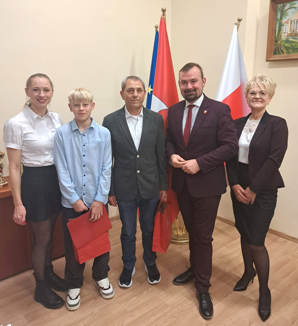 Nie zabrakło również momentów sportowej dumy. Burmistrz pogratulował Filipowi Derlatce, uczniowi, który odniósł imponujący sukces, zdobywając tytuł Mistrza Polski w skoku wzwyż podczas Ogólnopolskich Finałów Czwartków Lekkoatletycznych w Łodzi.