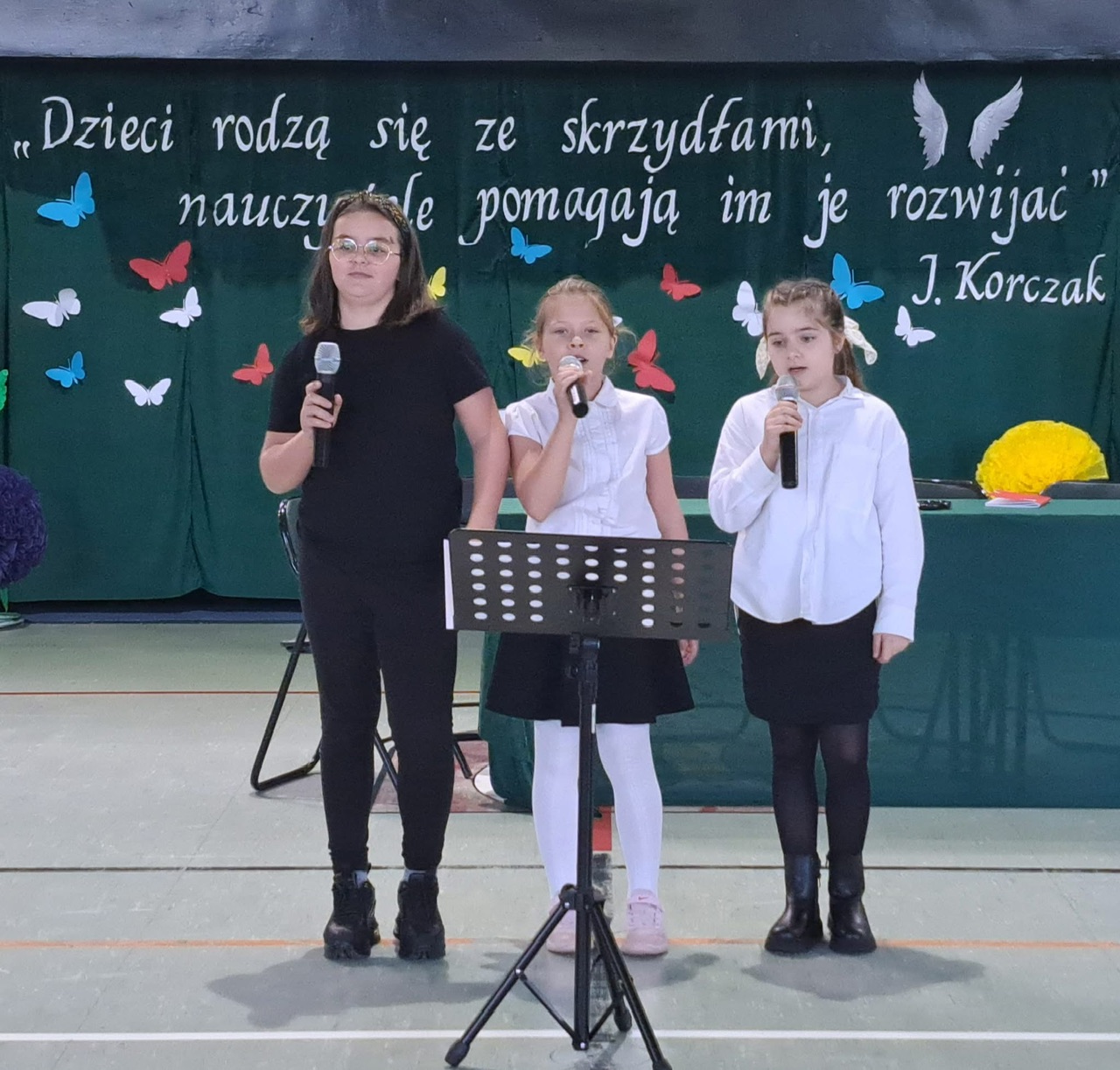 Uczniowie przygotowali wzruszające występy artystyczne, które były pięknym wyrazem wdzięczności wobec nauczycieli. W ich wystąpieniach nie zabrakło humoru, refleksji i emocji – a wszystko to w serdecznej atmosferze, pełnej ciepła i uznania.