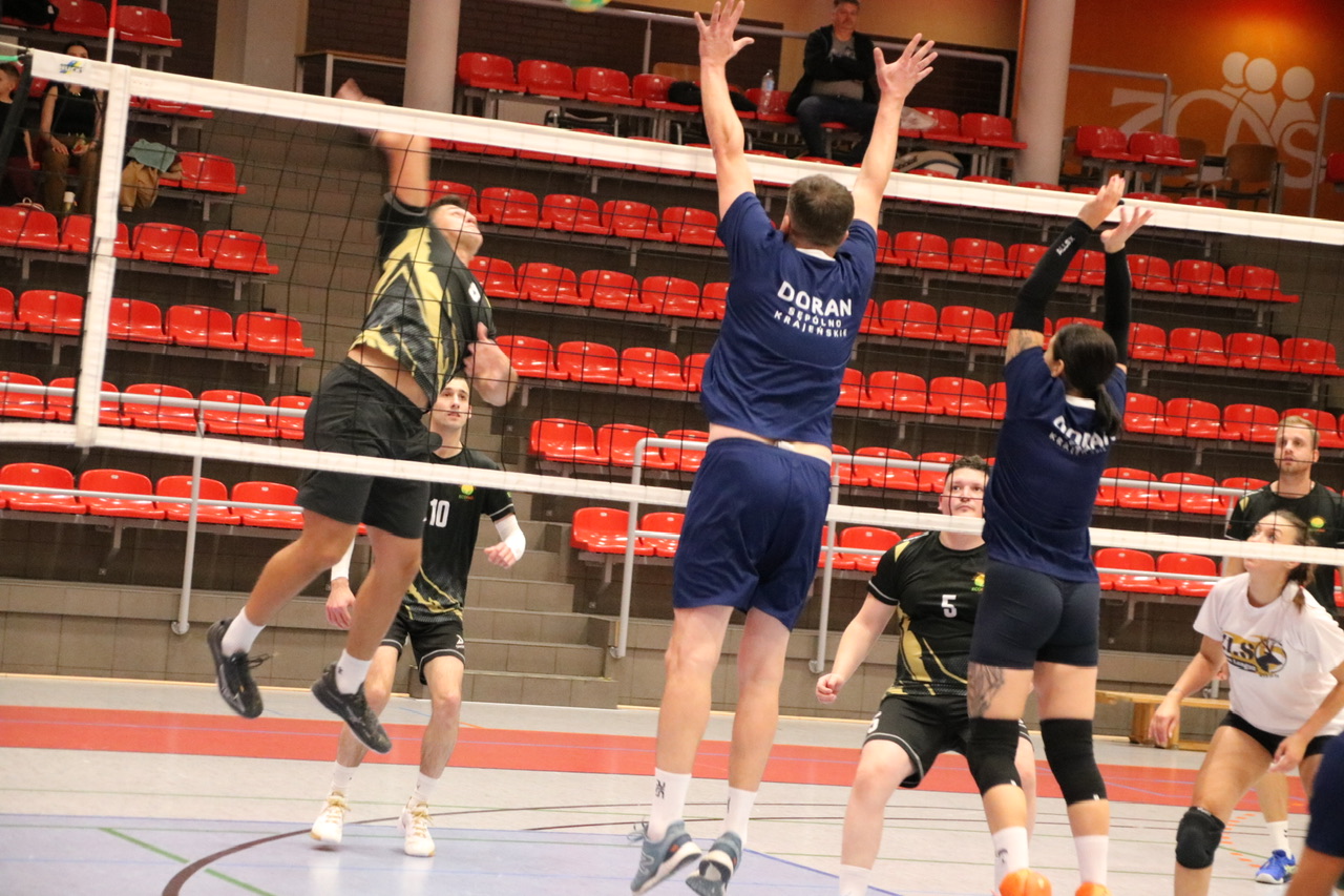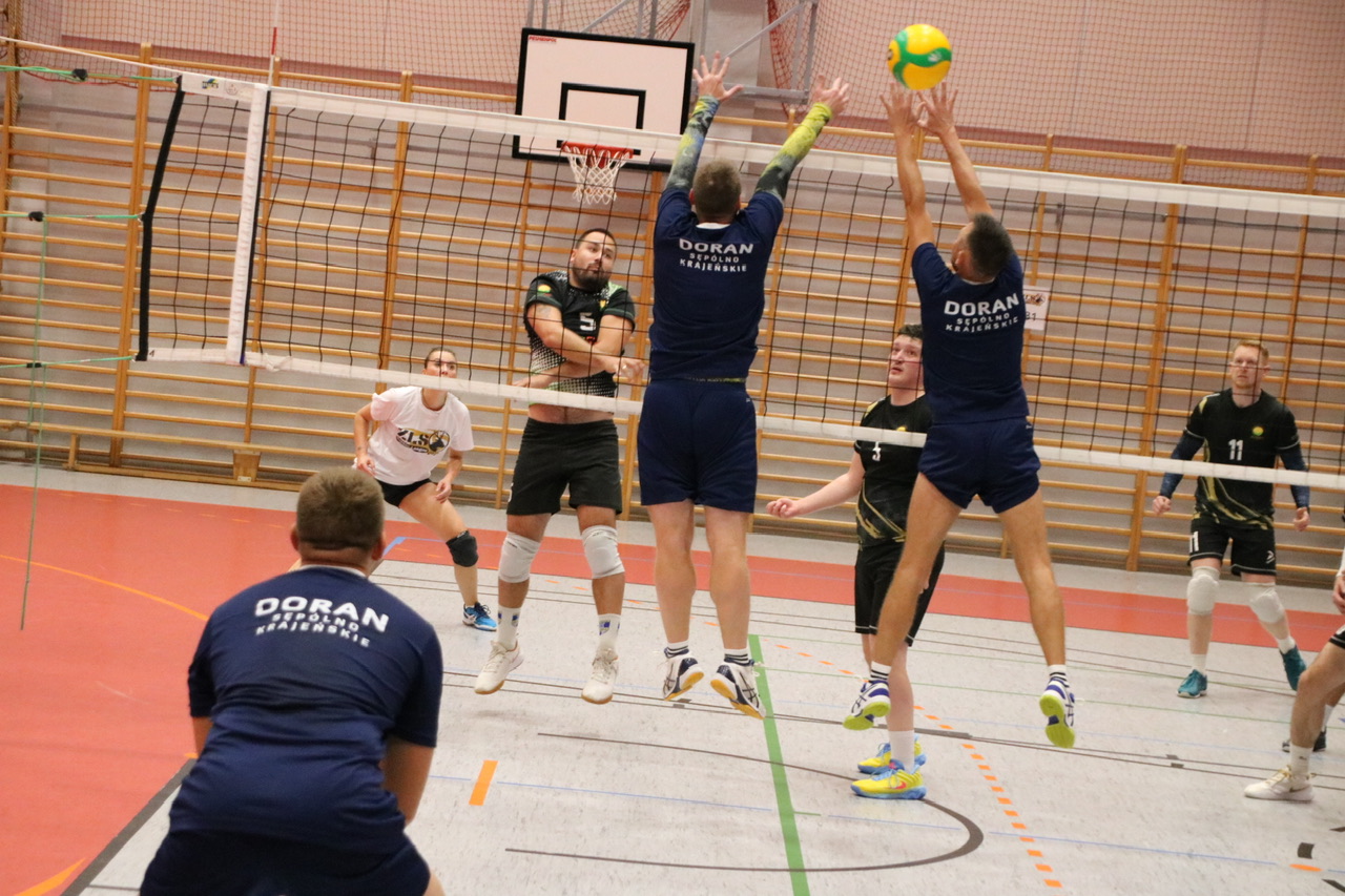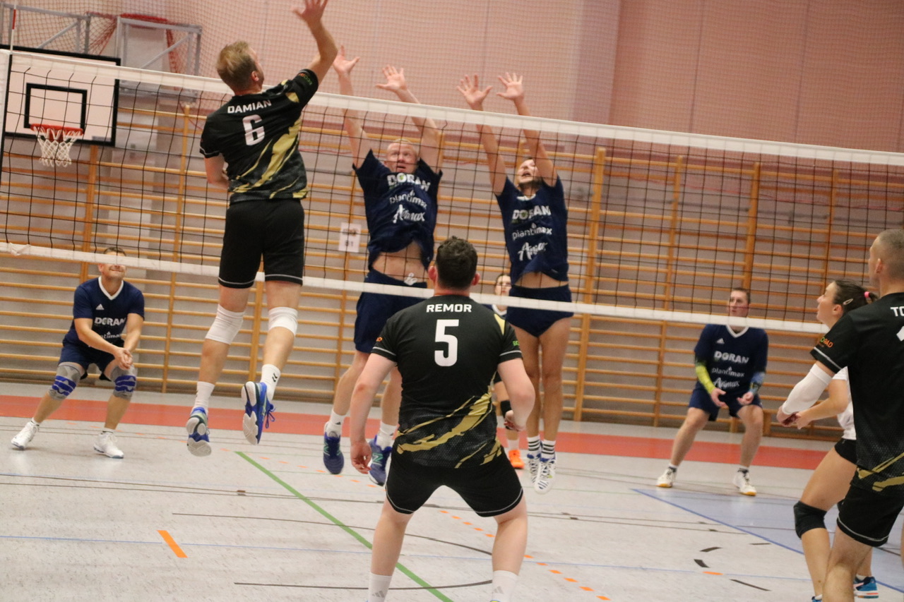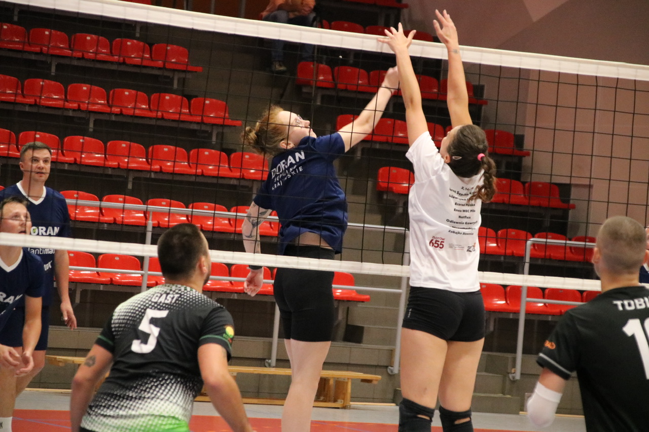 Na pierwszym boisku doszło do prawdziwego siatkarskiego thrillera. Ecord Polska po emocjonującym pięciosetowym starciu pokonała Doran Sępólno Krajeńskie 3:2 (20:25, 17:25, 25:23, 25:20, 15:13). Mimo przegranych dwóch pierwszych setów, Ecord pokazał charakter i do końca walczył o każdą piłkę, zachowując miano niepokonanej drużyny.