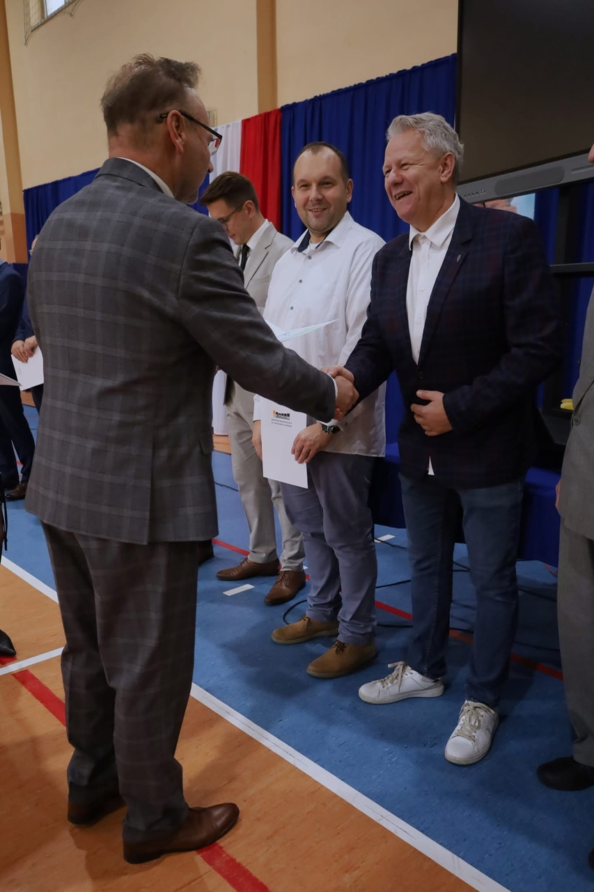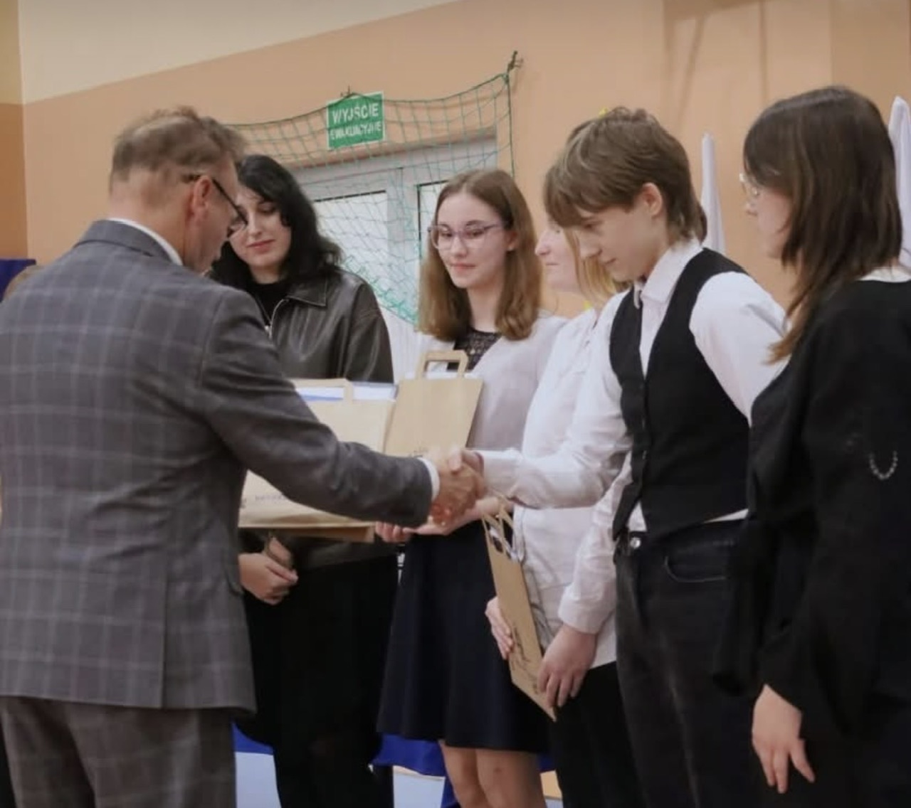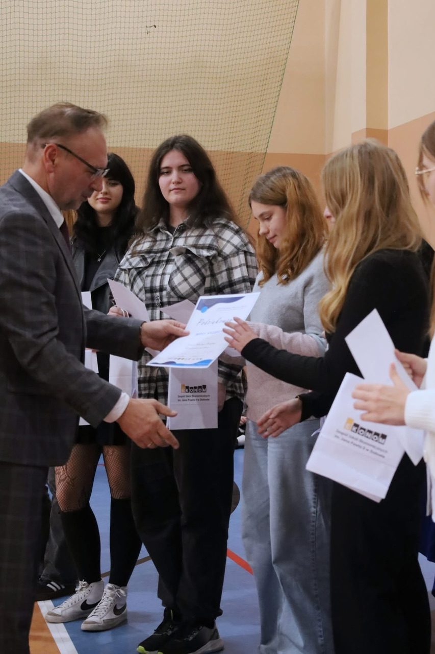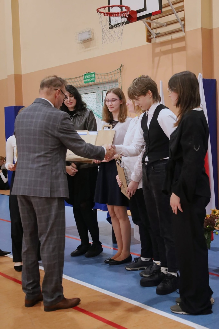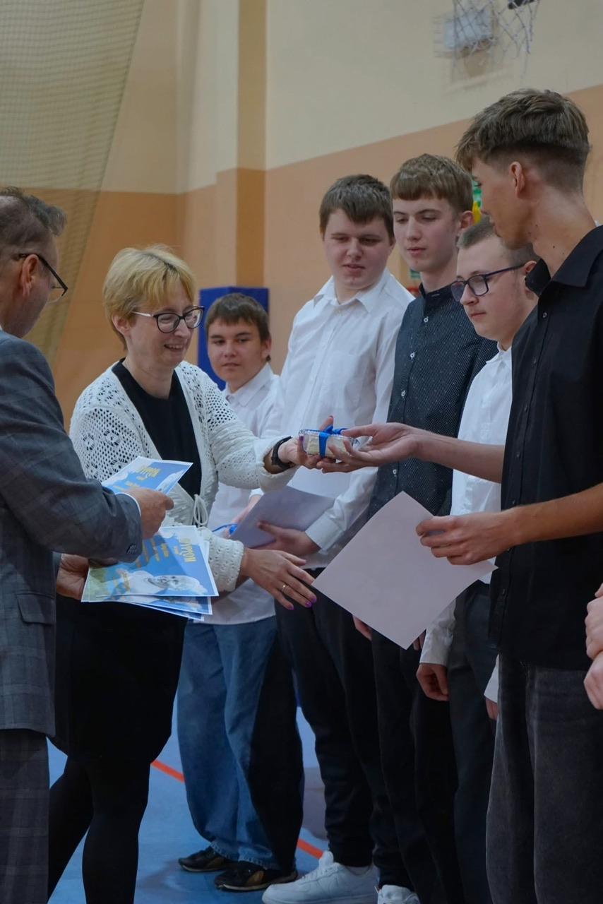 Podczas uroczystości Dyrektor szkoły wręczył nagrody nauczycielkom, nauczycielom oraz pracownikom administracji i obsługi, dziękując im za sumienną pracę, pasję i zaangażowanie w rozwój uczniów. Każde słowo uznania podkreślało, jak ogromną rolę odgrywa ich codzienny trud w budowaniu przyszłości młodych ludzi.