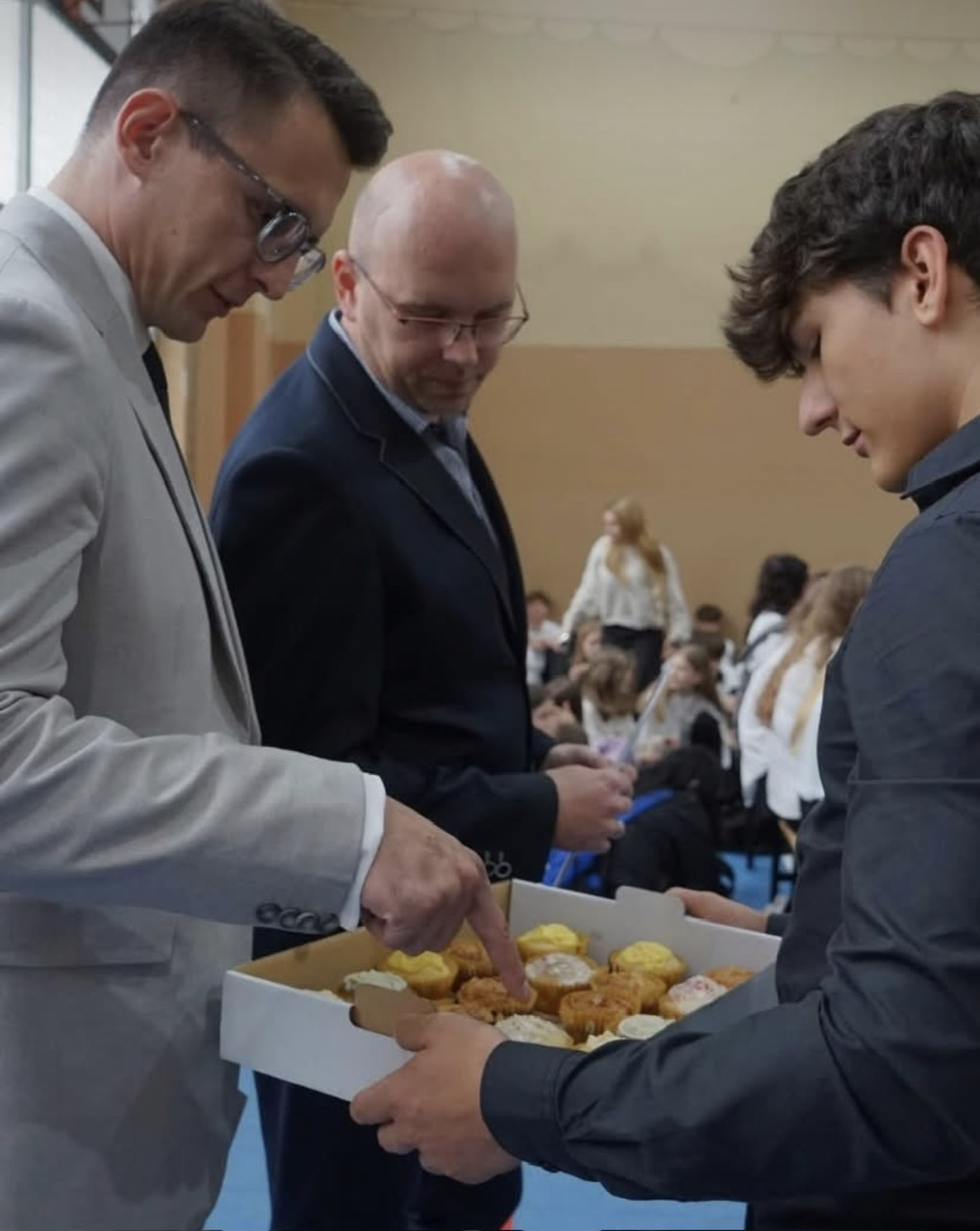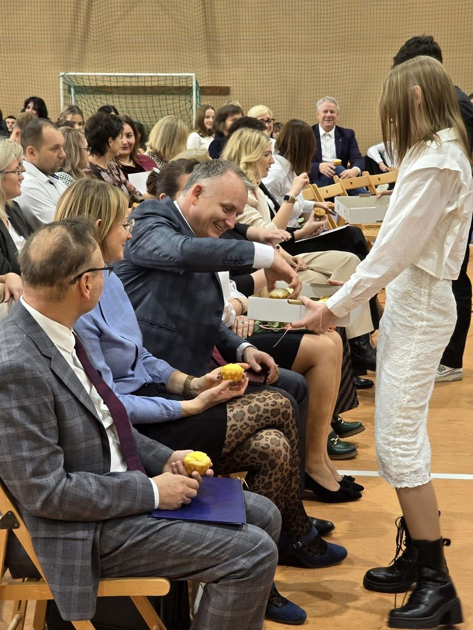Nie zabrakło również ciepłych gestów ze strony uczniów. Samorząd Uczniowski złożył wszystkim pedagogom serdeczne życzenia oraz przygotował słodki poczęstunek, który umilił wspólne świętowanie.