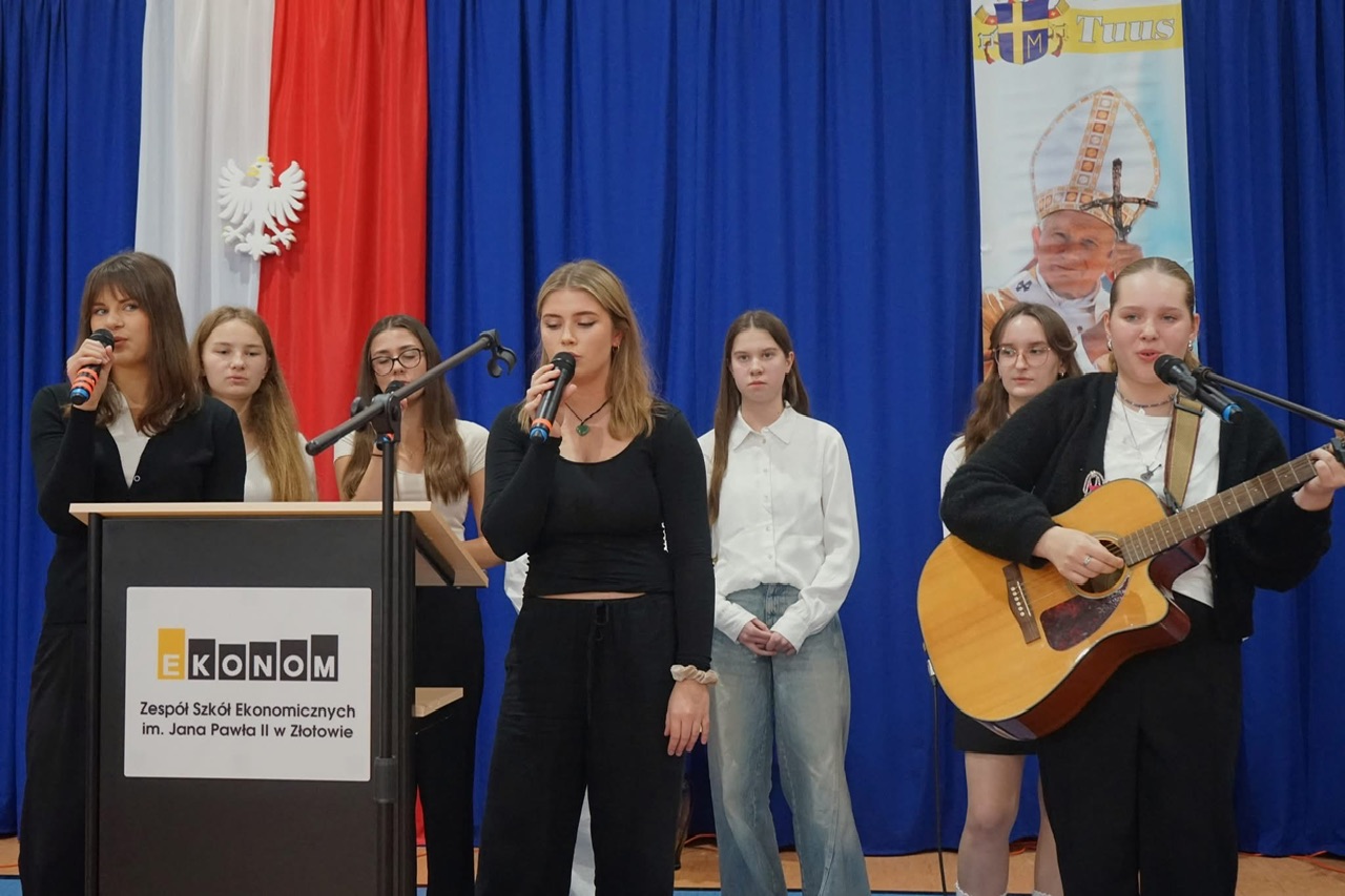 Uroczystość zwieńczyła część artystyczna, przygotowana przez uczniów, poświęcona patronowi szkoły. Wzruszające występy i recytacje przypomniały wartości, jakie głosił św. Jan Paweł II – miłość, szacunek, odpowiedzialność i dobro.