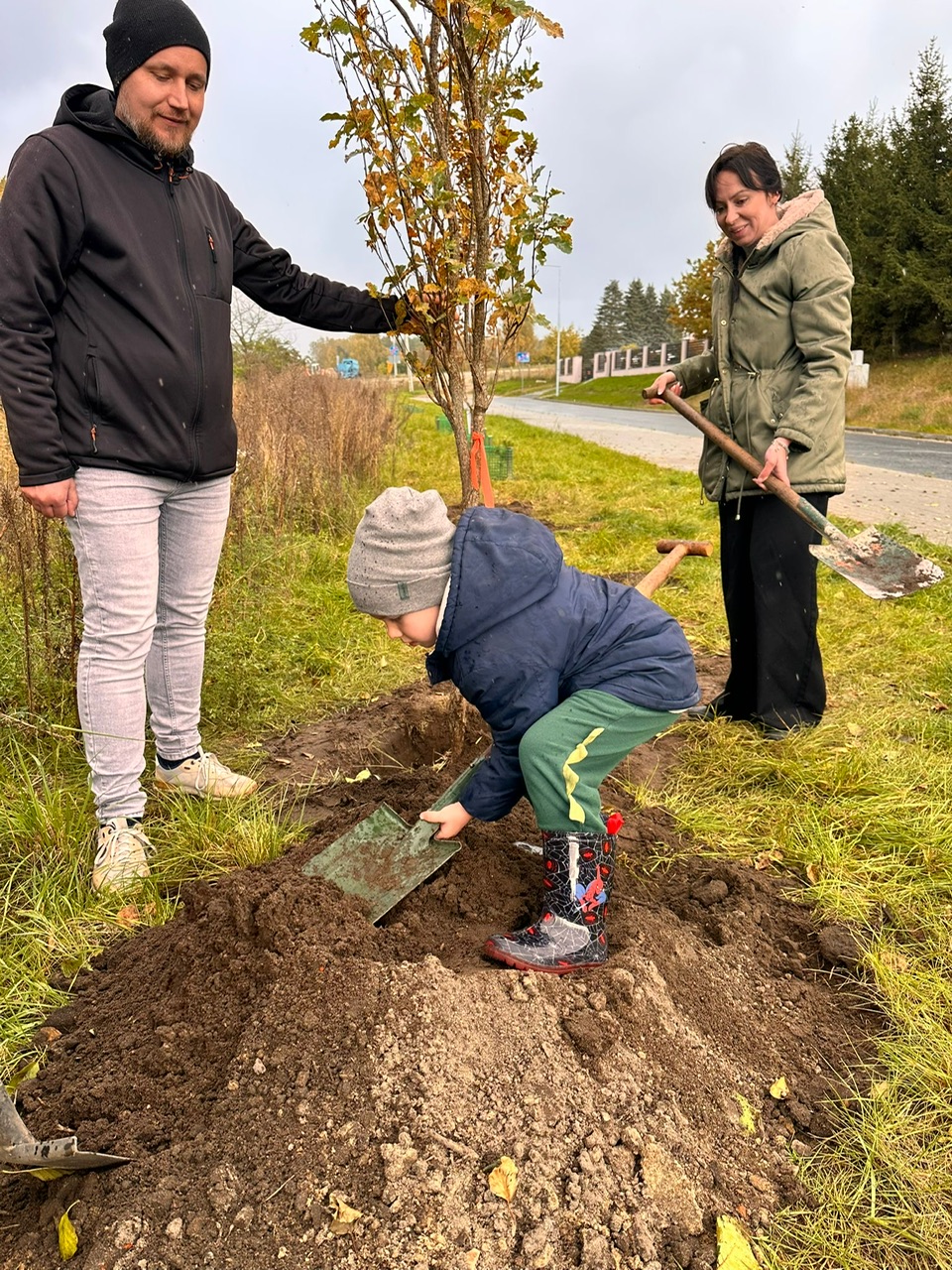 Organizatorzy zapewnili wszystko, co potrzebne – sadzonki drzew, narzędzia oraz ciepły poczęstunek. Każdy uczestnik mógł także zawiesić przy swoim drzewie specjalną tabliczkę z imieniem, pozostawiając symboliczny ślad swojej obecności.