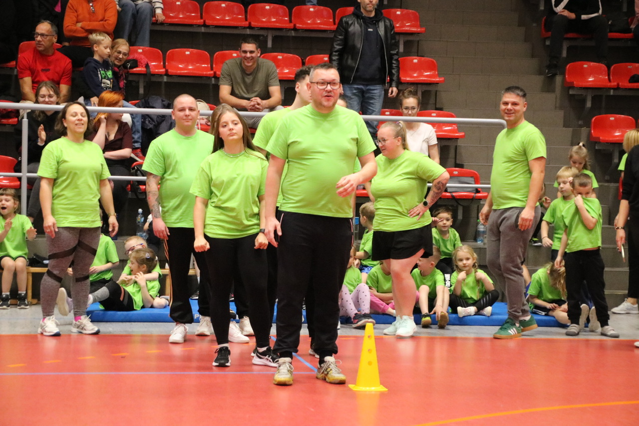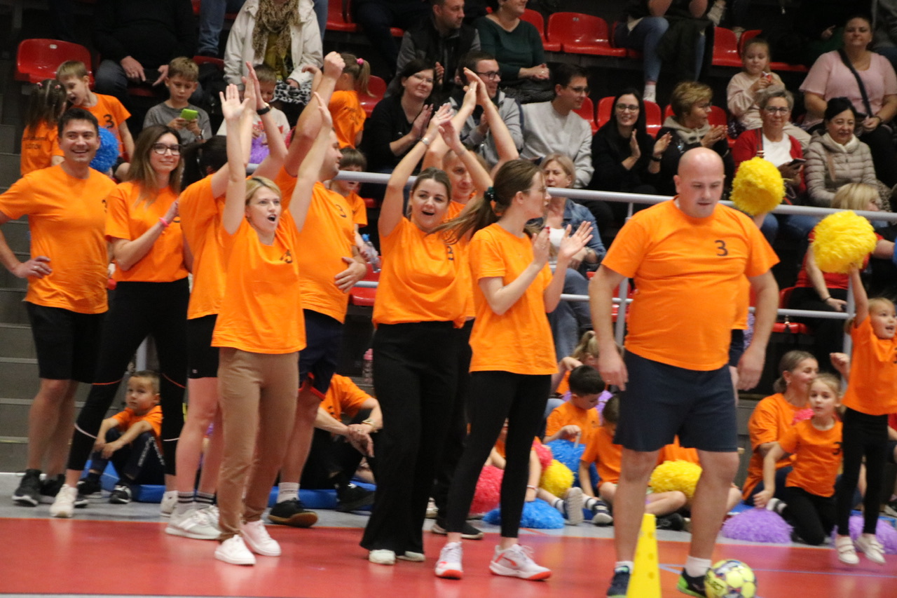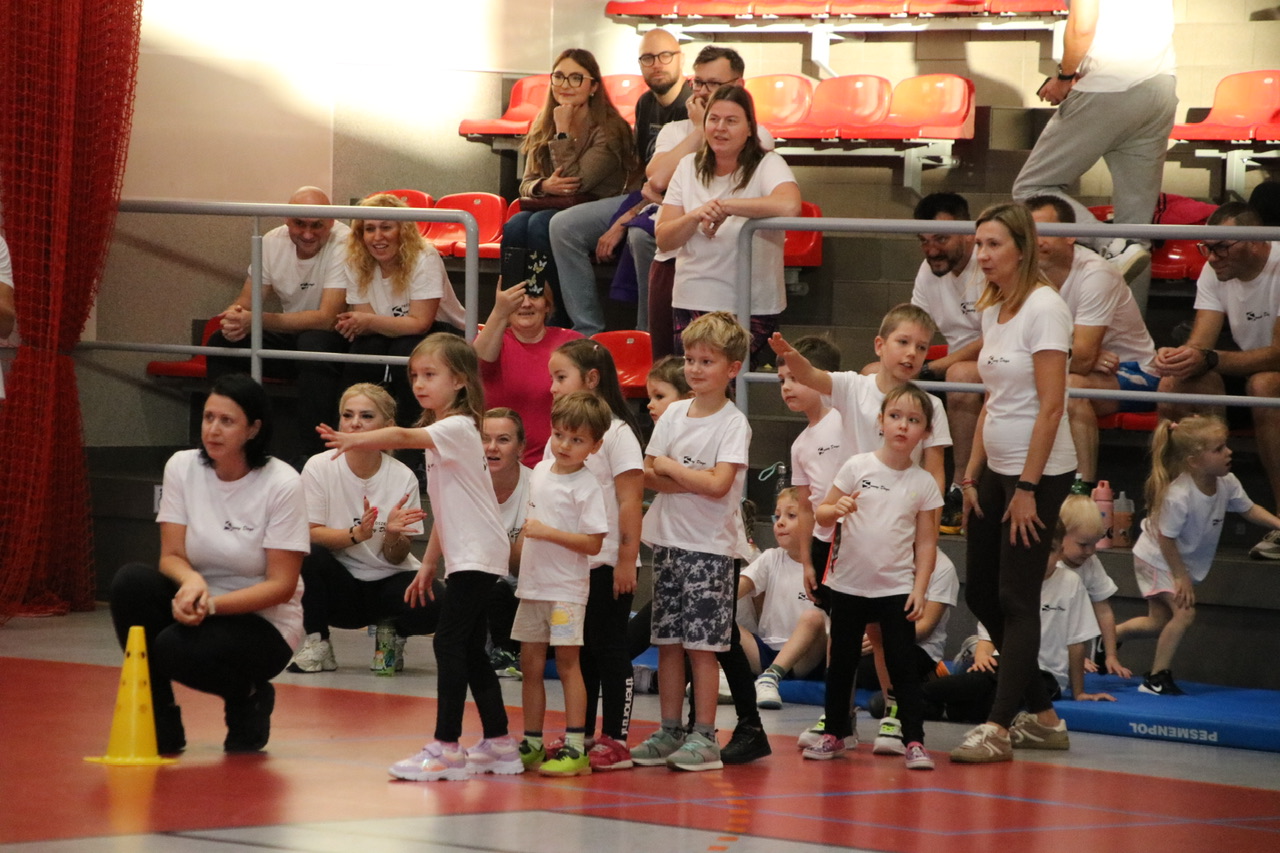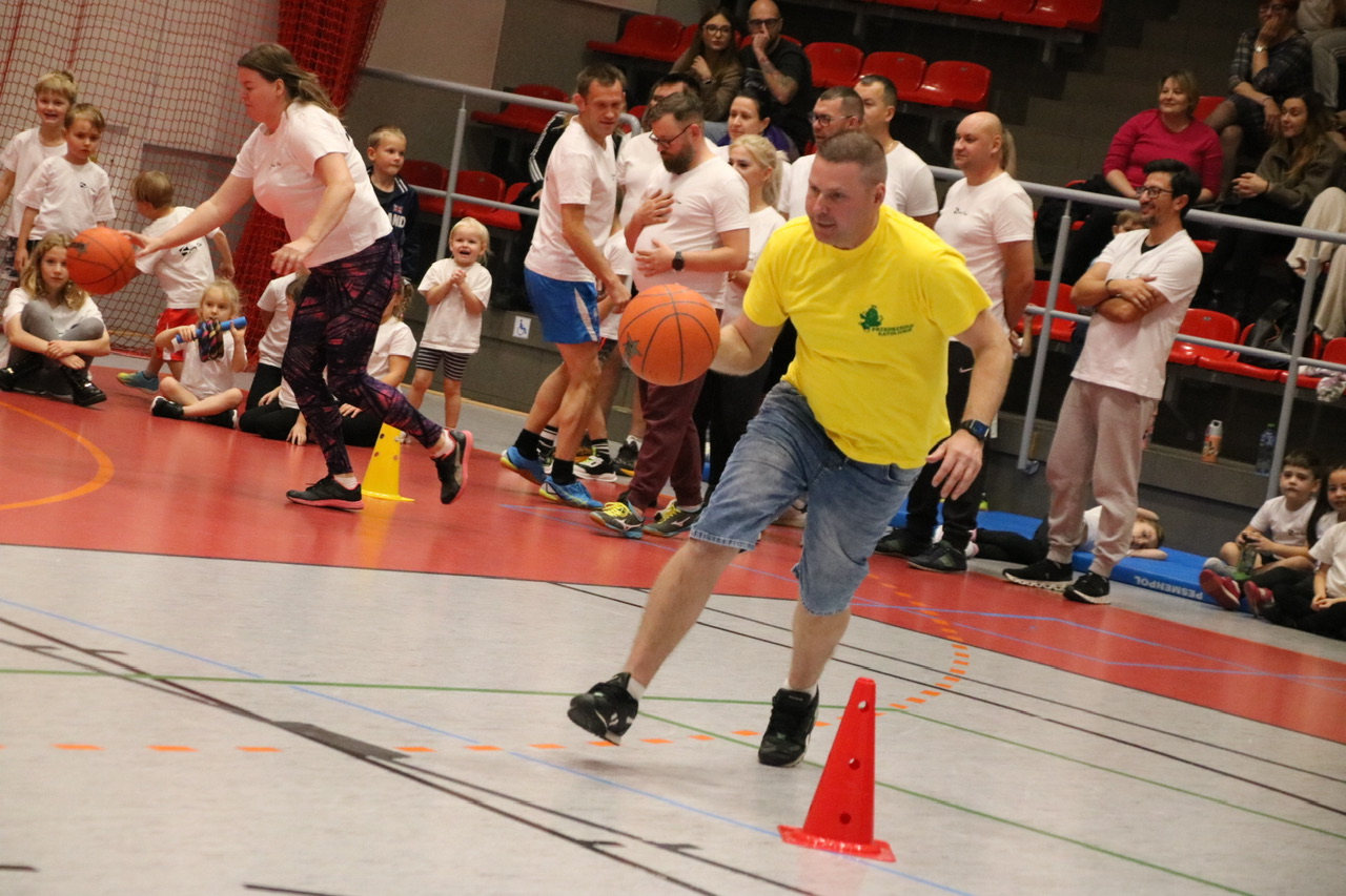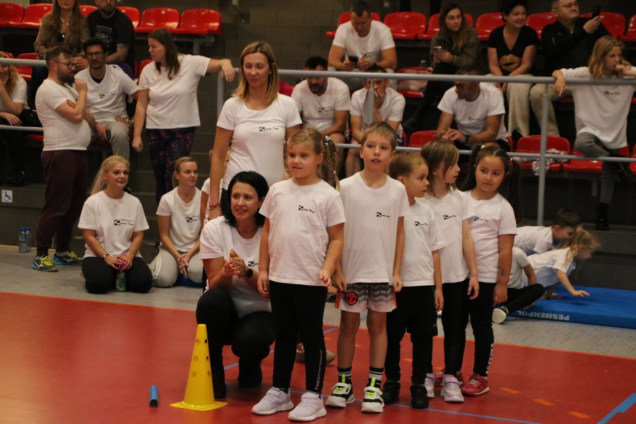 W drugiej części wydarzenia do sportowej zabawy dołączyli… rodzice! Ich konkurencje wywołały salwy śmiechu i gromkie brawa publiczności. Zaangażowanie dorosłych, doping dzieci i rodzinna atmosfera sprawiły, że trybuny tętniły pozytywną energią, a hala rozbrzmiewała aplauzem i wspólną radością.