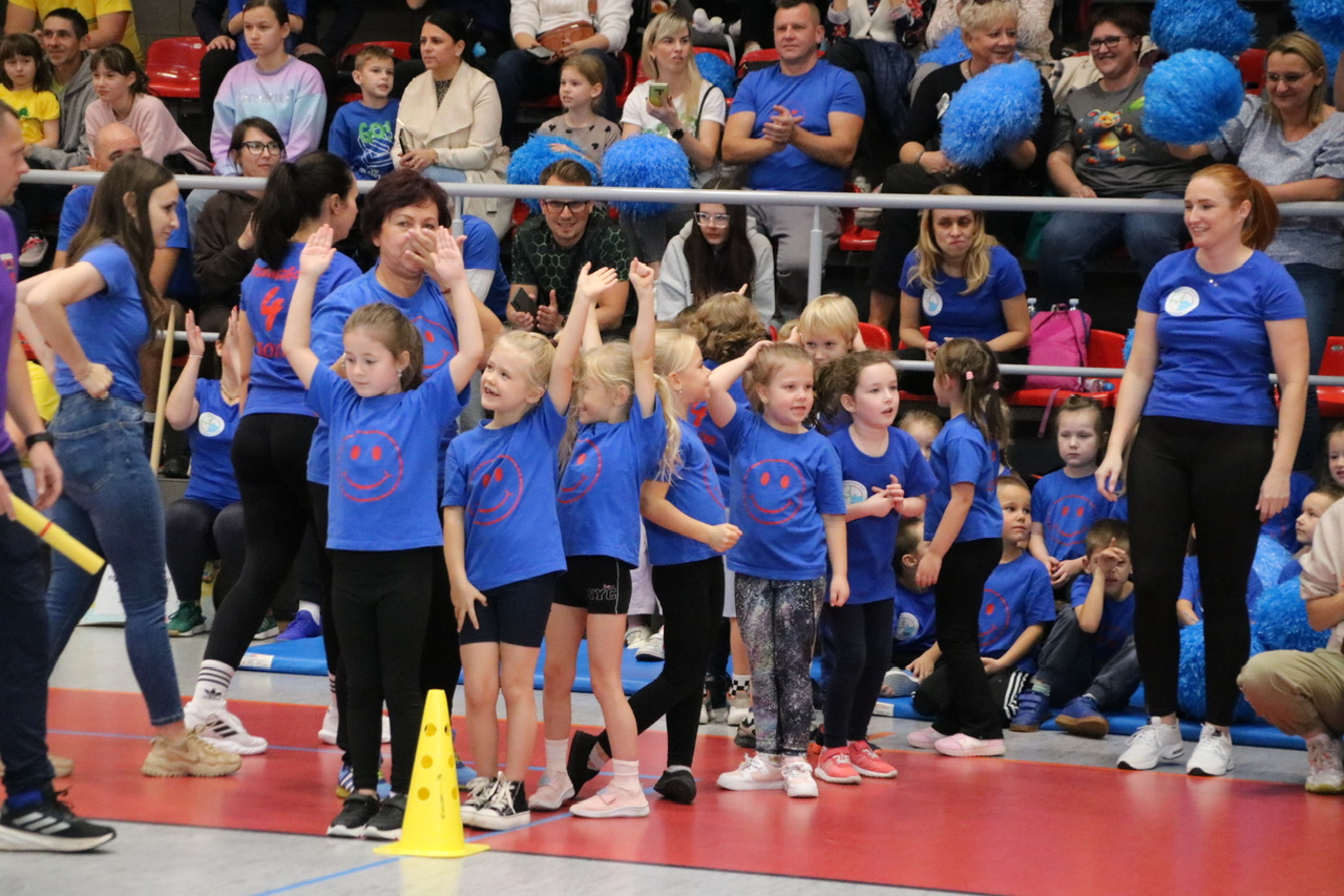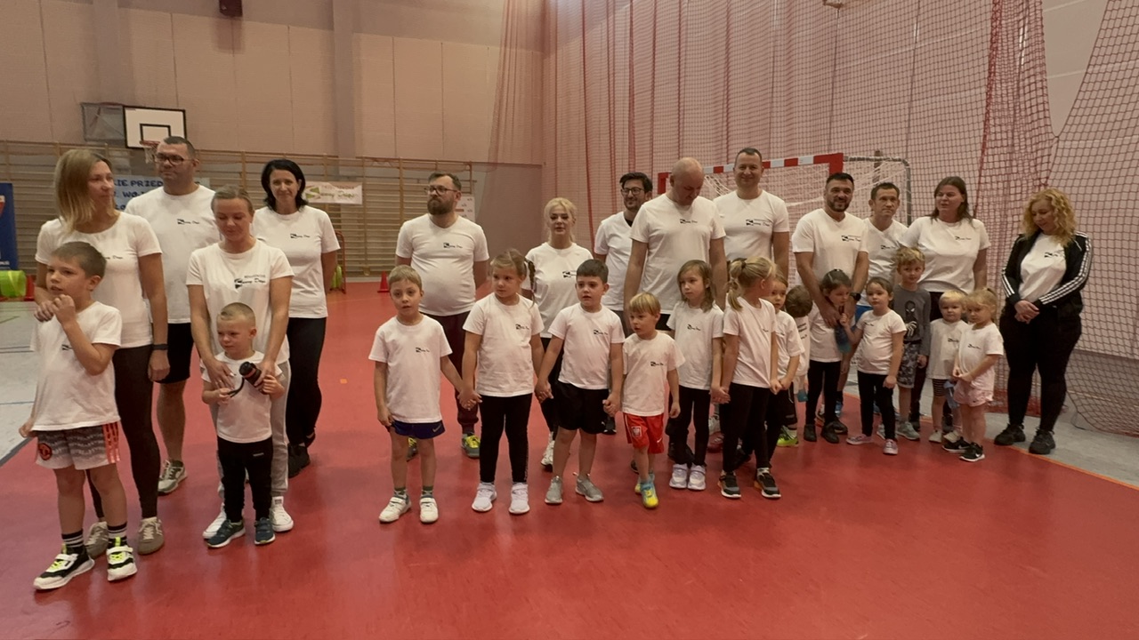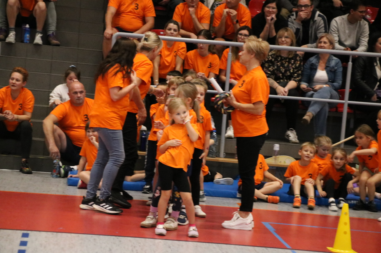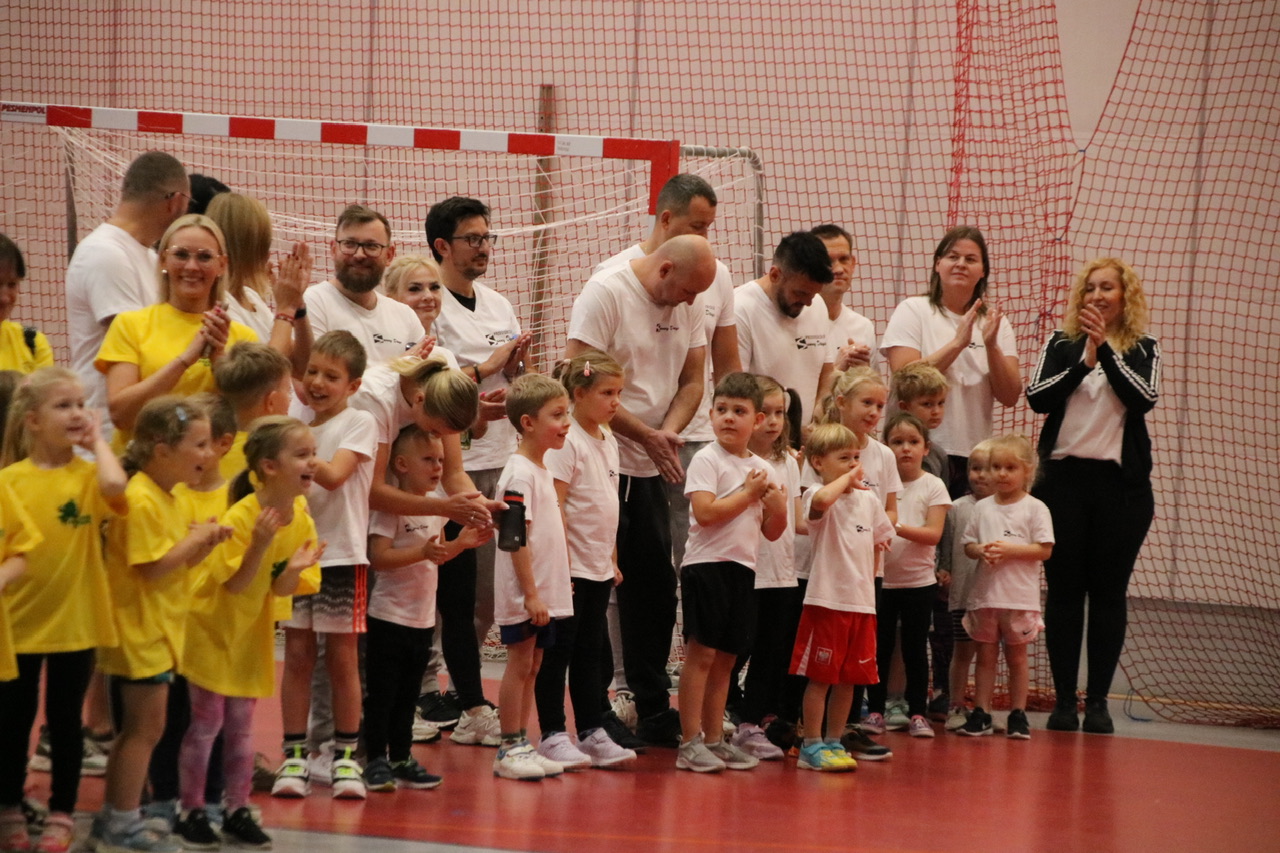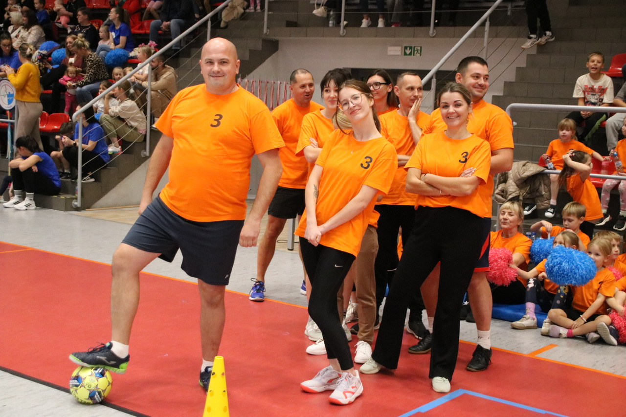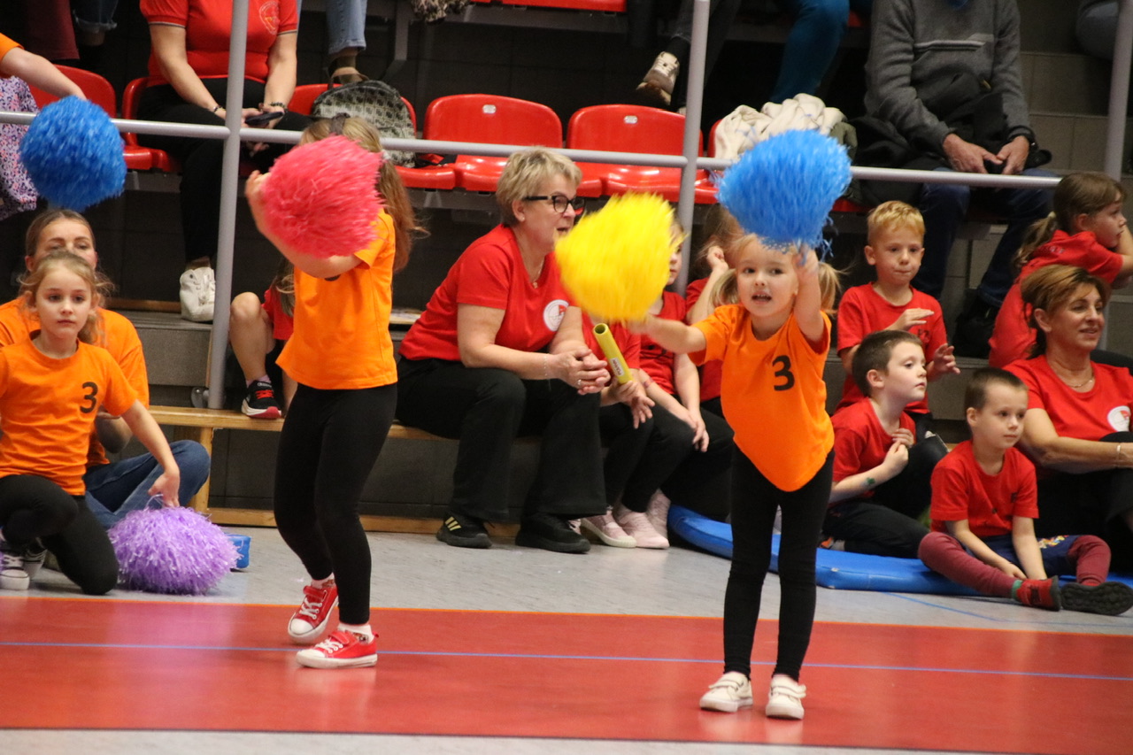 W drugiej części wydarzenia do sportowej zabawy dołączyli… rodzice! Ich konkurencje wywołały salwy śmiechu i gromkie brawa publiczności. Zaangażowanie dorosłych, doping dzieci i rodzinna atmosfera sprawiły, że trybuny tętniły pozytywną energią, a hala rozbrzmiewała aplauzem i wspólną radością.