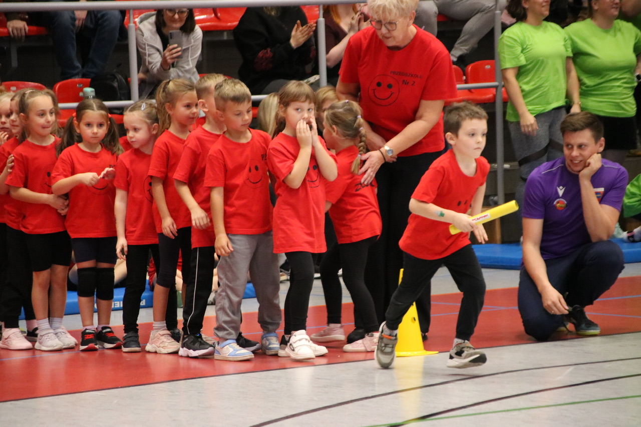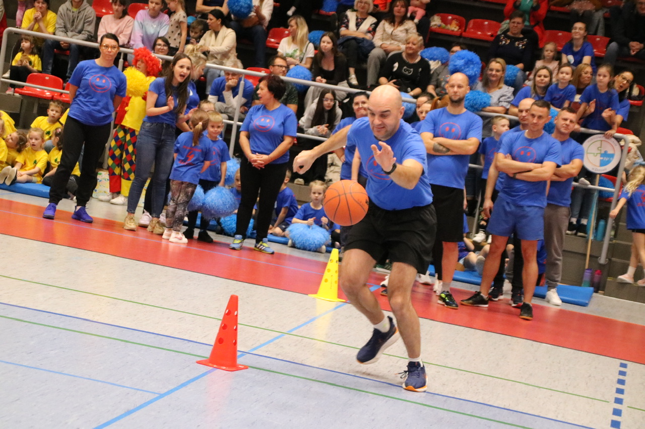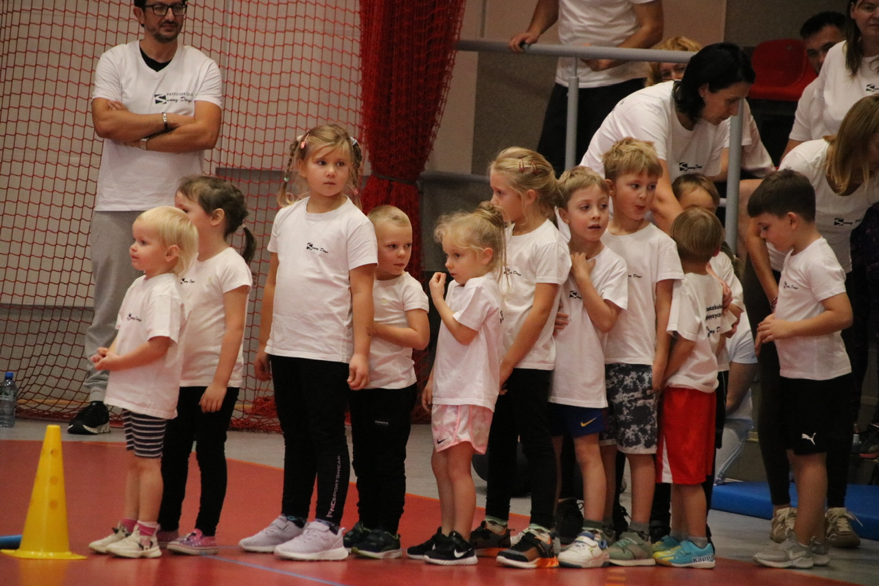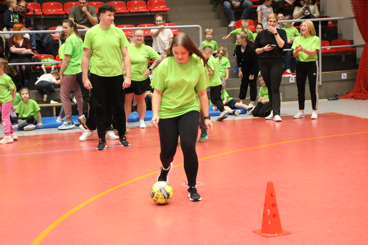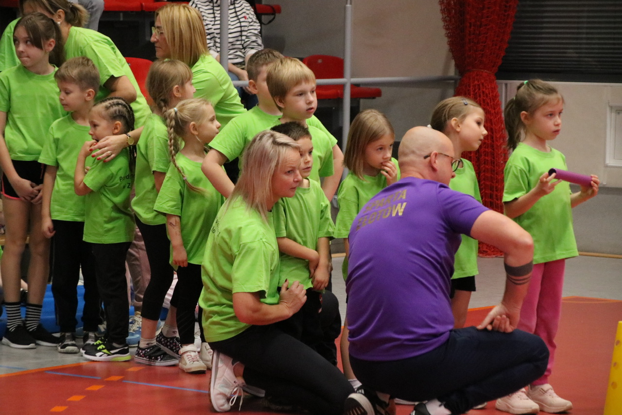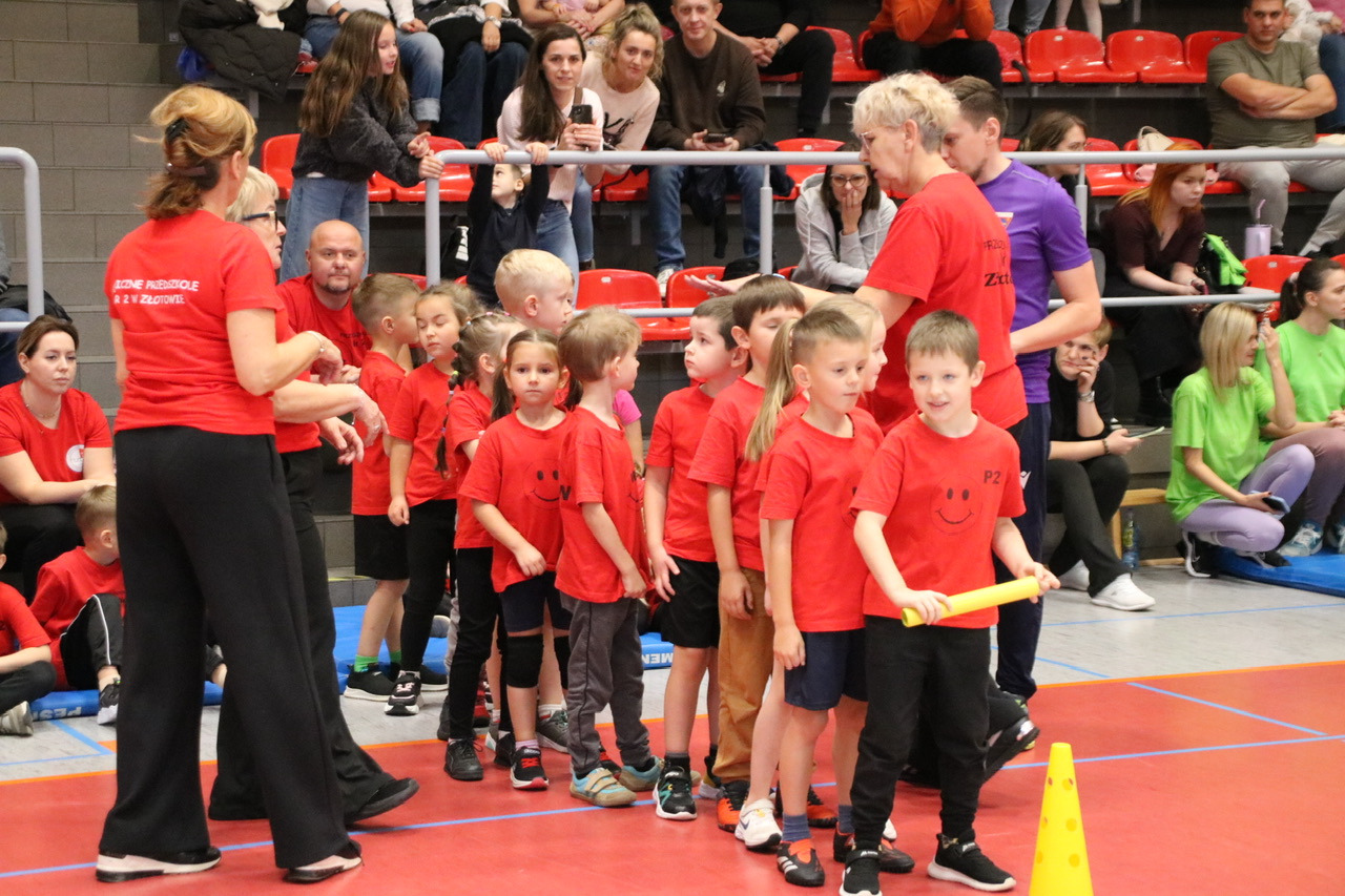 W drugiej części wydarzenia do sportowej zabawy dołączyli… rodzice! Ich konkurencje wywołały salwy śmiechu i gromkie brawa publiczności. Zaangażowanie dorosłych, doping dzieci i rodzinna atmosfera sprawiły, że trybuny tętniły pozytywną energią, a hala rozbrzmiewała aplauzem i wspólną radością.
