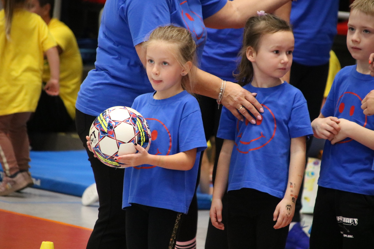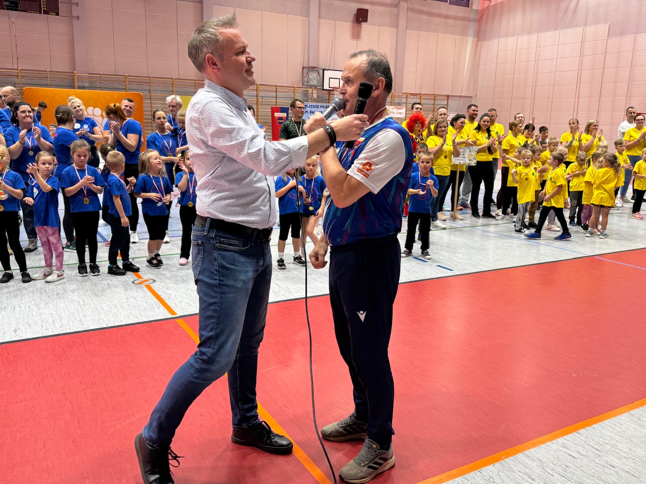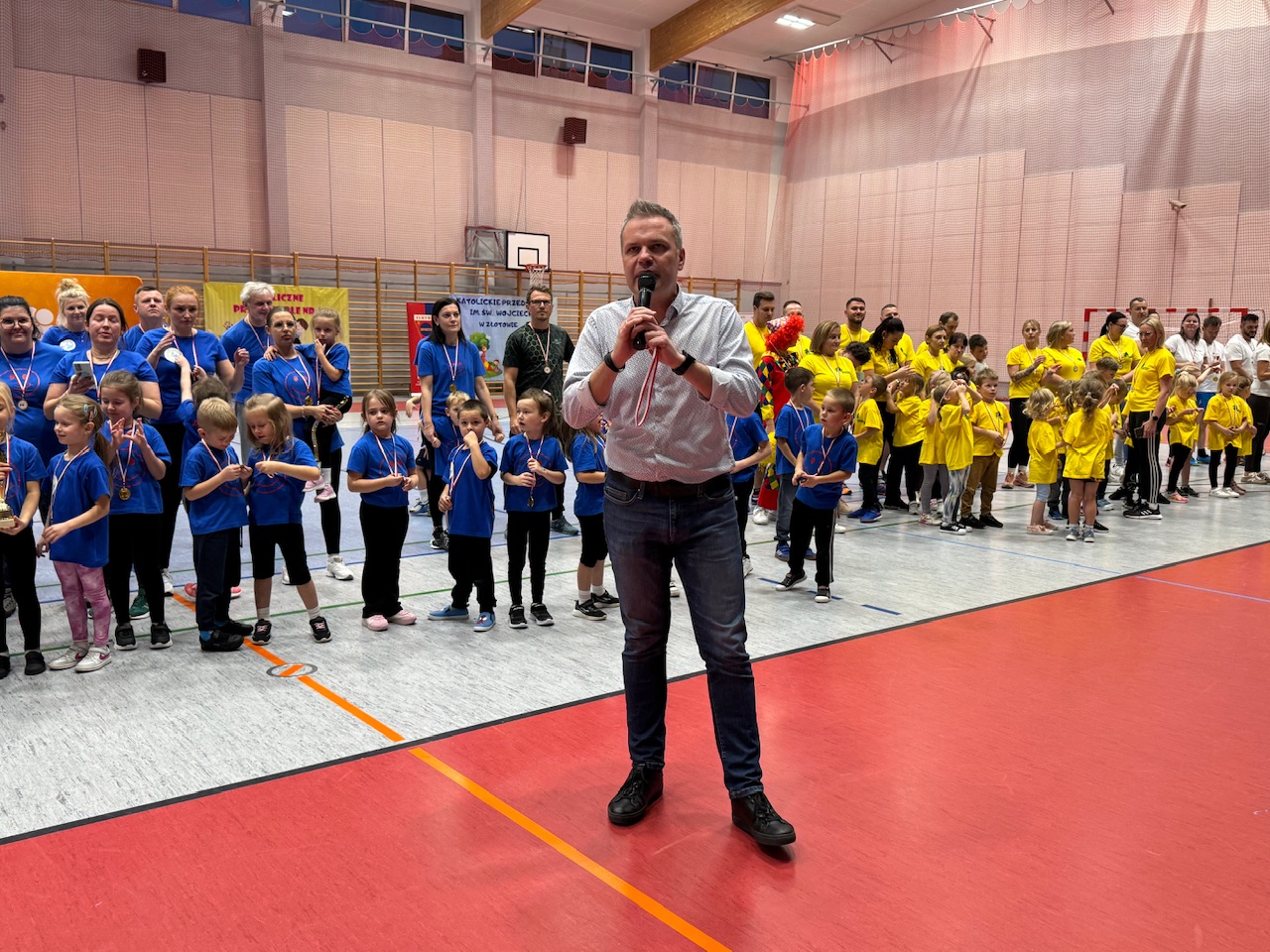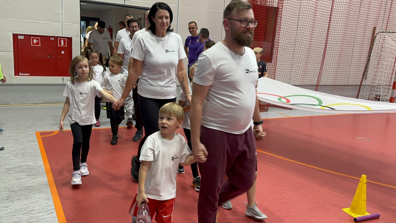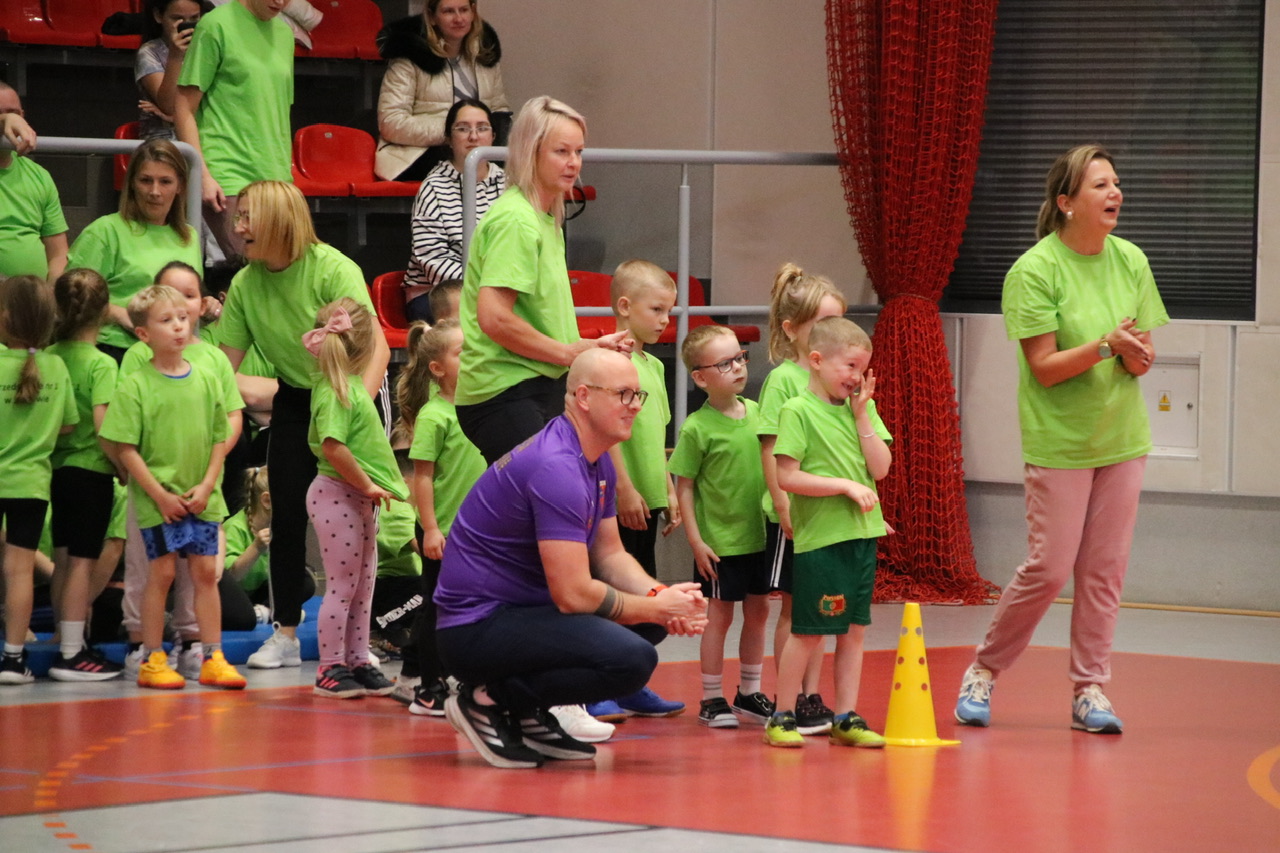 W drugiej części wydarzenia do sportowej zabawy dołączyli… rodzice! Ich konkurencje wywołały salwy śmiechu i gromkie brawa publiczności. Zaangażowanie dorosłych, doping dzieci i rodzinna atmosfera sprawiły, że trybuny tętniły pozytywną energią, a hala rozbrzmiewała aplauzem i wspólną radością.