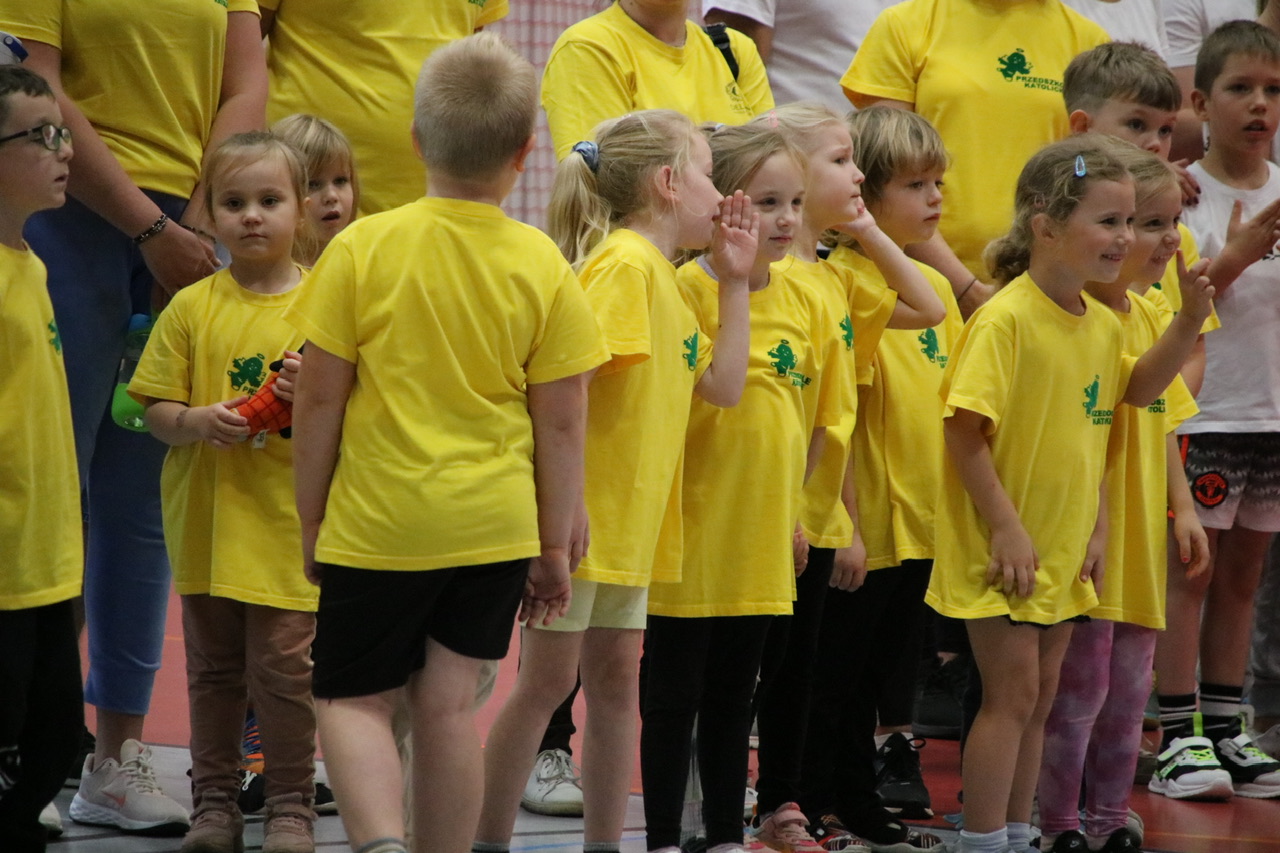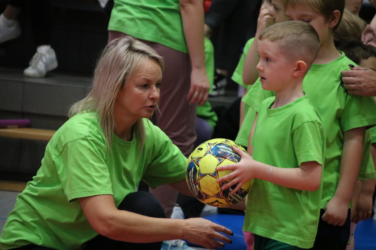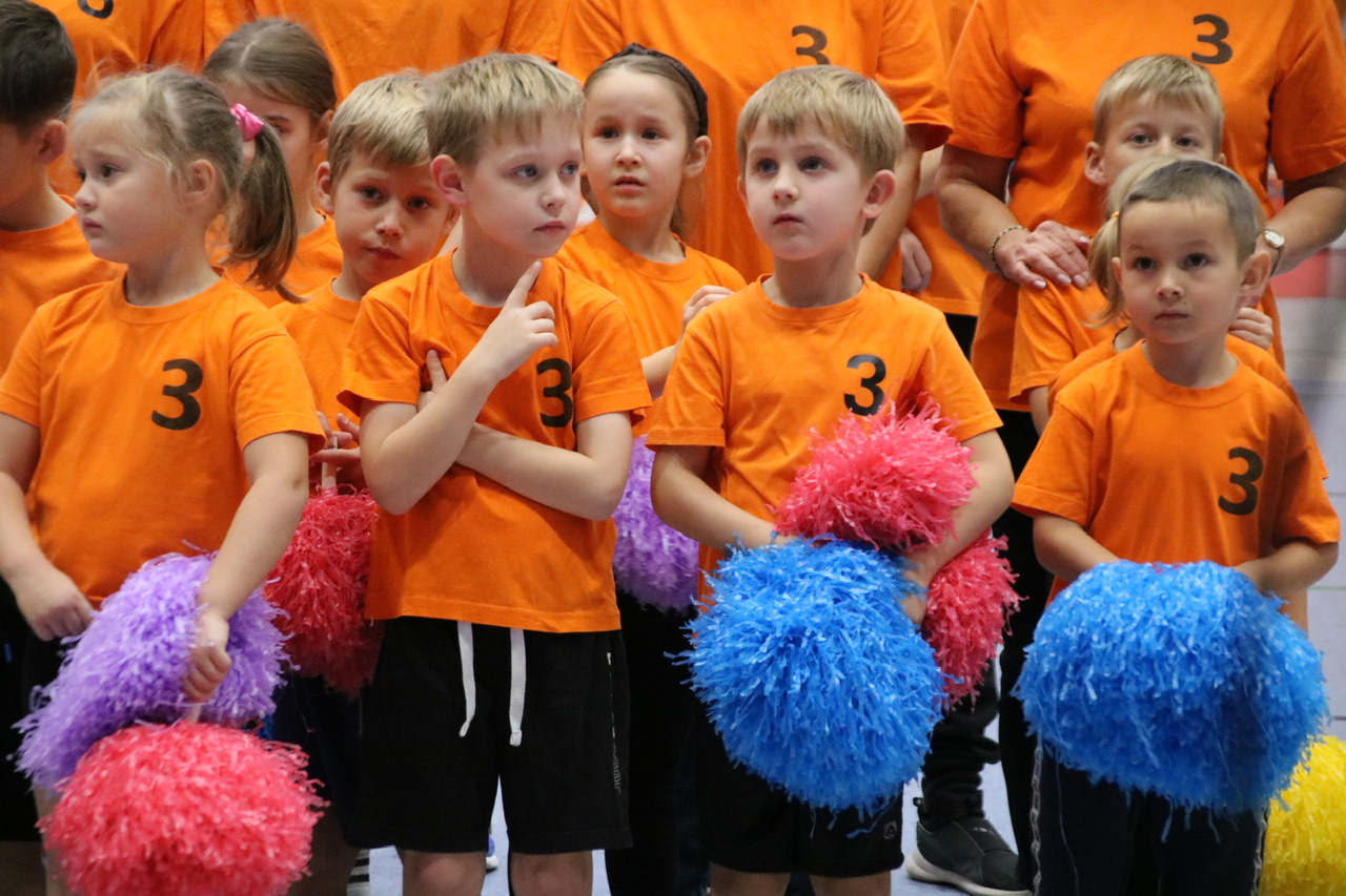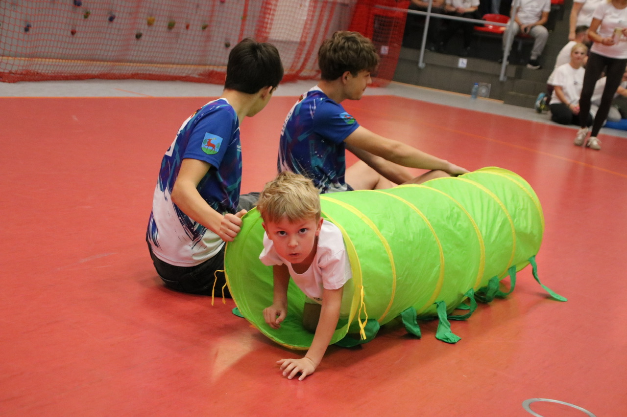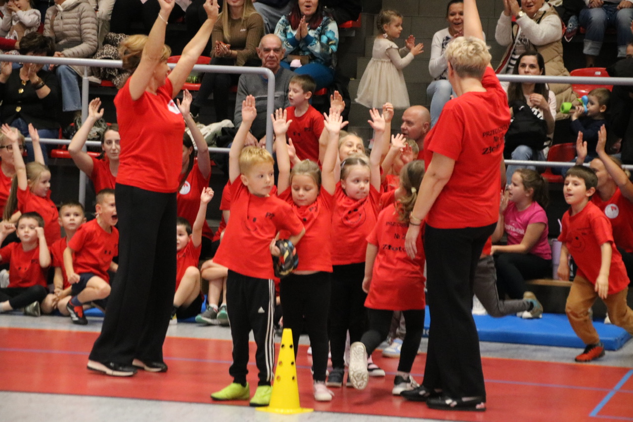 W drugiej części wydarzenia do sportowej zabawy dołączyli… rodzice! Ich konkurencje wywołały salwy śmiechu i gromkie brawa publiczności. Zaangażowanie dorosłych, doping dzieci i rodzinna atmosfera sprawiły, że trybuny tętniły pozytywną energią, a hala rozbrzmiewała aplauzem i wspólną radością.