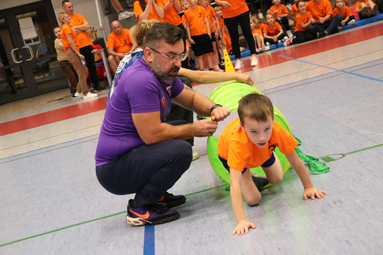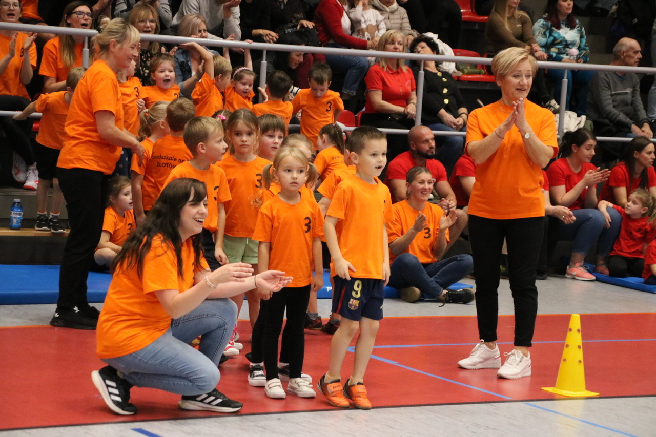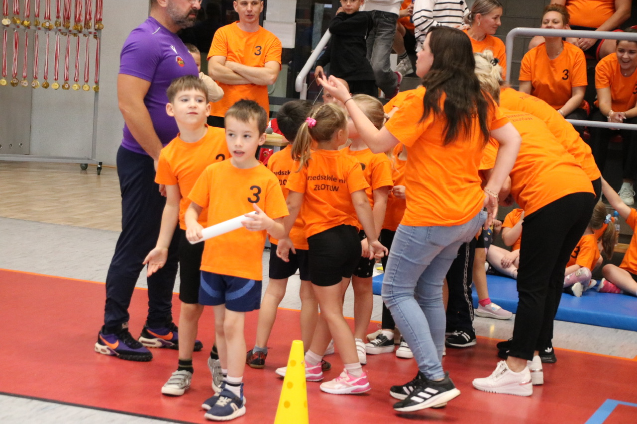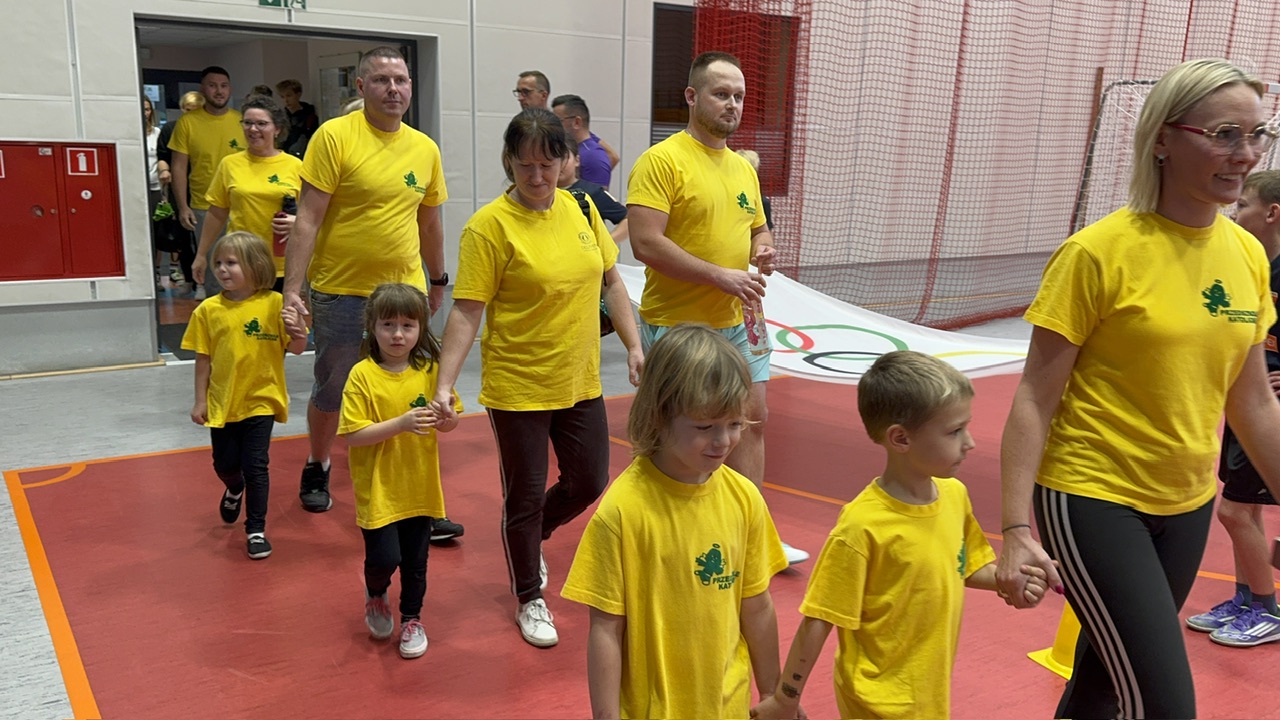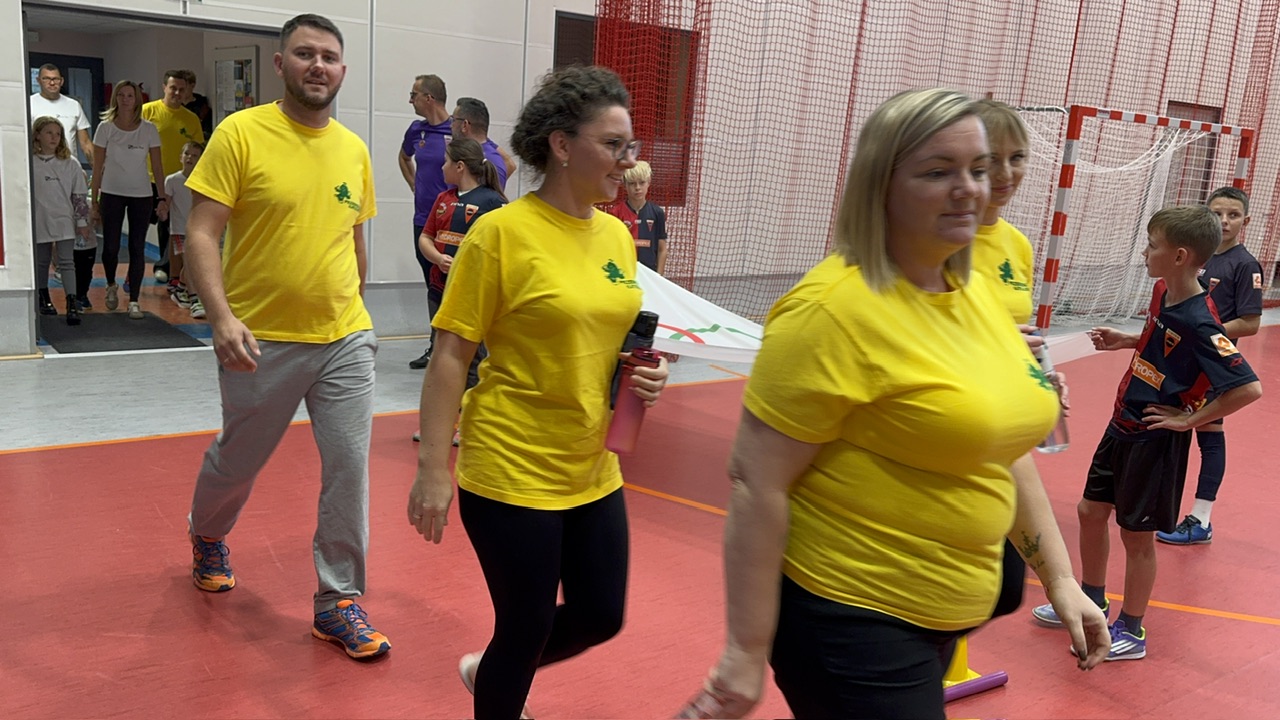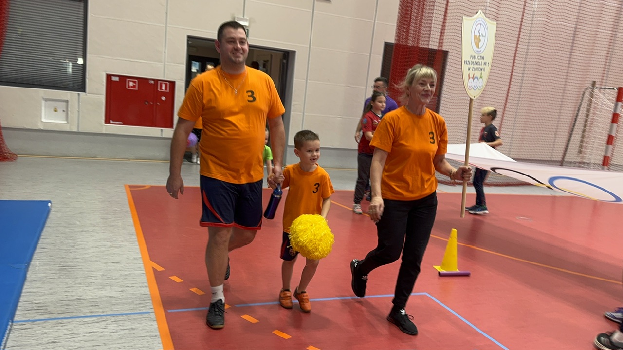 W drugiej części wydarzenia do sportowej zabawy dołączyli… rodzice! Ich konkurencje wywołały salwy śmiechu i gromkie brawa publiczności. Zaangażowanie dorosłych, doping dzieci i rodzinna atmosfera sprawiły, że trybuny tętniły pozytywną energią, a hala rozbrzmiewała aplauzem i wspólną radością.