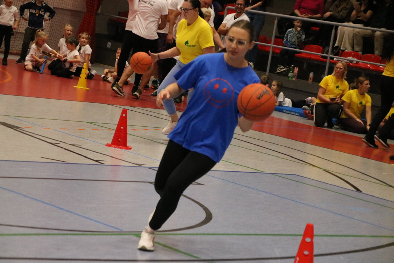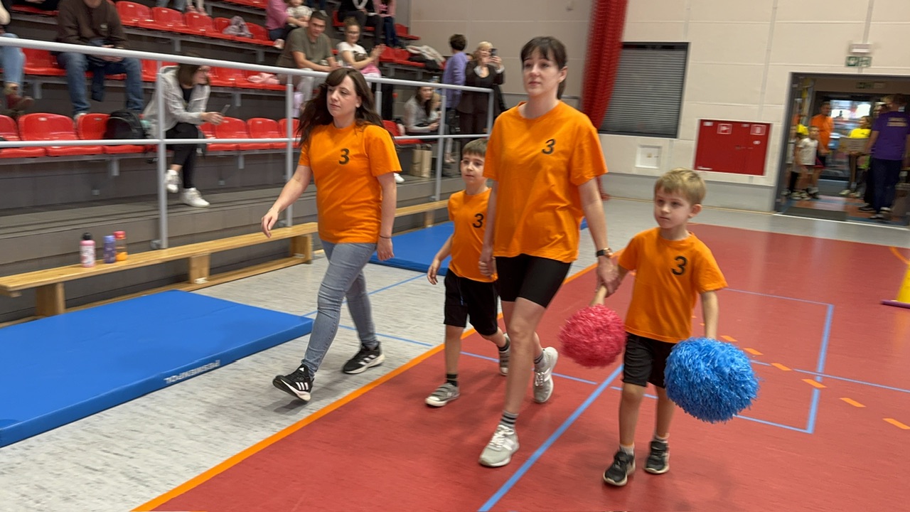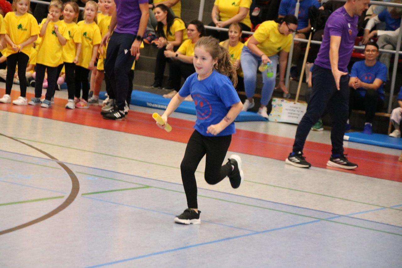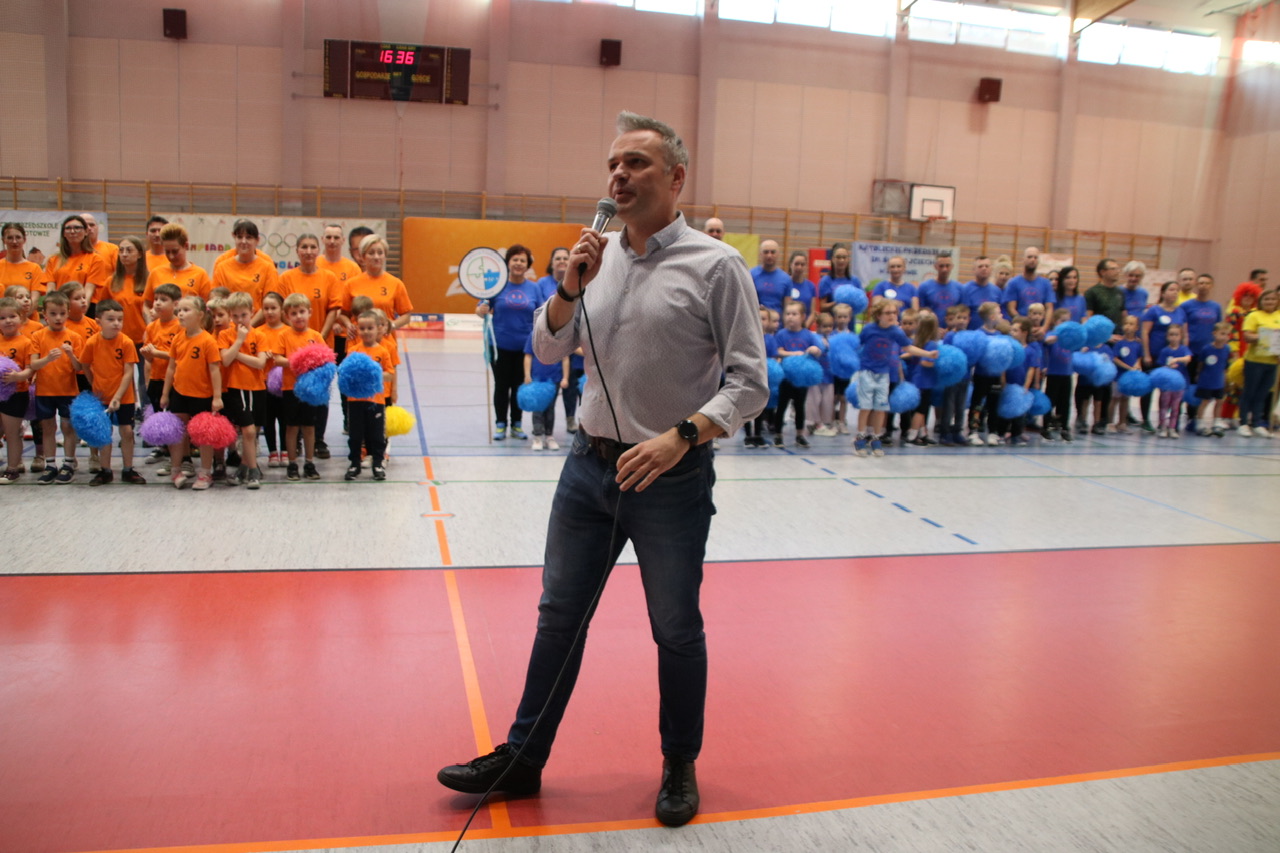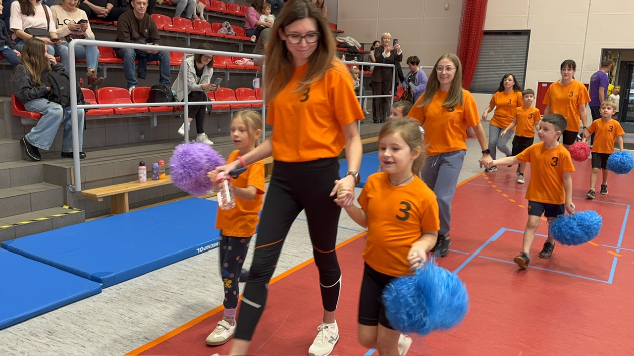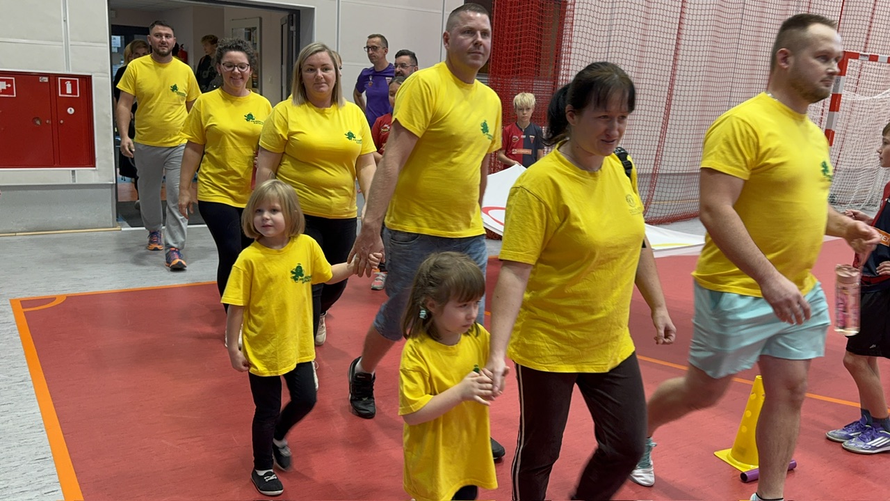 W drugiej części wydarzenia do sportowej zabawy dołączyli… rodzice! Ich konkurencje wywołały salwy śmiechu i gromkie brawa publiczności. Zaangażowanie dorosłych, doping dzieci i rodzinna atmosfera sprawiły, że trybuny tętniły pozytywną energią, a hala rozbrzmiewała aplauzem i wspólną radością.