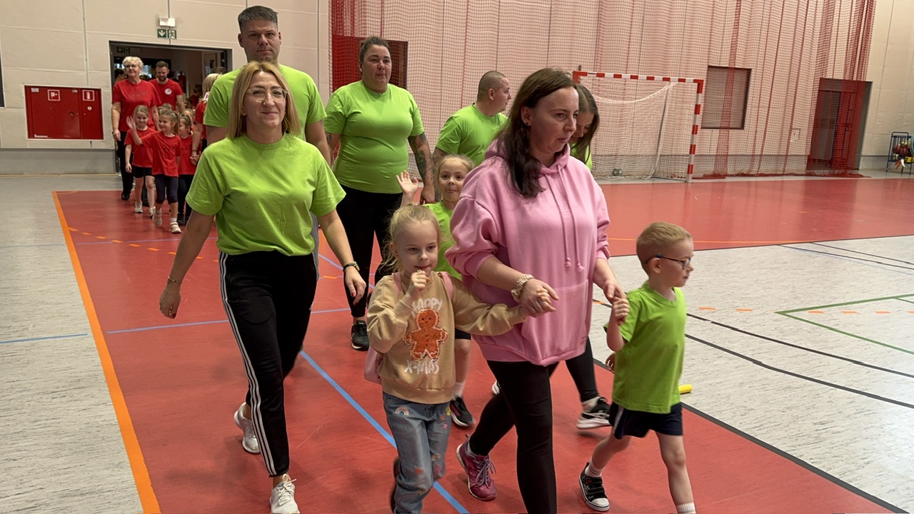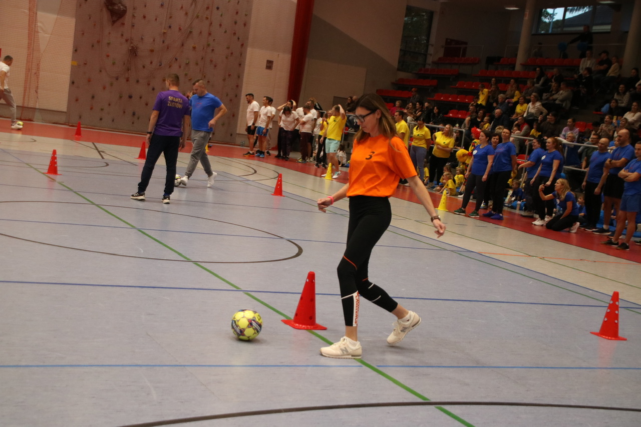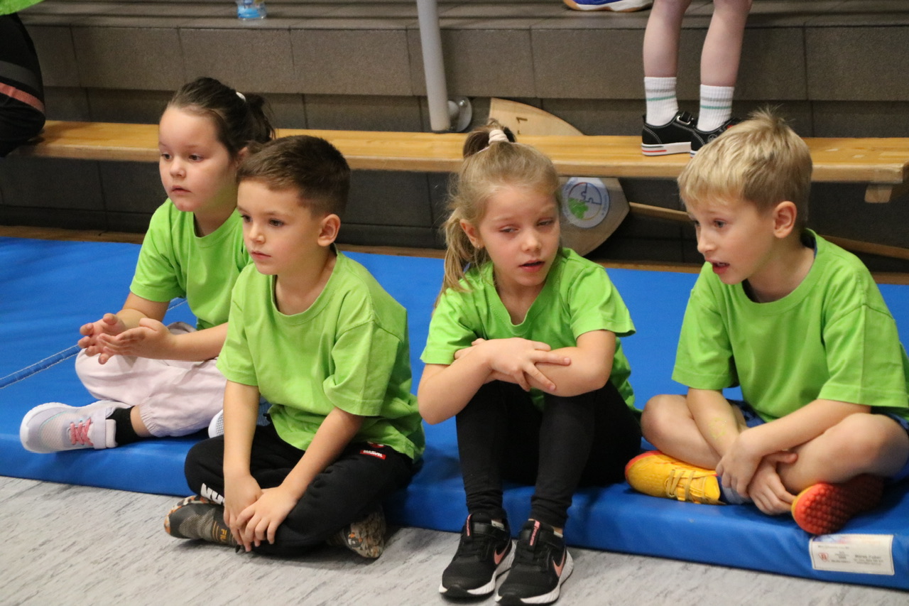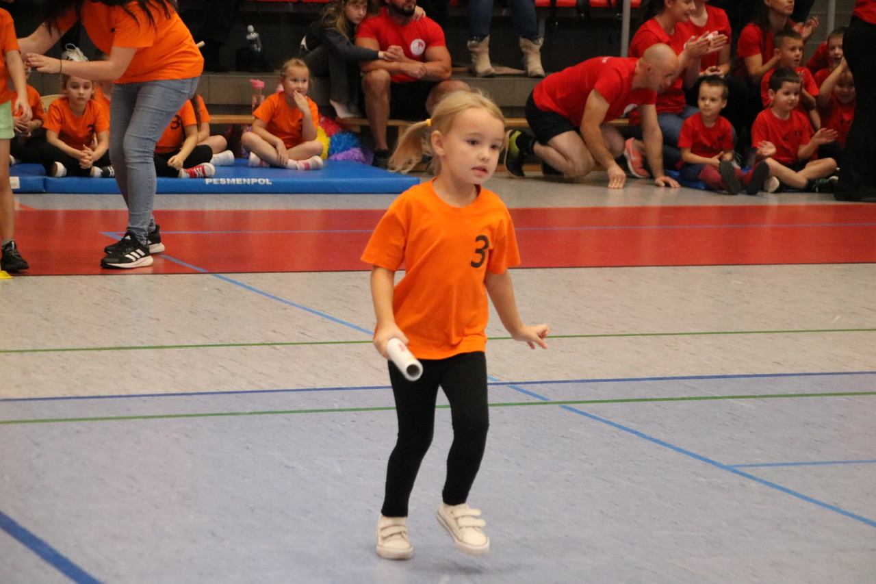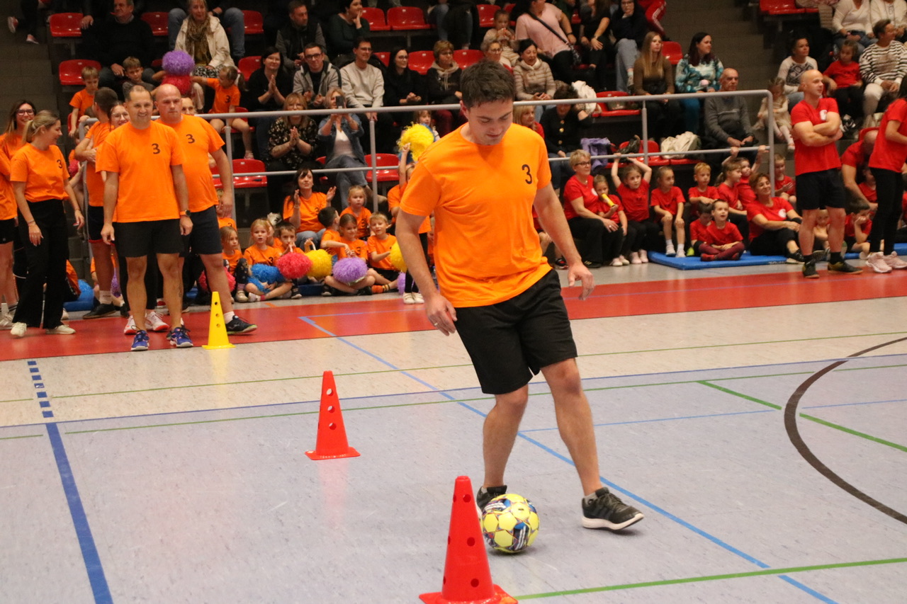 W drugiej części wydarzenia do sportowej zabawy dołączyli… rodzice! Ich konkurencje wywołały salwy śmiechu i gromkie brawa publiczności. Zaangażowanie dorosłych, doping dzieci i rodzinna atmosfera sprawiły, że trybuny tętniły pozytywną energią, a hala rozbrzmiewała aplauzem i wspólną radością.