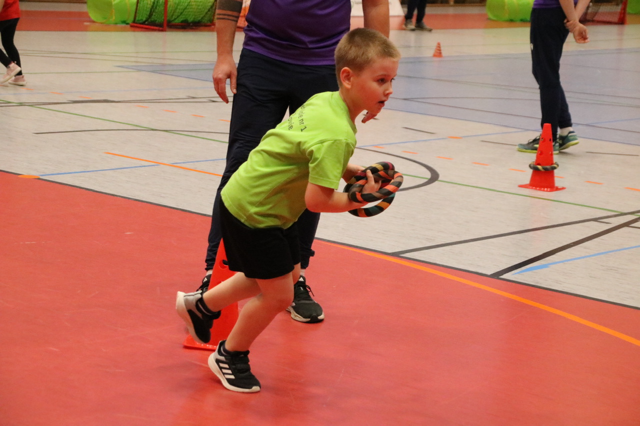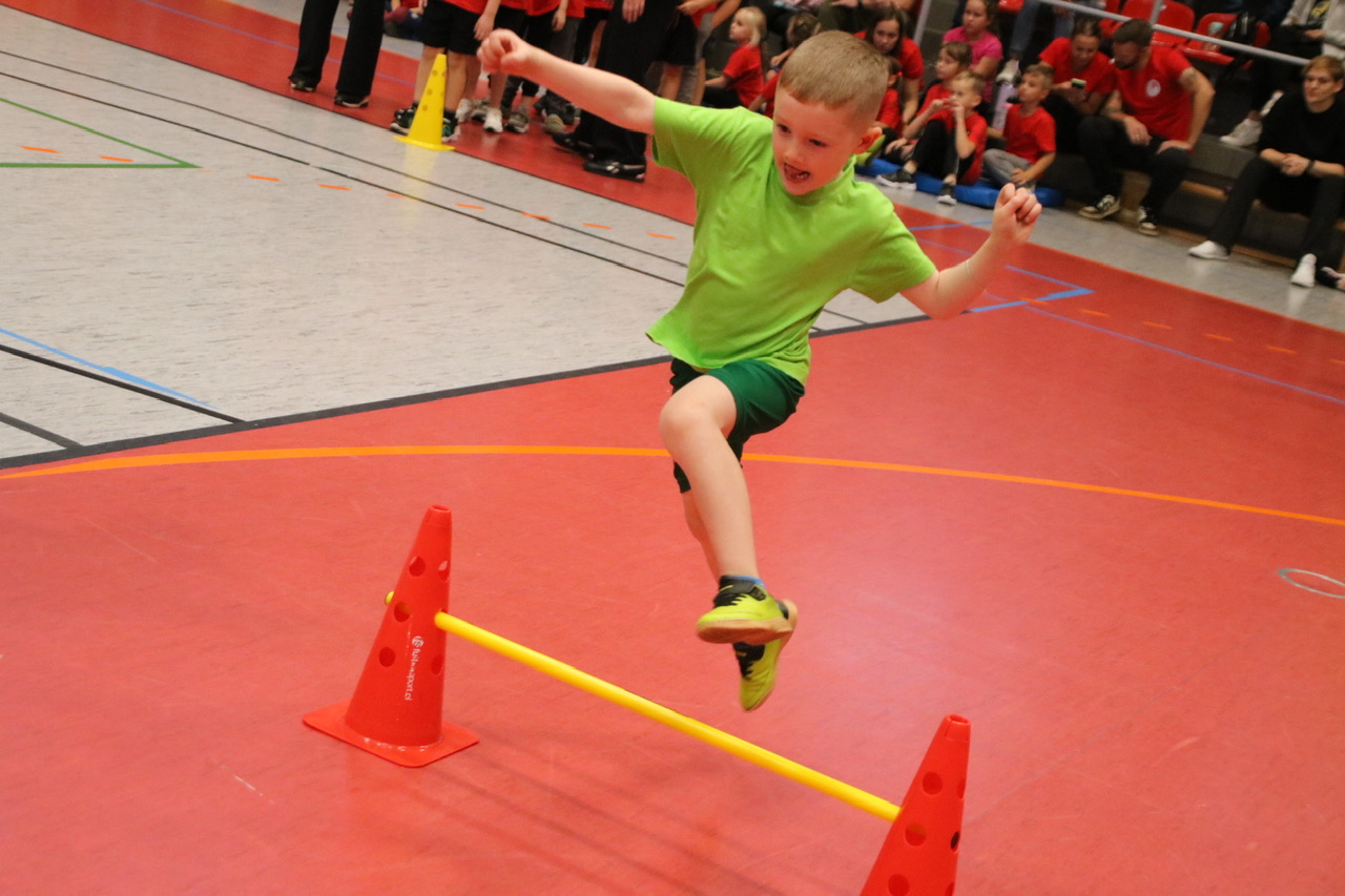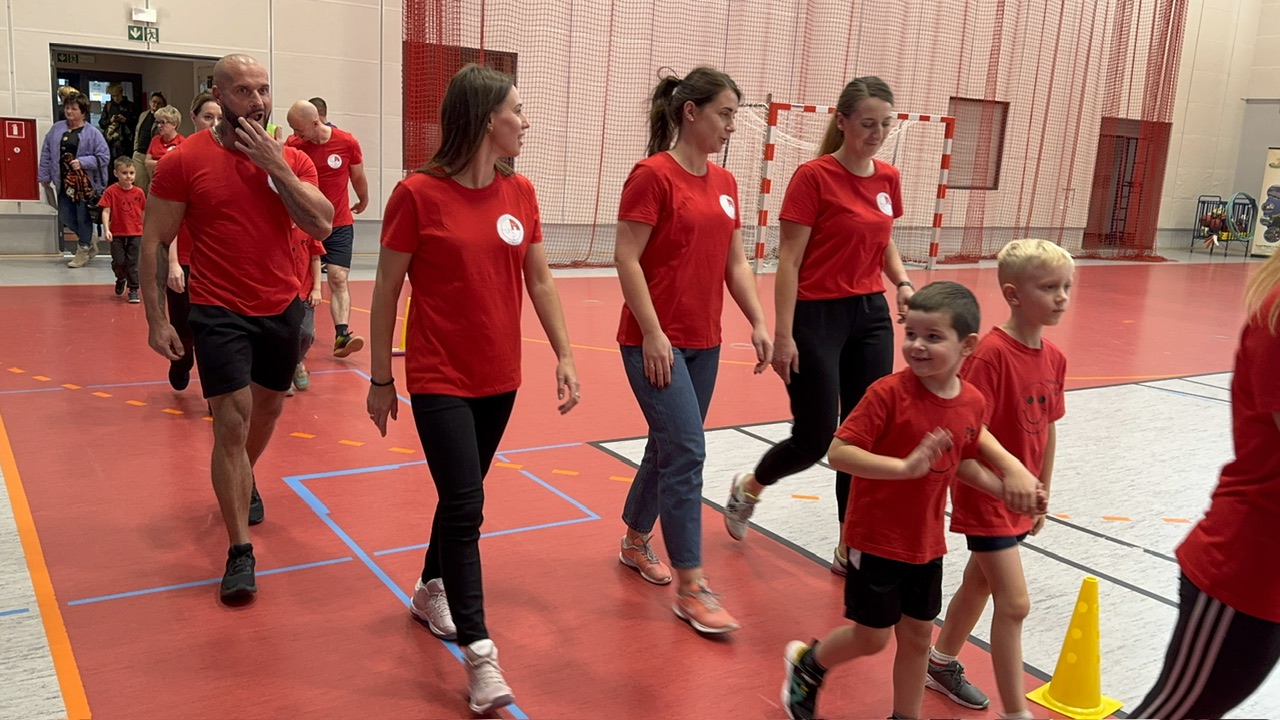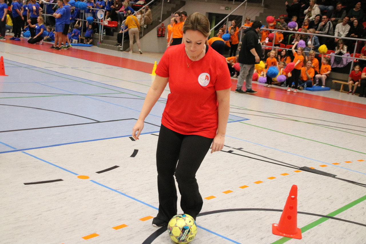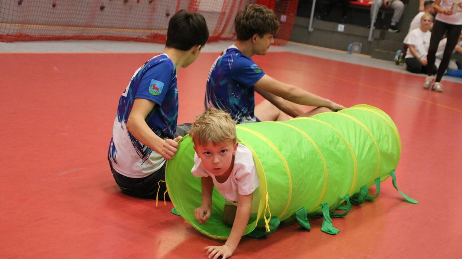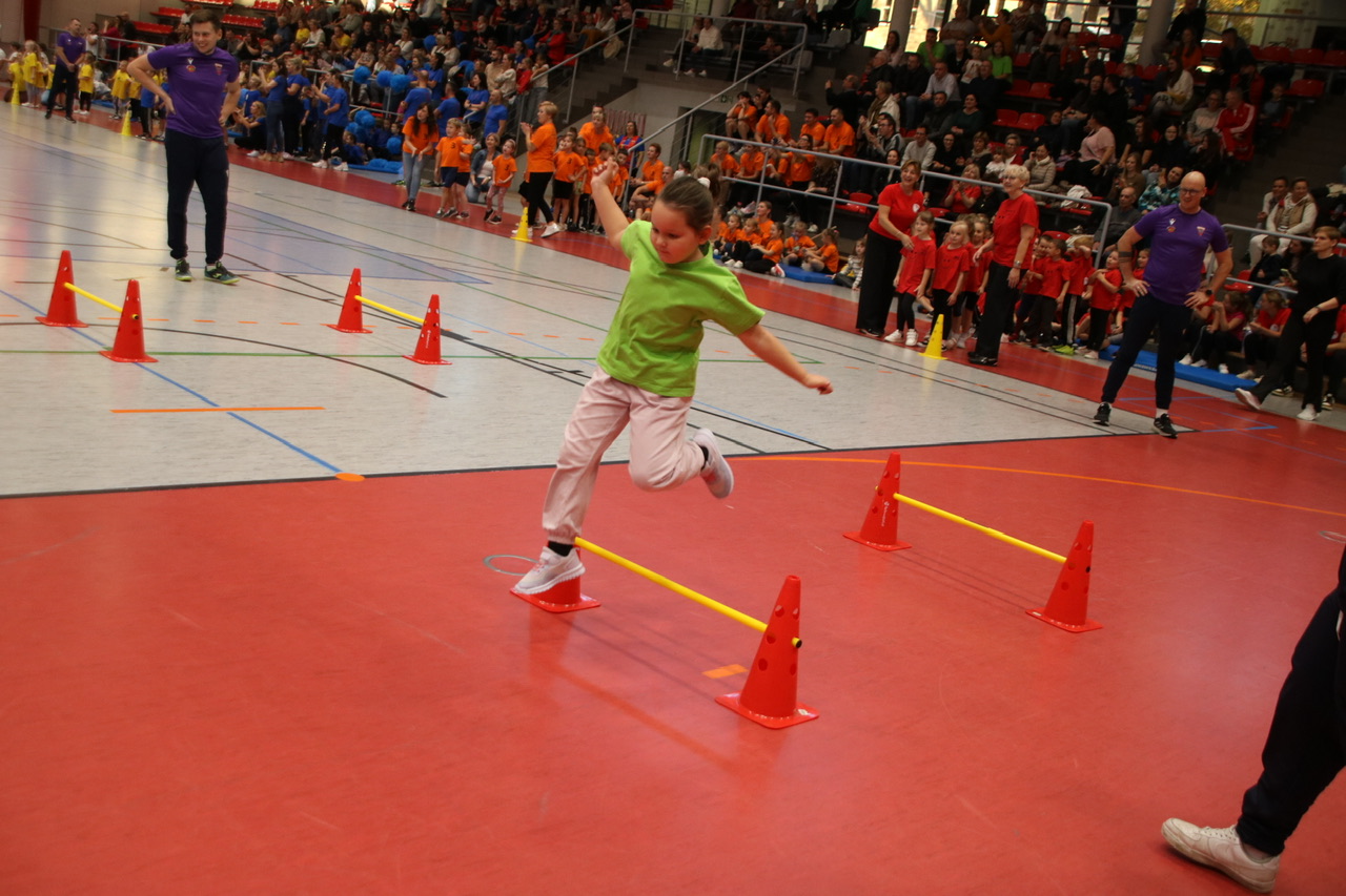 W drugiej części wydarzenia do sportowej zabawy dołączyli… rodzice! Ich konkurencje wywołały salwy śmiechu i gromkie brawa publiczności. Zaangażowanie dorosłych, doping dzieci i rodzinna atmosfera sprawiły, że trybuny tętniły pozytywną energią, a hala rozbrzmiewała aplauzem i wspólną radością.