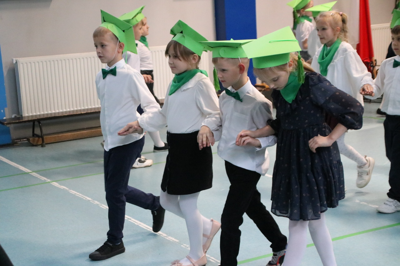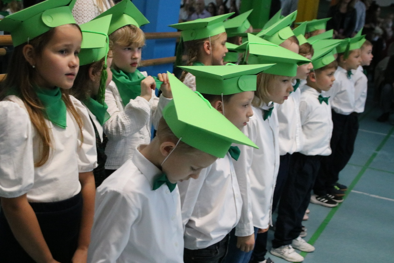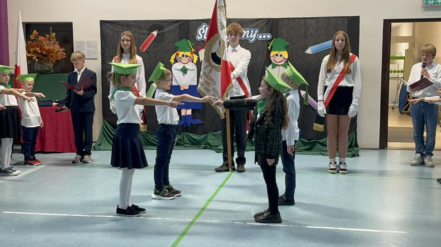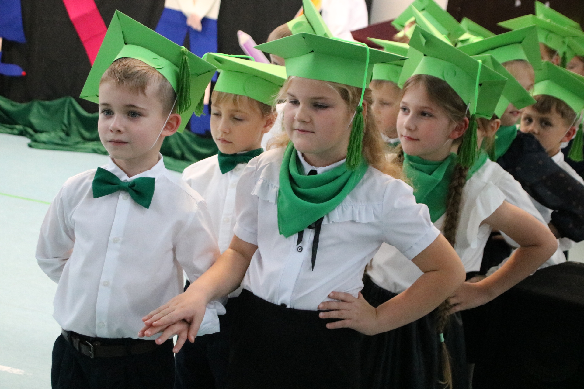 Najmłodsi uczniowie, w odświętnych strojach, z powagą ślubowali na sztandar szkoły, obiecując pilnie się uczyć, szanować nauczycieli, kolegów oraz dbać o dobre imię szkoły. Był to wyjątkowy moment, który wielu z nich zapamięta na długo.