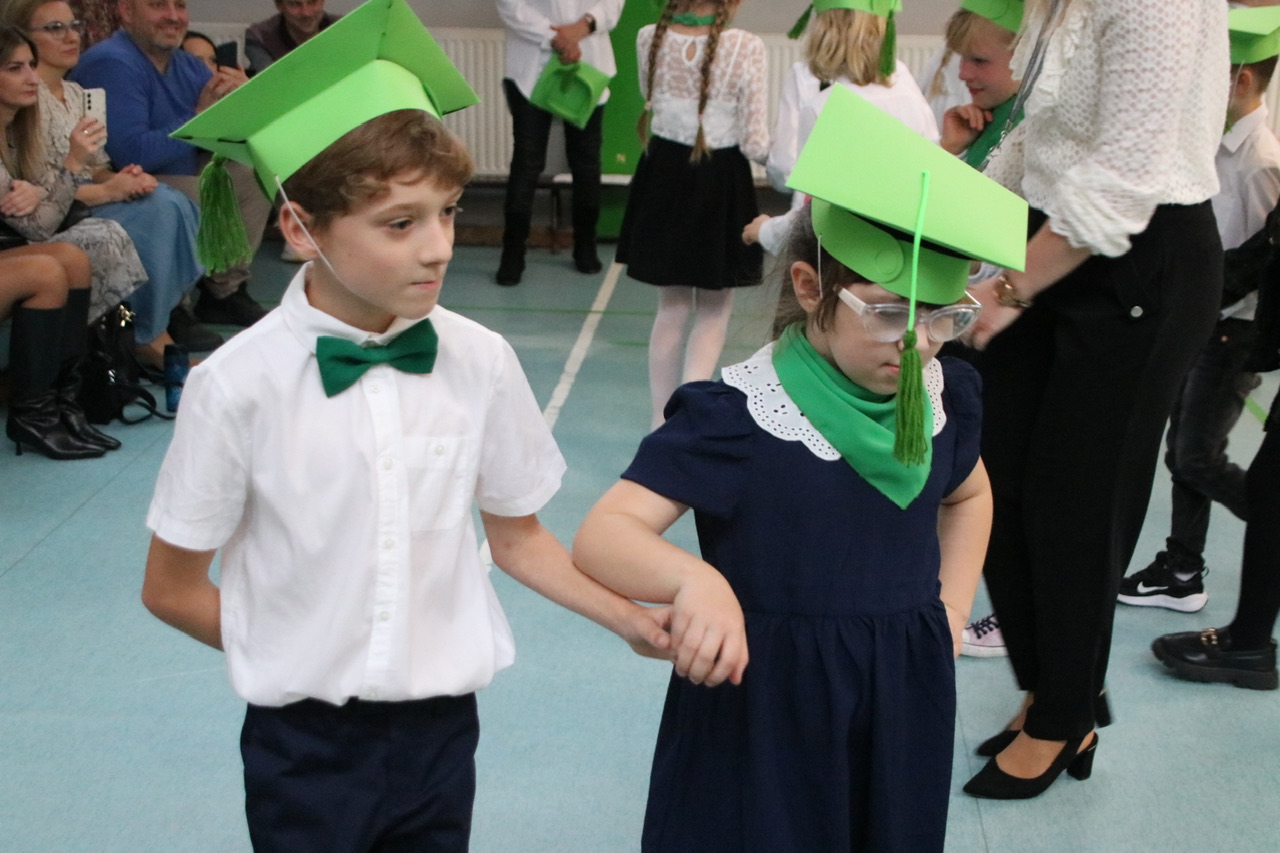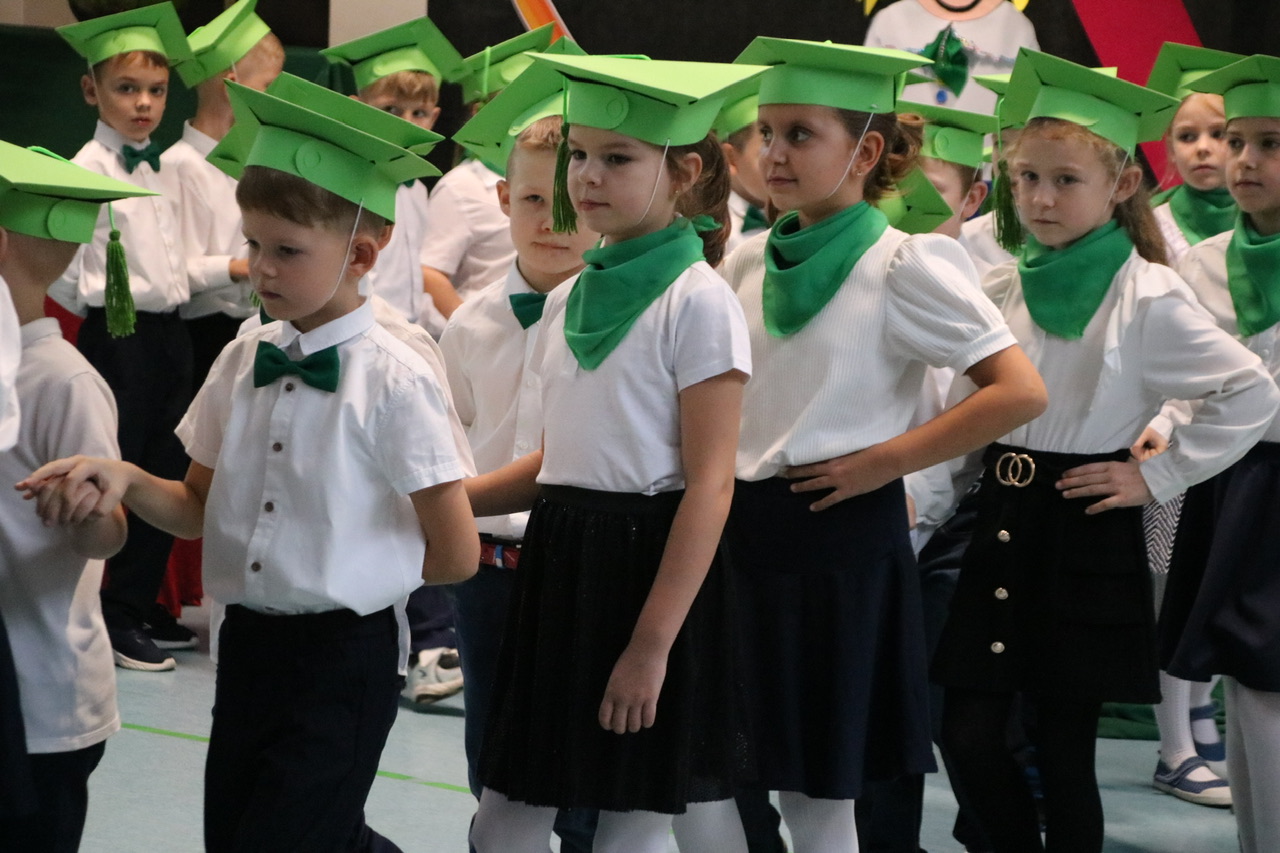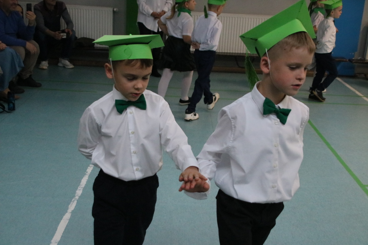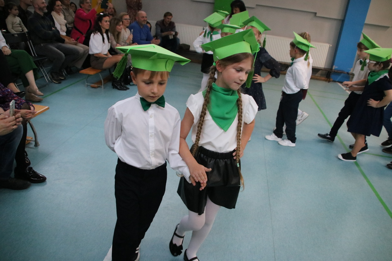 Najmłodsi uczniowie, w odświętnych strojach, z powagą ślubowali na sztandar szkoły, obiecując pilnie się uczyć, szanować nauczycieli, kolegów oraz dbać o dobre imię szkoły. Był to wyjątkowy moment, który wielu z nich zapamięta na długo.