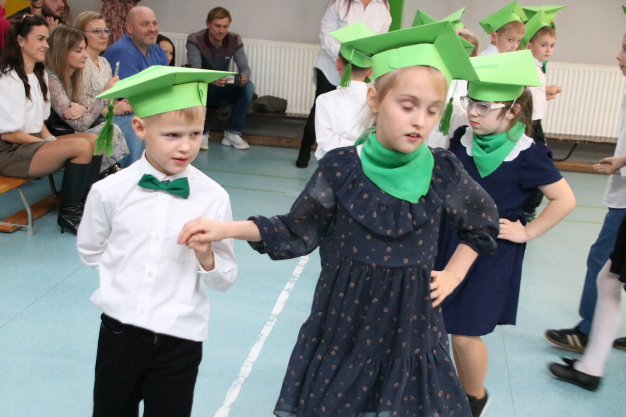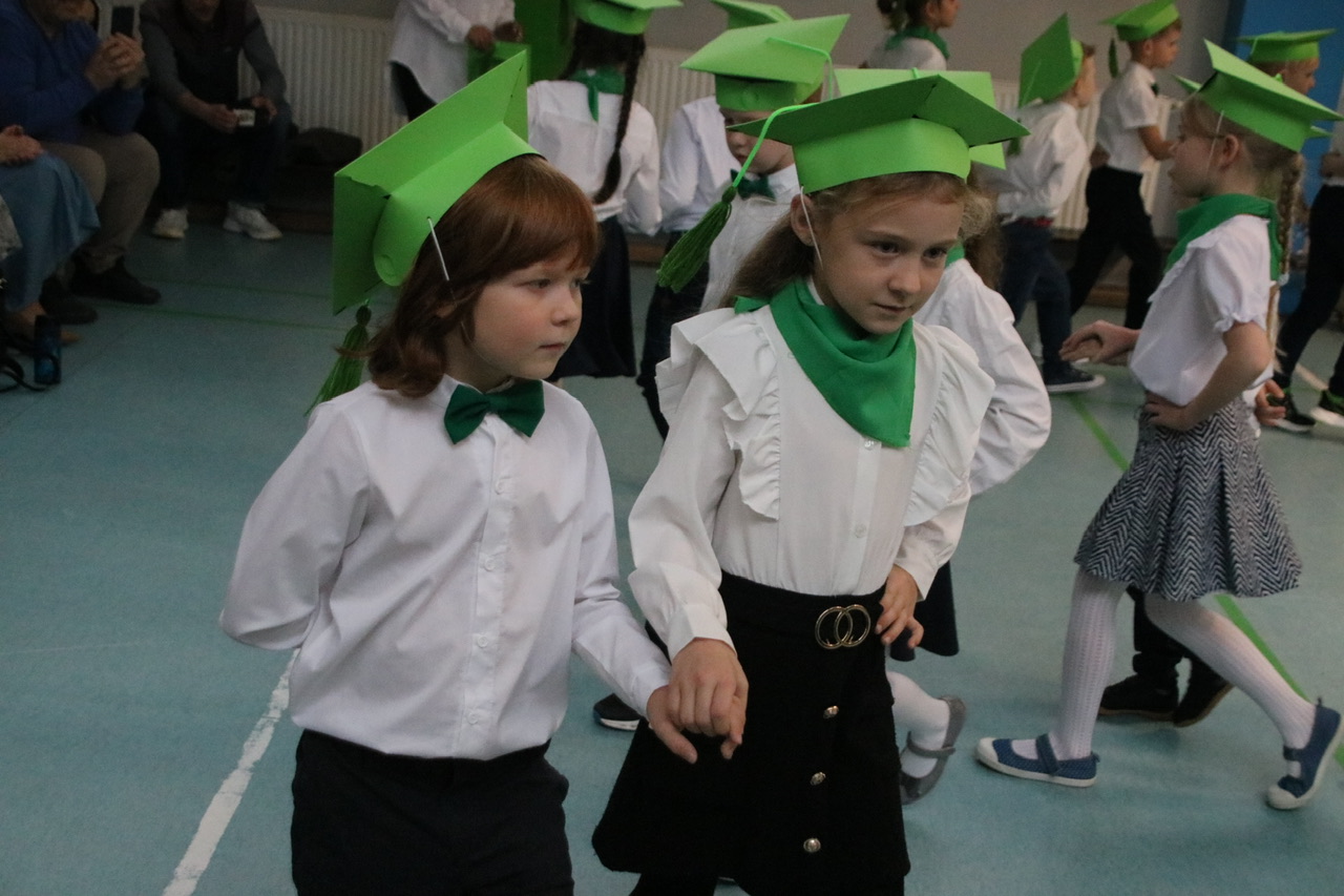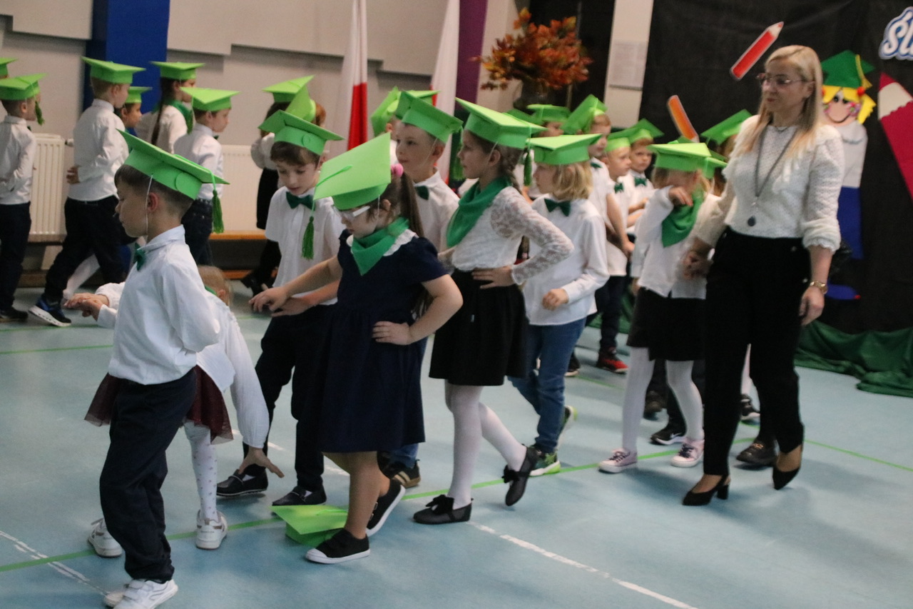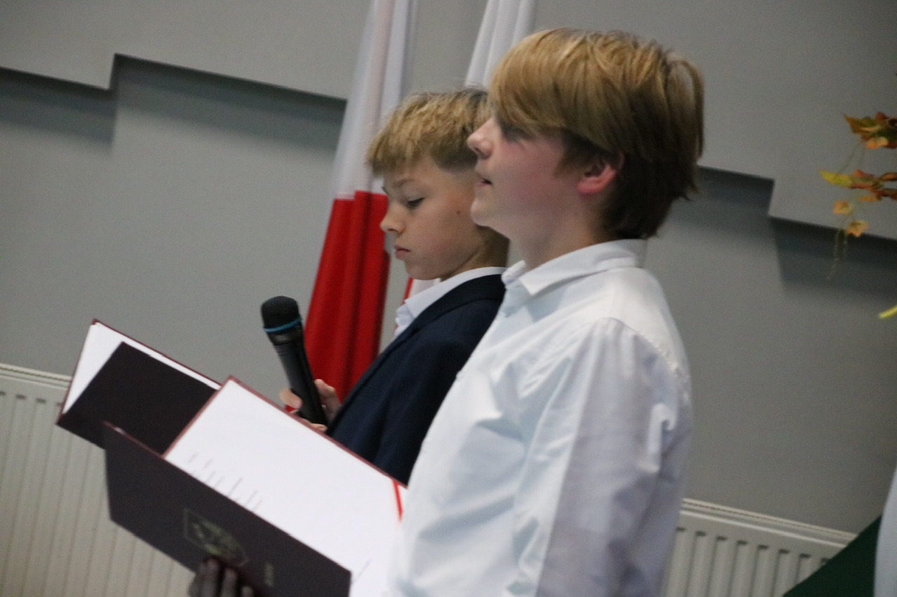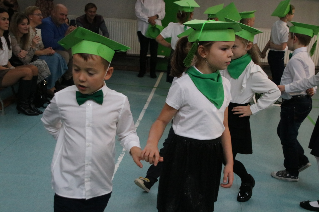 Najmłodsi uczniowie, w odświętnych strojach, z powagą ślubowali na sztandar szkoły, obiecując pilnie się uczyć, szanować nauczycieli, kolegów oraz dbać o dobre imię szkoły. Był to wyjątkowy moment, który wielu z nich zapamięta na długo.