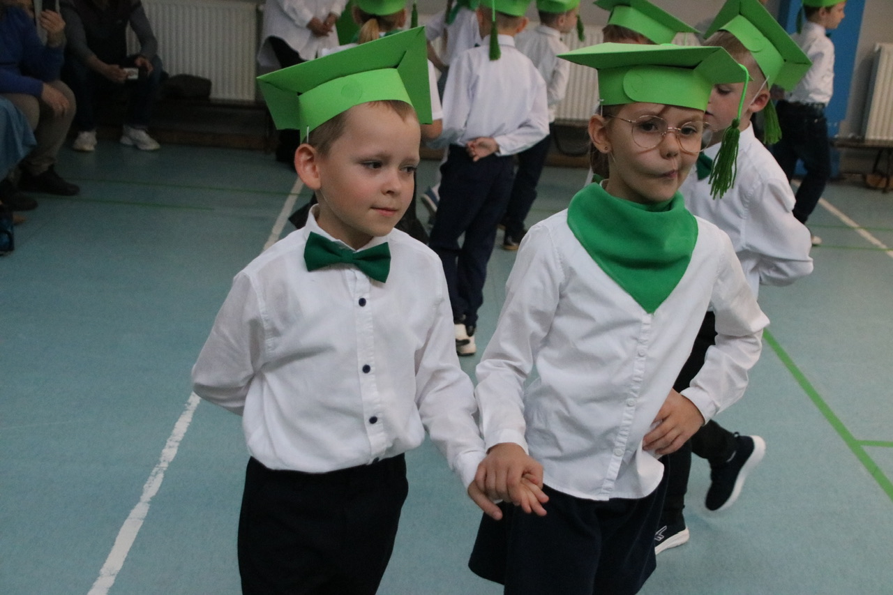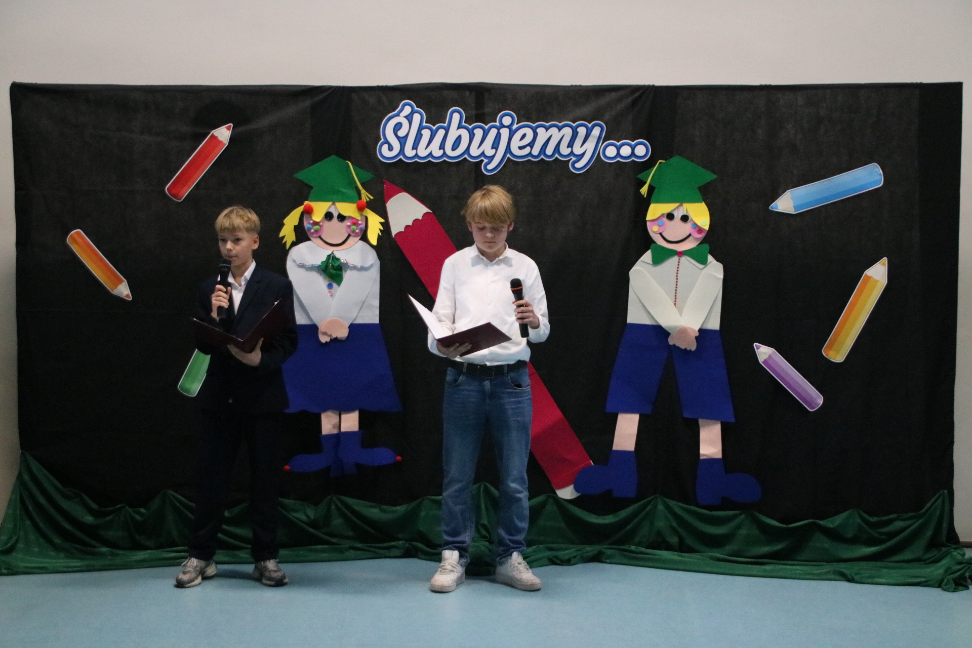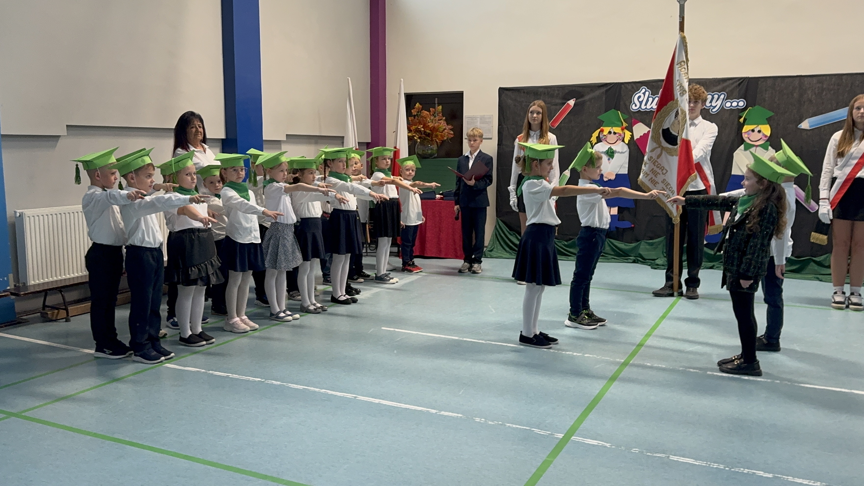 W sali gimnastycznej odbyła się uroczystość ślubowania i pasowania – pełna emocji, wzruszeń i szkolnej tradycji.