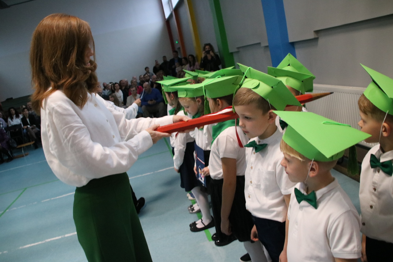 Kulminacyjnym momentem było pasowanie ogromnym, szkolnym ołówkiem – gest, który oficjalnie otworzył im drzwi do świata nauki. Na twarzach dzieci widać było dumę, ale też ekscytację przed tym, co czeka je w szkolnych murach.