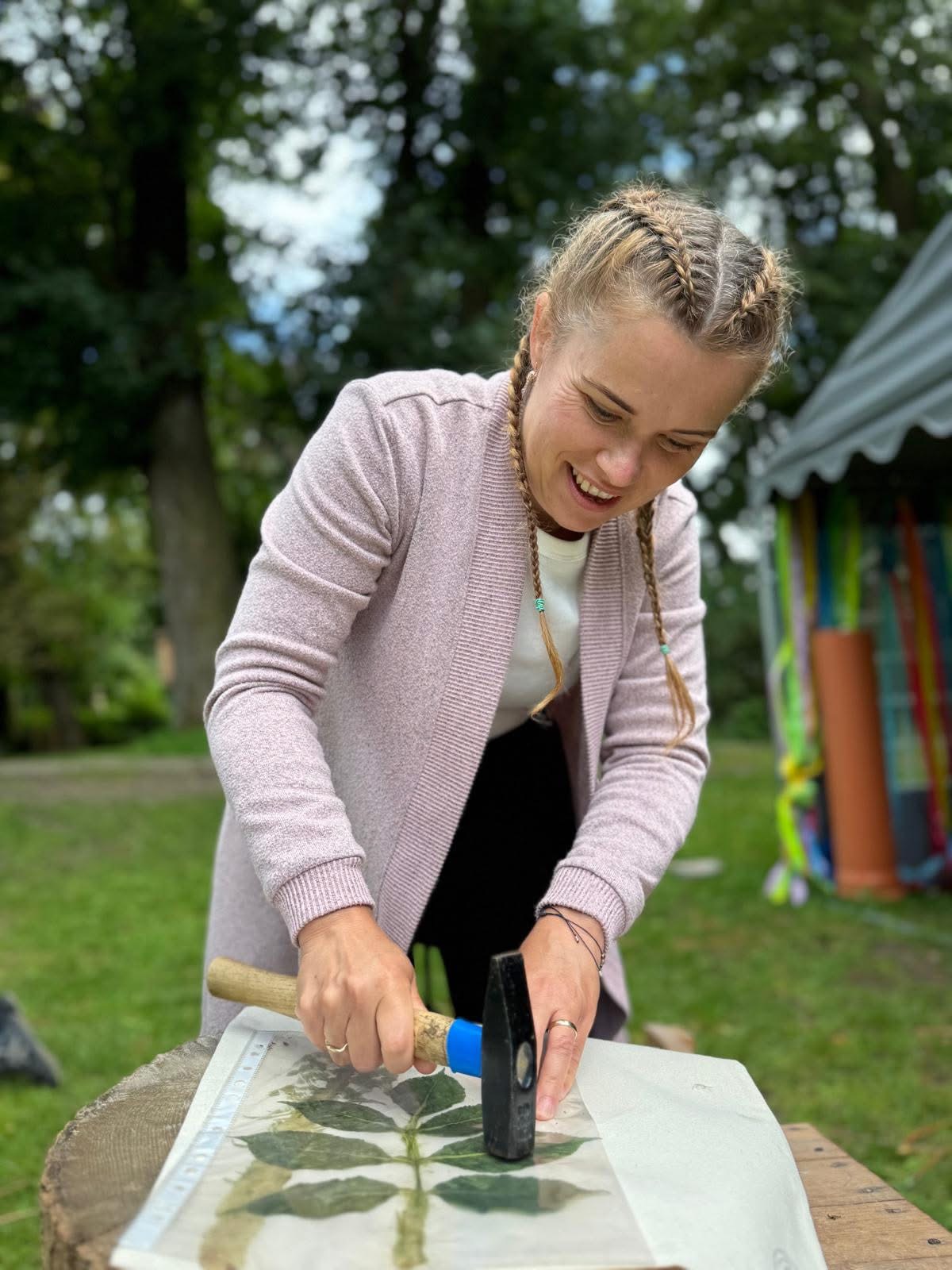Liście stały się naszymi pędzlami, a bawełniane torby – płótnem. Malowanie naturalnymi odbitkami nadało im unikatowy charakter – każda torba to małe dzieło sztuki, które opowiada historię swojego twórcy.