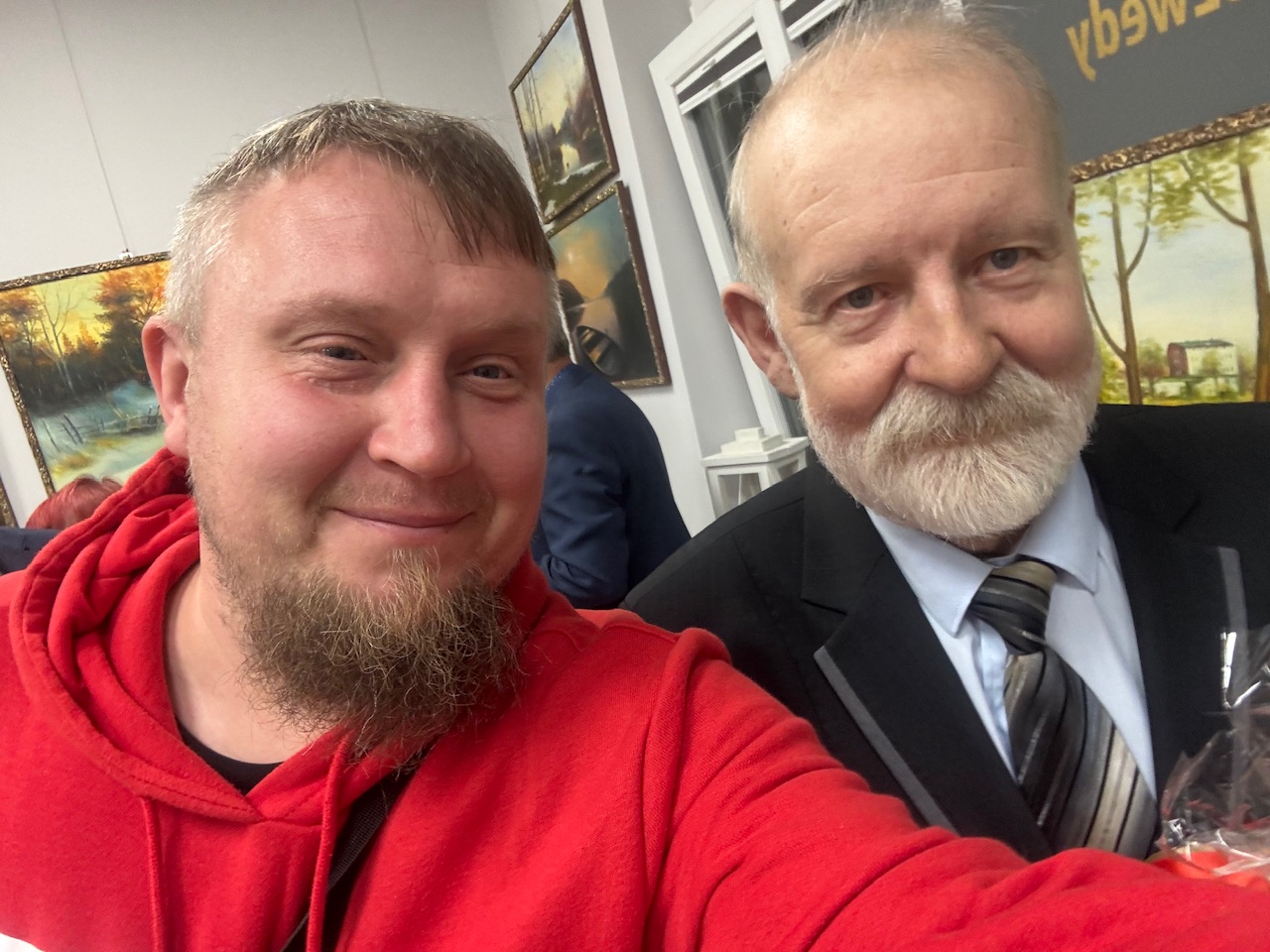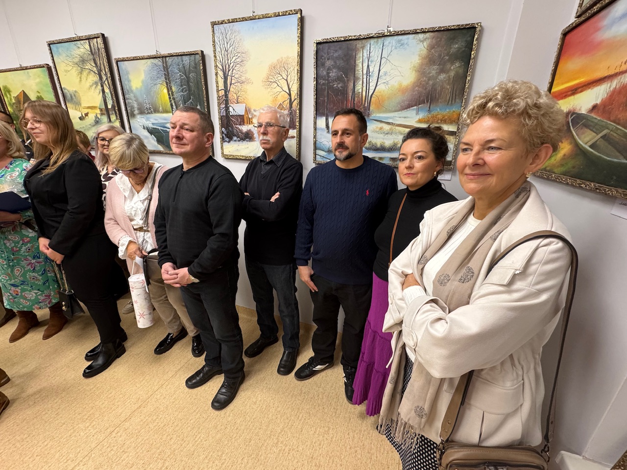 Już od pierwszych chwil dało się odczuć, że to nie jest zwykły wernisaż. Goście, w ciszy i skupieniu, podchodzili do kolejnych płócien artysty, jakby obawiając się zakłócić delikatny rytm obrazów. Na ścianach — pejzaże utkane z mgły, pól i zachodów słońca. Złotowska ziemia, którą Szweda nosi w pamięci i pod powiekami, stała się opowieścią o tym, co kruche, przemijające, a jednak trwale zapisane w barwie.