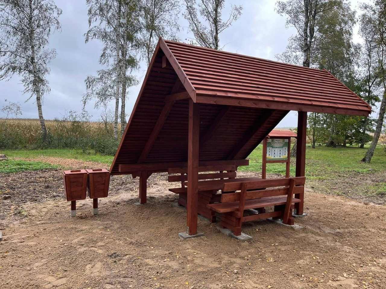- wiata edukacyjna z ławostołem edukacyjnym i ławami do siedzenia,