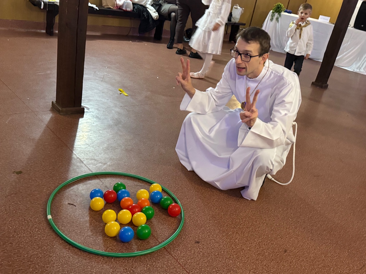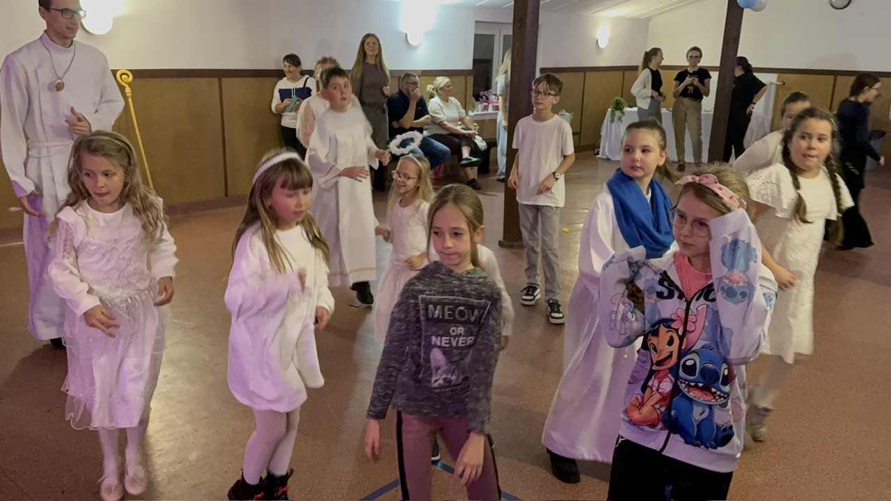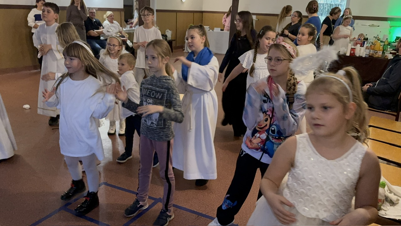 Podczas wieczoru w salach parafialnych królowały barwy, muzyka i śmiech. Dzieci, przebrane za swoich patronów i ulubionych świętych, dumnie prezentowały swoje stroje. Wśród nich można było spotkać m.in. Świętego Franciszka z Asyżu, Świętą Faustynę Kowalską, Świętego Jana Pawła II czy anioły w białych szatach.