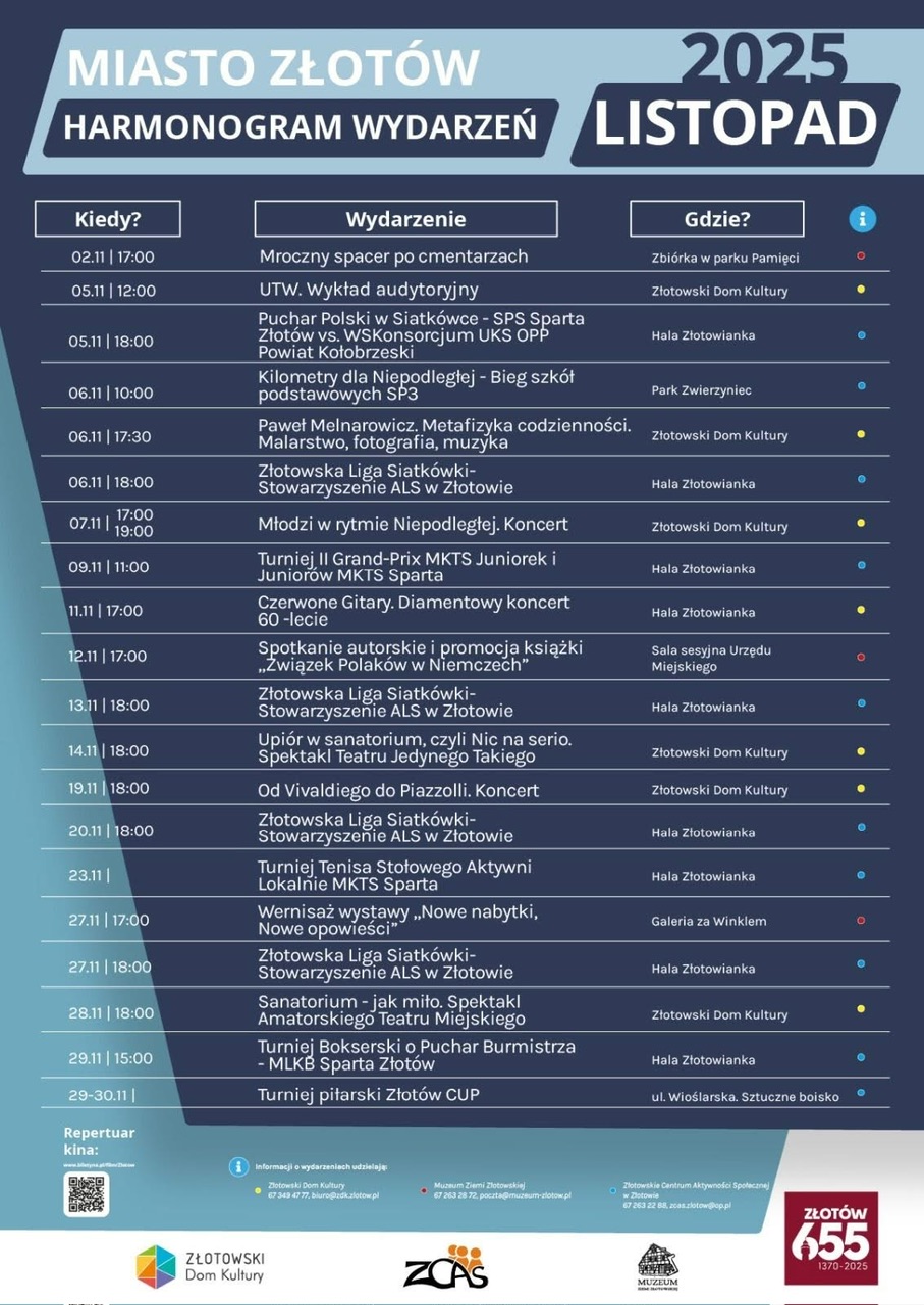 Sportowy listopad otworzy Puchar Polski w siatkówce – 5 listopada Hala Złotowianka stanie się areną pojedynku SPS Sparta Złotów z UKS OPP Powiat Kołobrzeski. Następnego dnia uczniowie wezmą udział w biegu „Kilometry dla Niepodległej” w Parku Zwierzyniec.