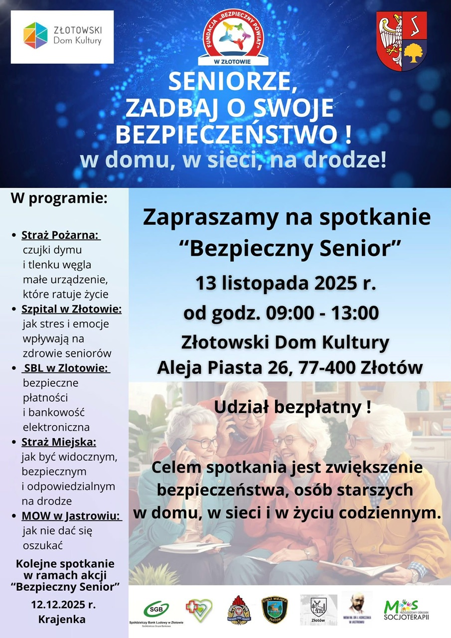Udział w wydarzeniu jest całkowicie bezpłatny, a każdy senior, który pojawi się w Złotowskim Domu Kultury, wyjdzie nie tylko z nową wiedzą, ale także z praktycznymi narzędziami, które pomogą mu czuć się bezpiecznie każdego dnia.