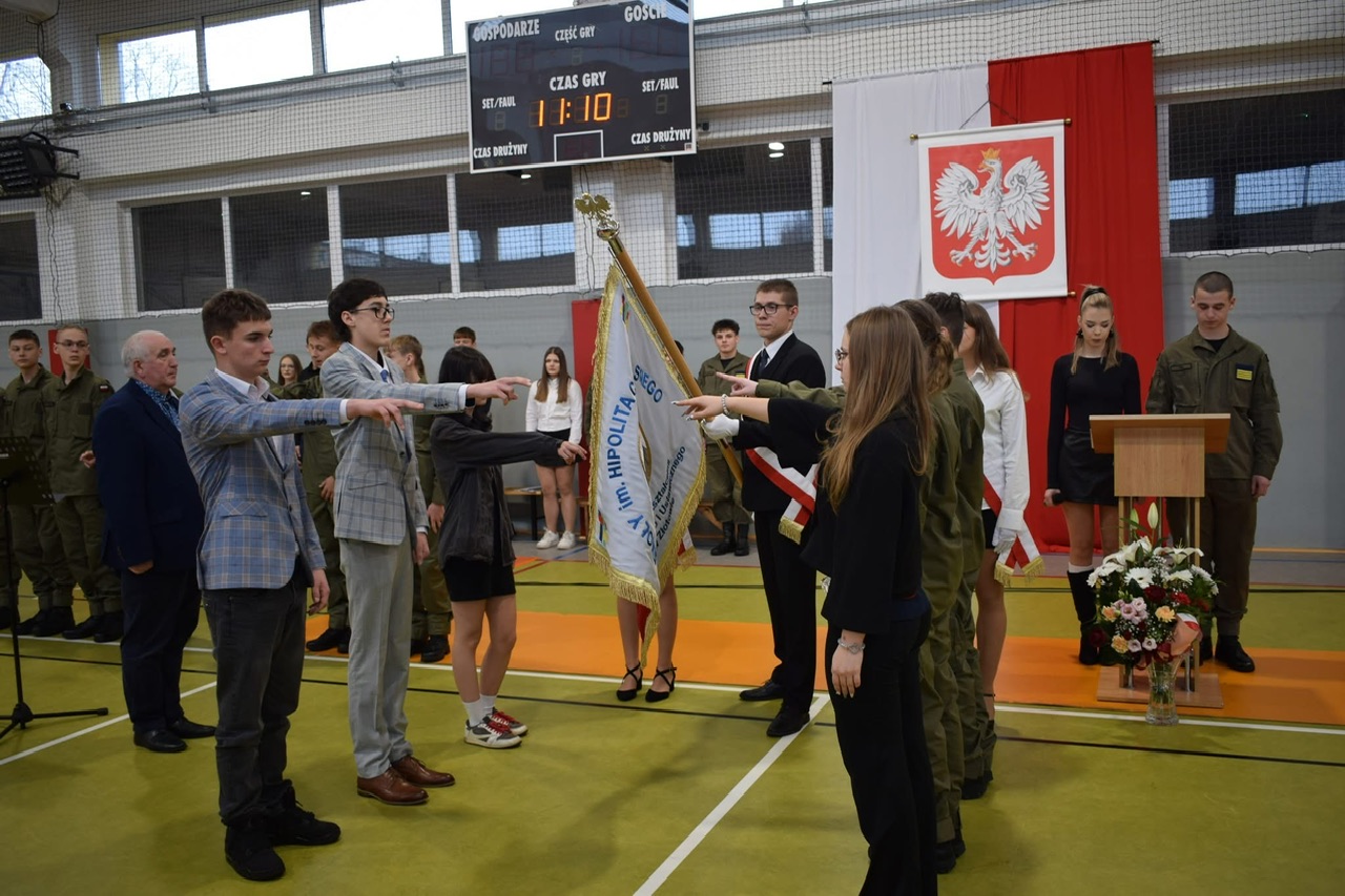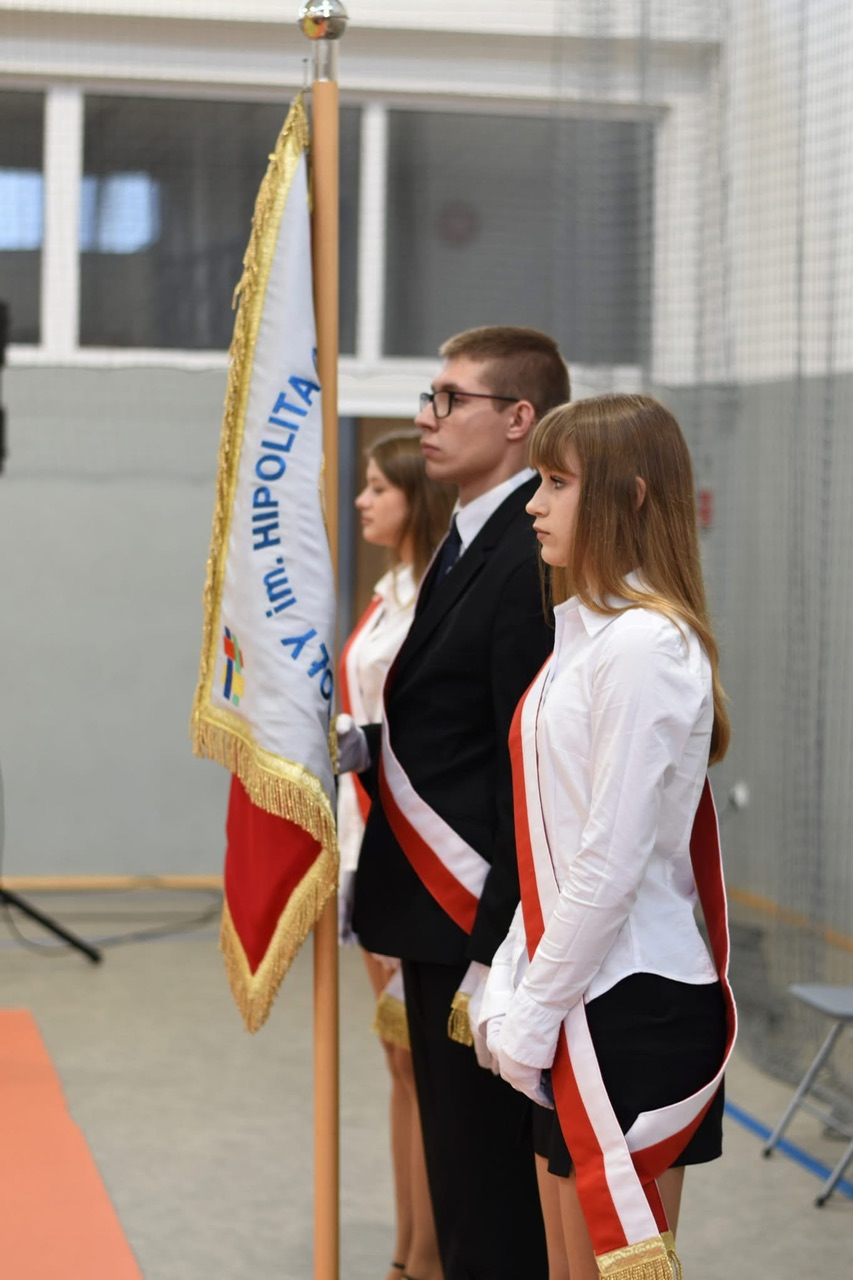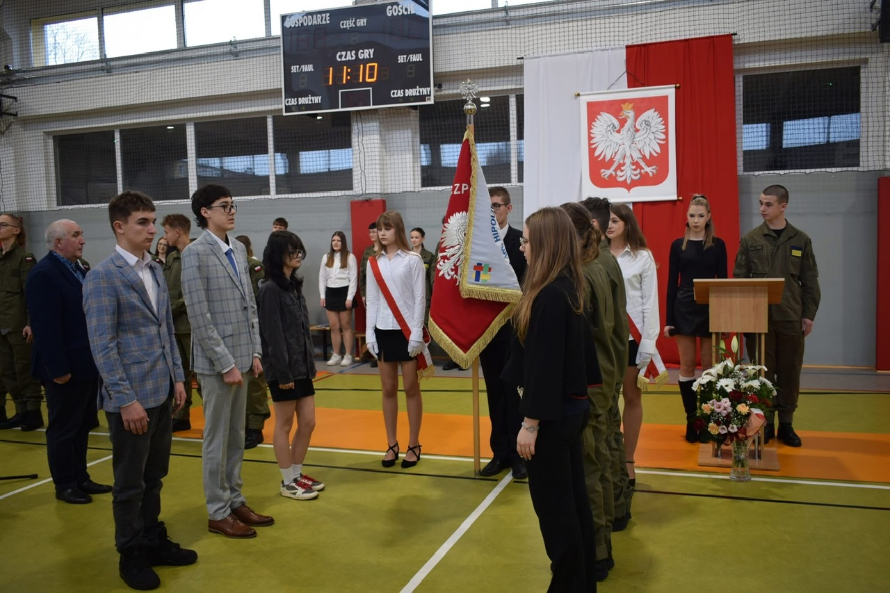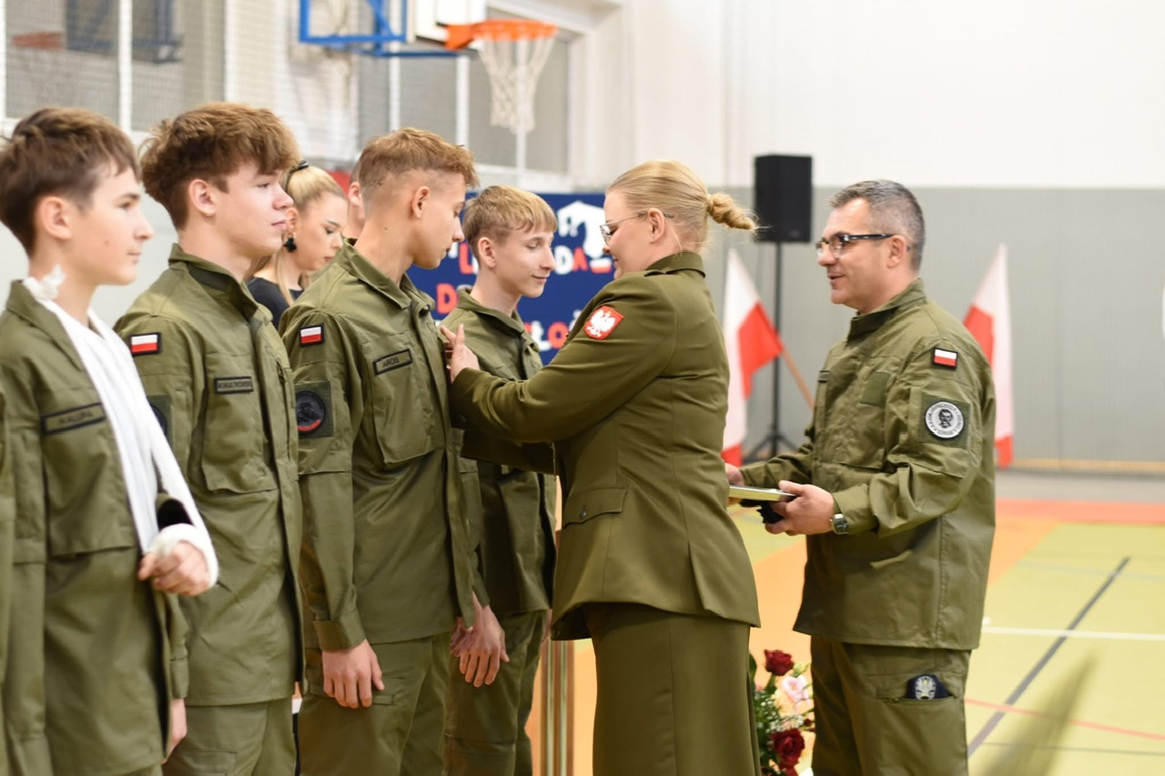 Podczas uroczystości pierwszoklasiści złożyli ślubowanie na sztandar szkoły, symbolicznie stając się pełnoprawnymi członkami szkolnej społeczności. Wśród nich znaleźli się uczniowie klasy objętej patronatem Ministerstwa Obrony Narodowej, którzy otrzymali z rąk pani podporucznik Anny Gomołysek z 122 batalionu lekkiej piechoty w Dolaszewie oficjalne emblematy mundurowe. Ten gest był nie tylko wyróżnieniem, ale i wyrazem zaufania oraz dumy z młodego pokolenia, które z zaangażowaniem podejmuje służbę na rzecz ojczyzny.