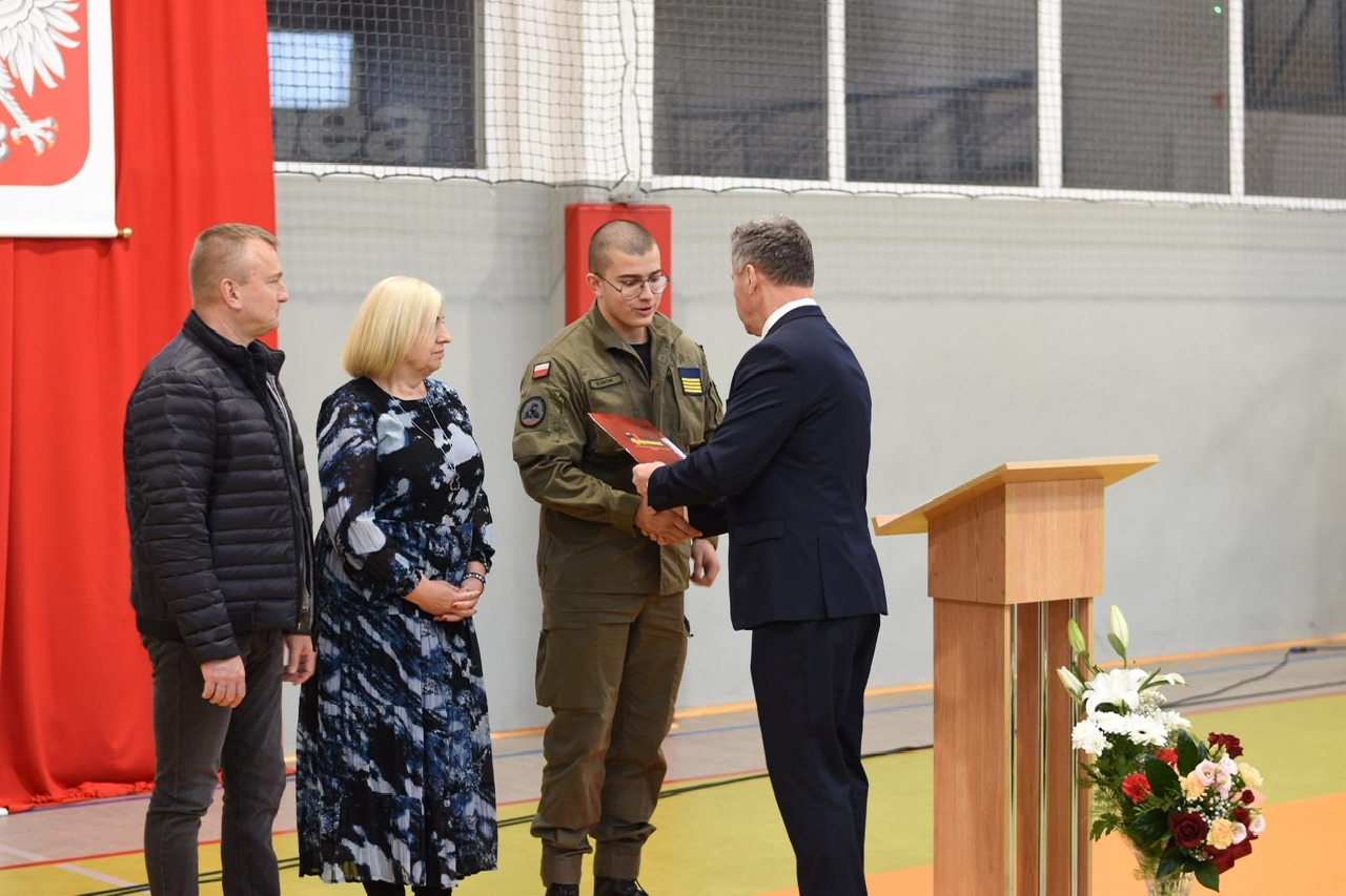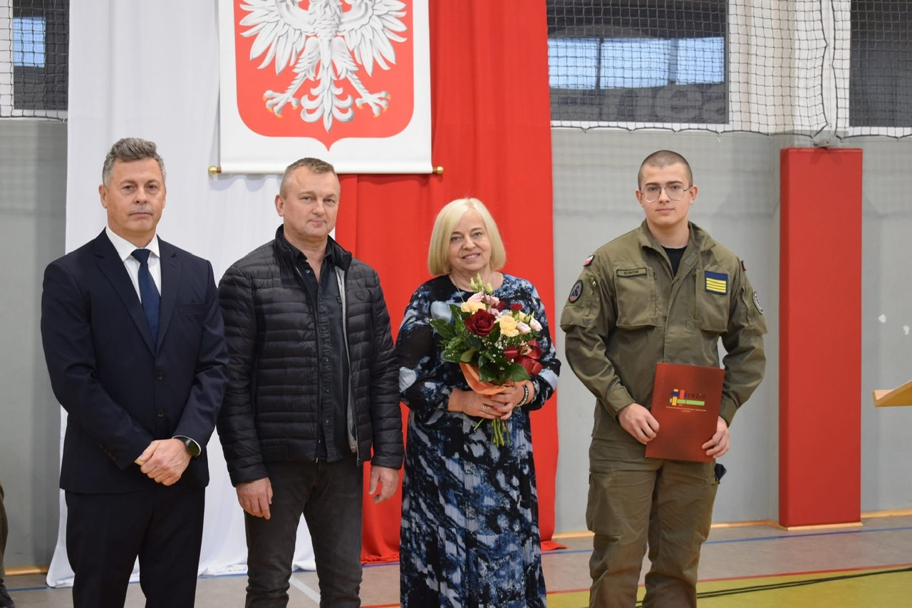 Szczególnym momentem apelu było wręczenie listu gratulacyjnego uczniowi klasy 4 LO – Miłoszowi Kubów – oraz jego rodzicom. Miłosz został wyróżniony za bohaterską postawę i udzielenie pomocy osobie poszkodowanej. Jego odwaga i gotowość do działania stanowią piękny przykład postawy obywatelskiej i są powodem do dumy dla całej szkoły.
