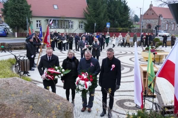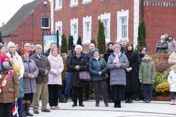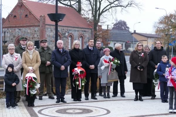 Po nabożeństwie, poczty sztandarowe, przedstawiciele samorządu, instytucji, organizacji społecznych oraz licznie przybyli mieszkańcy gminy przemaszerowali pod pomnik Pamięci Poległych za Ojczyznę w centrum miejscowości. Tam odbyła się oficjalna część uroczystości. Okolicznościowe przemówienia wygłosili wójt gminy Przemysław Kurdzieko oraz wicestarosta złotowski Daniel Sztych, przypominając o znaczeniu wolności, wspólnoty i pamięci o tych, którzy za niepodległość oddali życie.