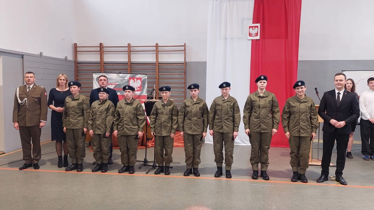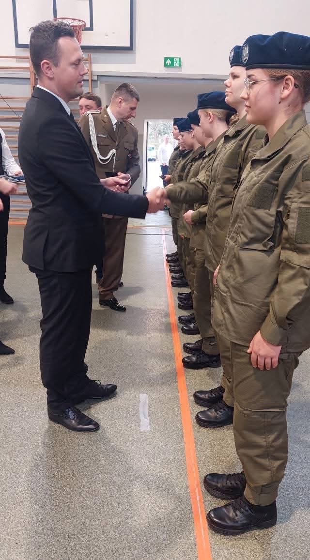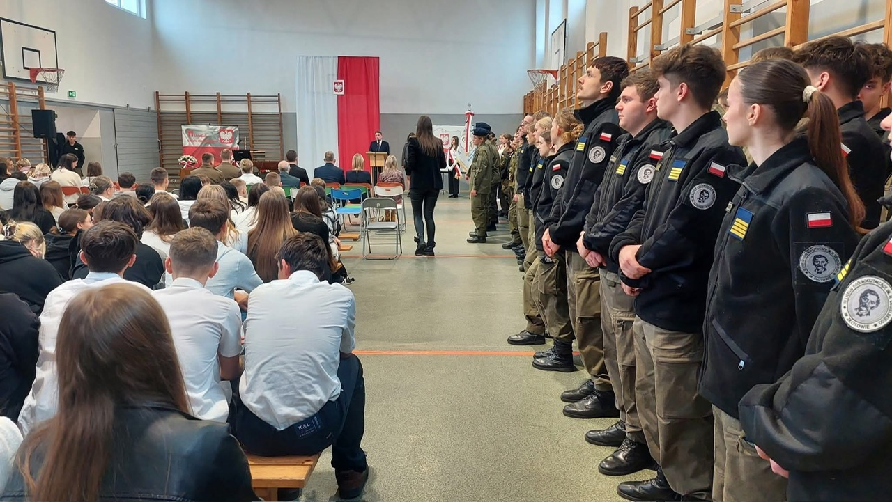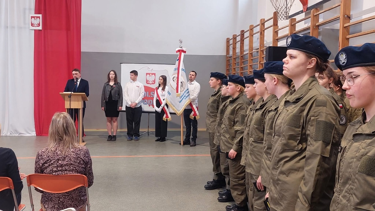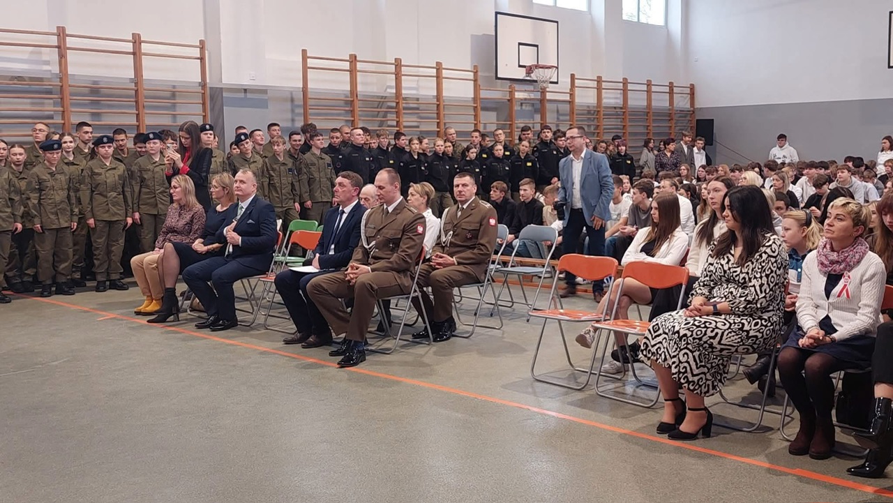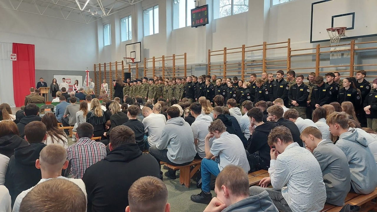 W podniosłej atmosferze, wśród biało-czerwonych barw i dźwięków żołnierskich pieśni, uczniowie klas pierwszych złożyli uroczyste ślubowanie, stając się pełnoprawnymi członkami szkolnej społeczności. Szczególne miejsce podczas ceremonii zajęli uczniowie Branżowych Oddziałów Wojskowych, którzy w pełnym umundurowaniu odebrali z rąk zaproszonych gości swoje emblematy mundurowe – symbol przynależności i odpowiedzialności.