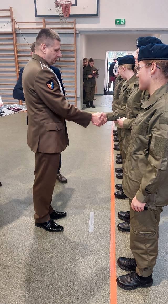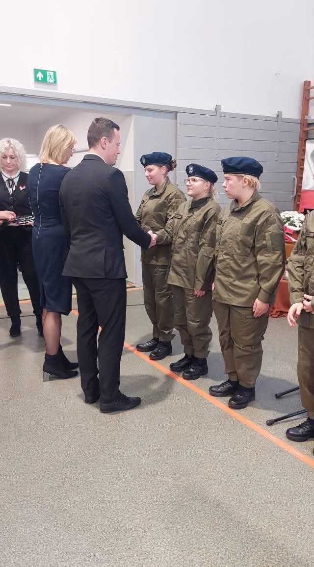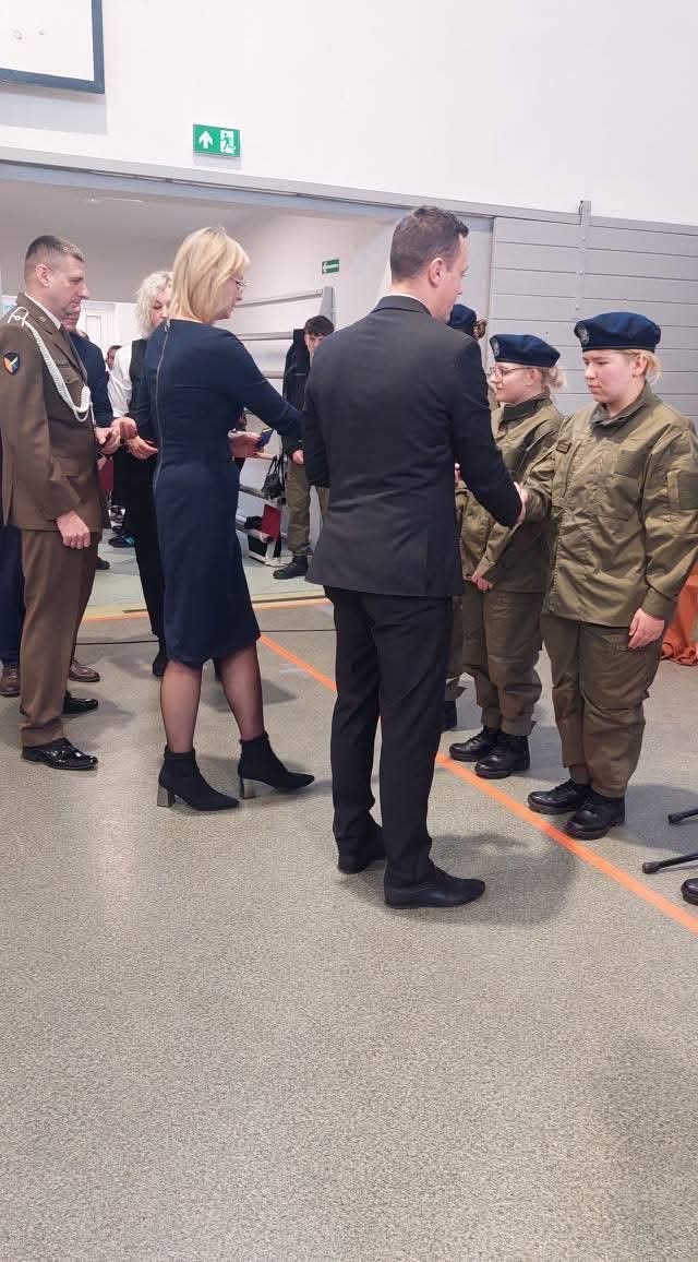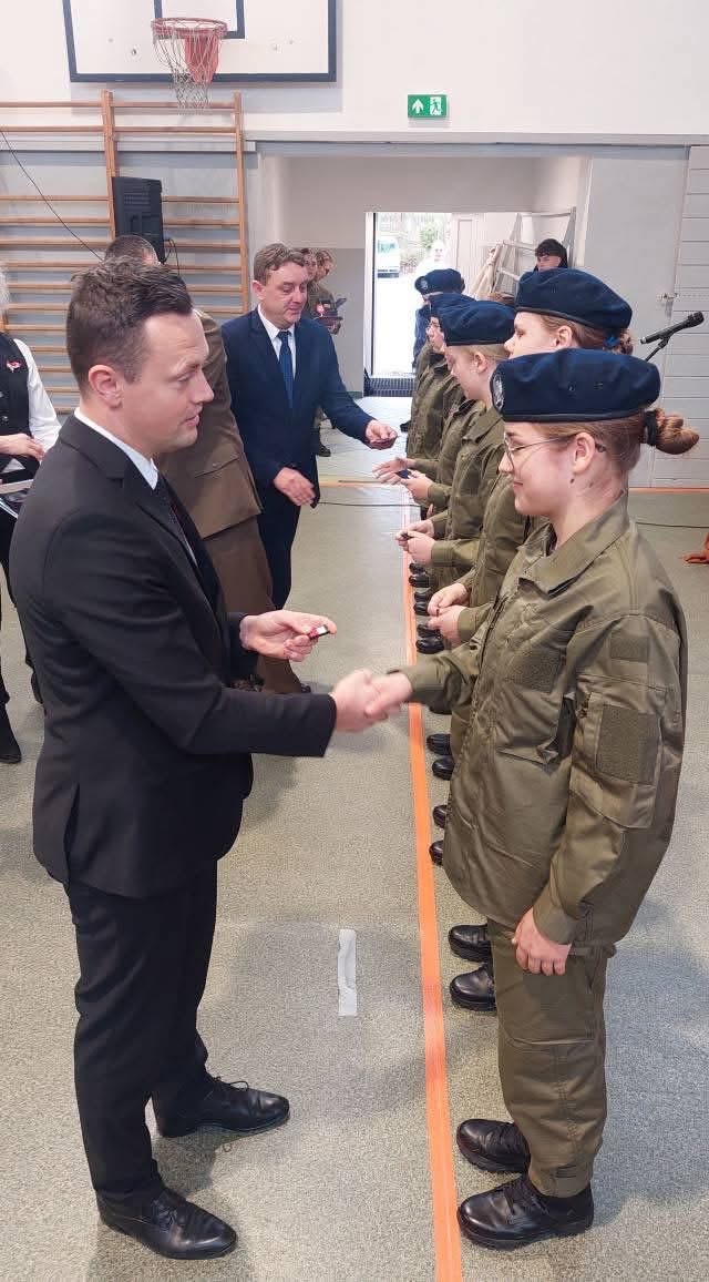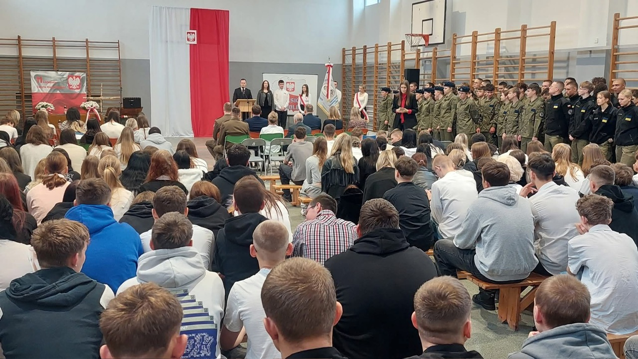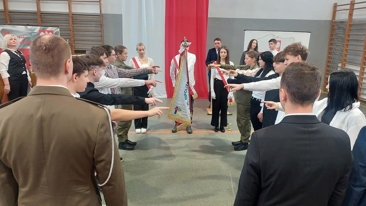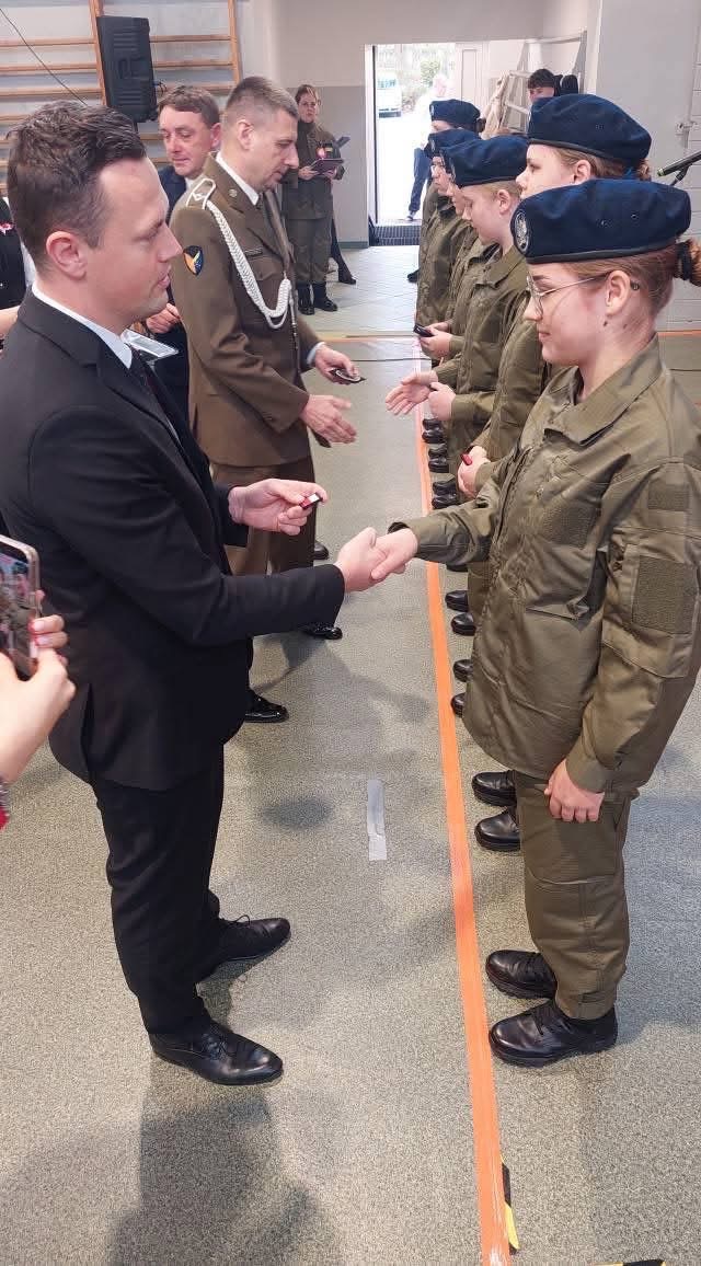 W podniosłej atmosferze, wśród biało-czerwonych barw i dźwięków żołnierskich pieśni, uczniowie klas pierwszych złożyli uroczyste ślubowanie, stając się pełnoprawnymi członkami szkolnej społeczności. Szczególne miejsce podczas ceremonii zajęli uczniowie Branżowych Oddziałów Wojskowych, którzy w pełnym umundurowaniu odebrali z rąk zaproszonych gości swoje emblematy mundurowe – symbol przynależności i odpowiedzialności.