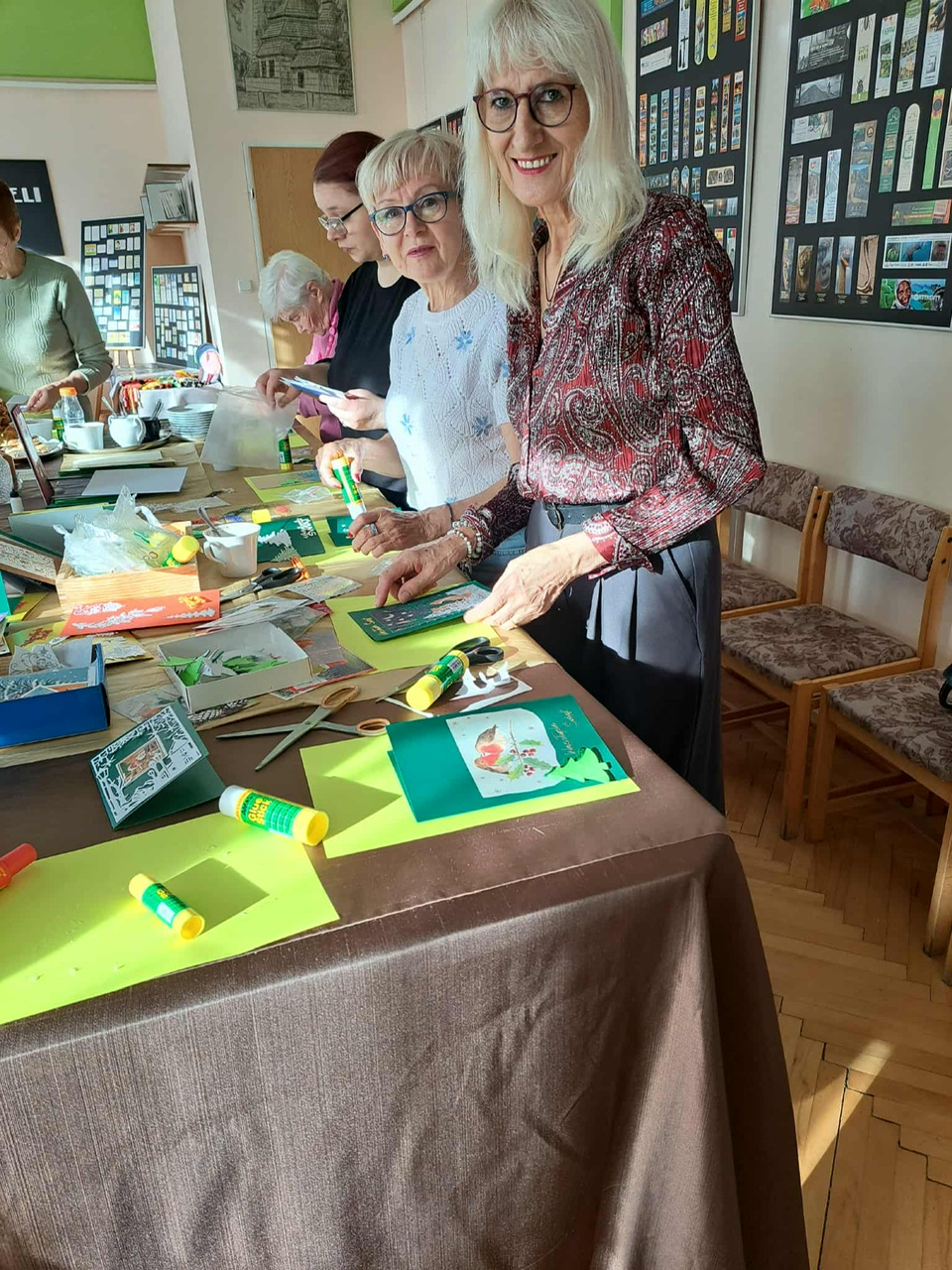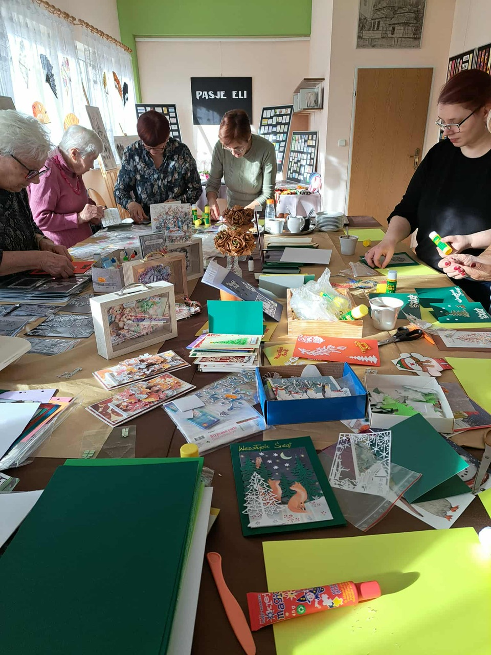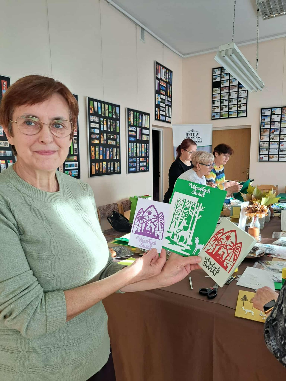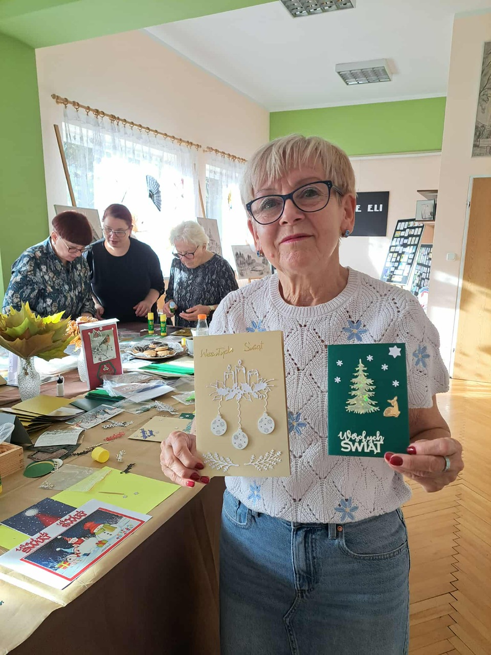 Powstawały prace pełne fantazji, barw oraz świątecznych akcentów, które wprowadzały wszystkich w radosny, ciepły klimat nadchodzących dni. Część efektów tej twórczej pracy już wkrótce będzie można zobaczyć podczas Kiermaszu Świątecznego, a wybrane kartki trafią do mieszkańców wraz z serdecznymi życzeniami.