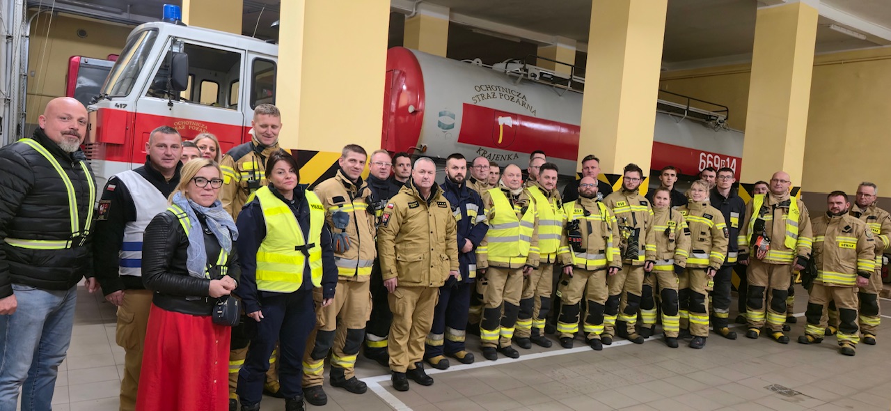 Organizatorzy przygotowali realistyczny scenariusz – zadymione pomieszczenia, konieczność ewakuacji osób z różnych części obiektu oraz dynamicznie zmieniające się warunki działań. Dzięki temu uczestnicy mogli zmierzyć się z sytuacją zbliżoną do realnego zagrożenia, wymagającą sprawnego podejmowania decyzji i skutecznej komunikacji.
