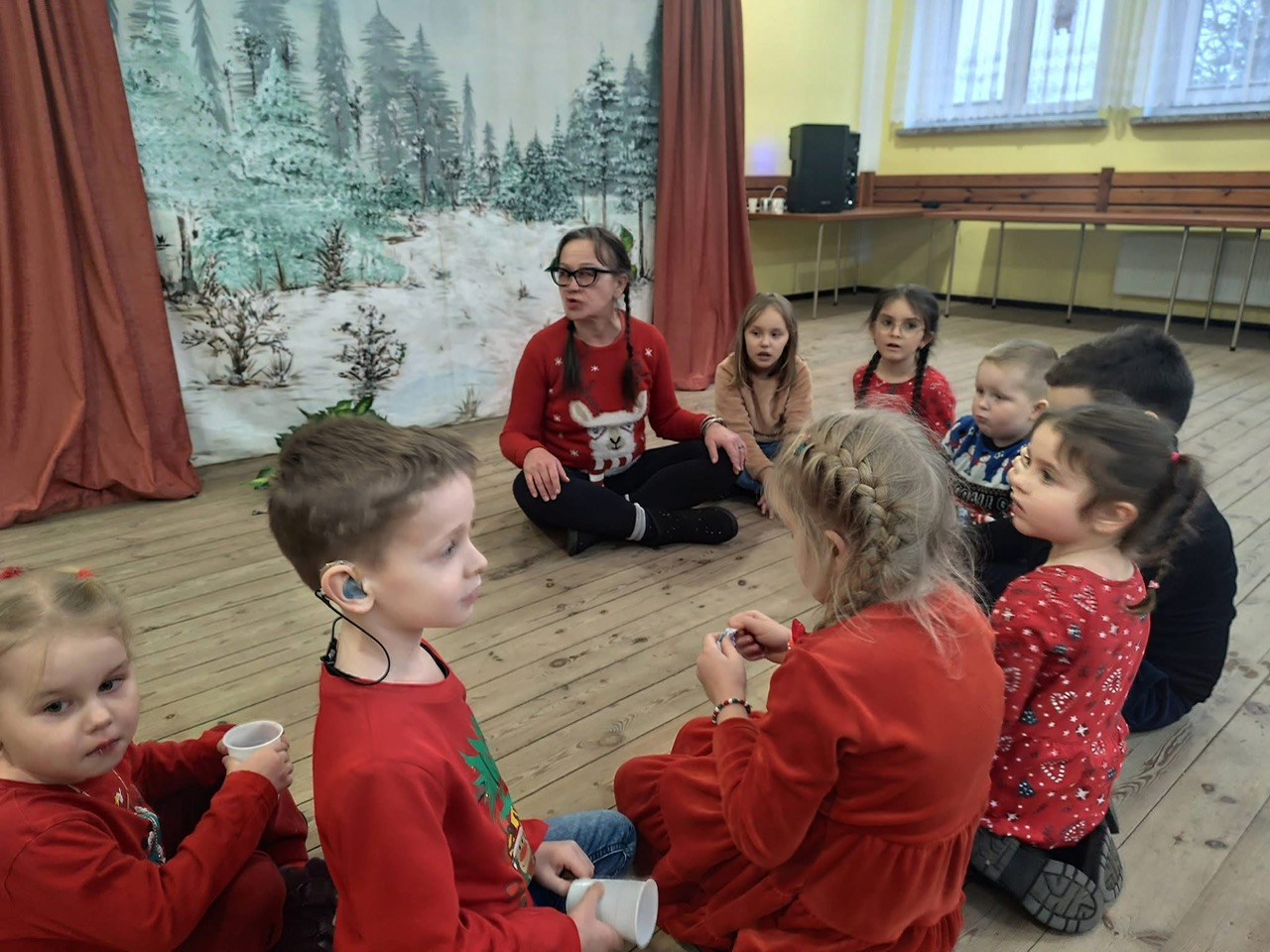 Chwilę później w sali pojawił się długo wyczekiwany gość – Święty Mikołaj. Każde dziecko otrzymało od niego prezent, a spotkaniu towarzyszyła sesja fotograficzna wykonana przez zaprzyjaźnioną fotografkę. Ujęcia pełne uśmiechów i dziecięcej ekscytacji z pewnością będą miłą pamiątką na lata.