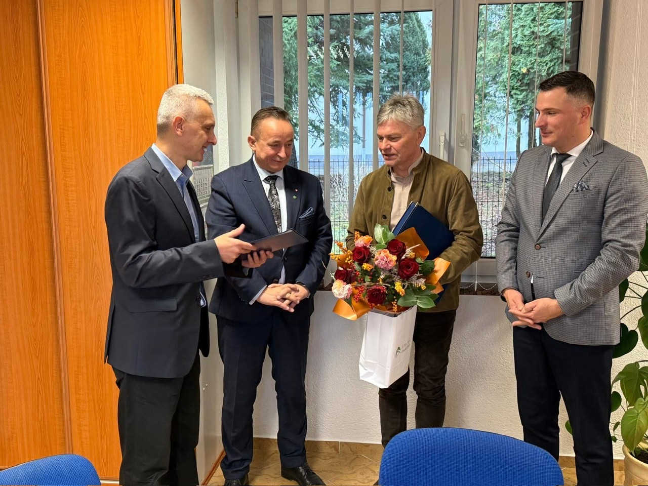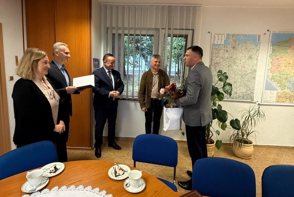 Delegacja odwiedziła siedzibę przedsiębiorstwa, gdzie spotkała się z prezesem Waldemarem Olszowskim oraz zespołem firmy. Była to doskonała okazja do zapoznania się z funkcjonowaniem zakładu oraz rozwiązaniami, które na co dzień wpływają na wysoki poziom bezpieczeństwa pracy.