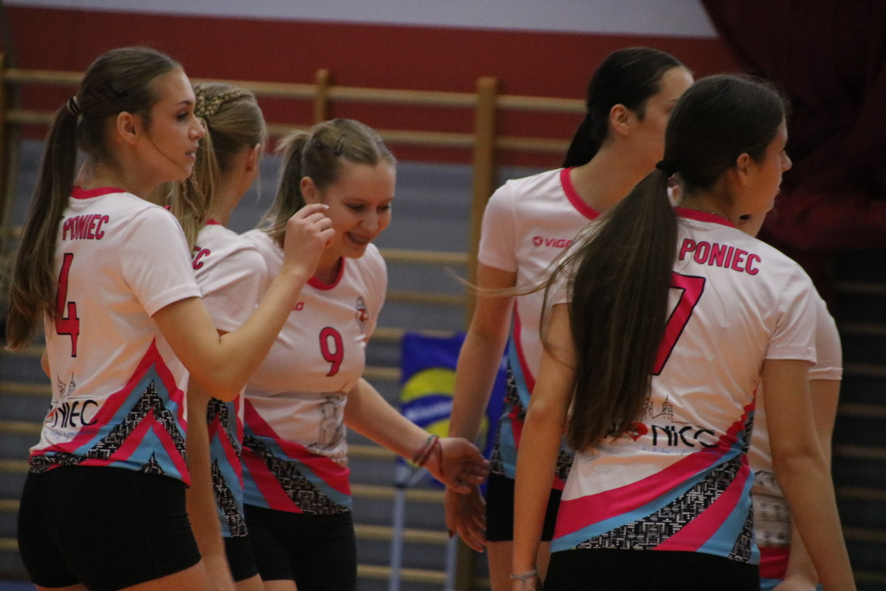Drugim rywalem był zespół z Ponieca. Spotkanie rozpoczęło się obiecująco – dobra gra, odważne akcje i nawet kilkupunktowa przewaga dawały powody do optymizmu. Niestety po zdobyciu 17. punktu rywalki zaprezentowały większe doświadczenie, przejmując inicjatywę i wygrywając pierwszego seta. Druga partia również padła ich łupem, zakończona wynikiem 21 punktów dla zespołu z Ponieca.