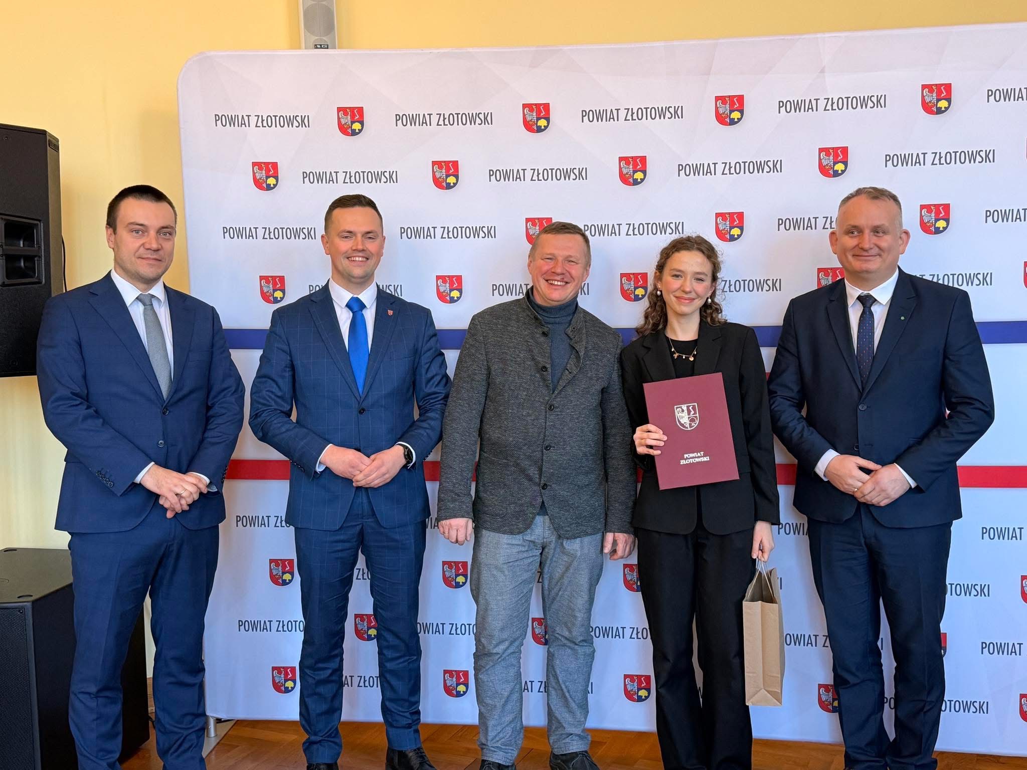 Gratulacje i słowa uznania w imieniu samorządu przekazali Starosta Złotowski Patryk Wruk, Przewodniczący Rady Powiatu Tomasz Guhs oraz Wicestarosta Złotowski Daniel Sztych. Podziękowano młodym artystom z Powiatowego Ogniska Pracy Pozaszkolnej w Złotowie, a także sportowcom: Andrzejowi Muszczkowi, Annie Mariannie Jędrzejczyk oraz Kamili Sakowicz, którzy swoimi osiągnięciami godnie reprezentują powiat na arenie regionalnej i ogólnopolskiej.
