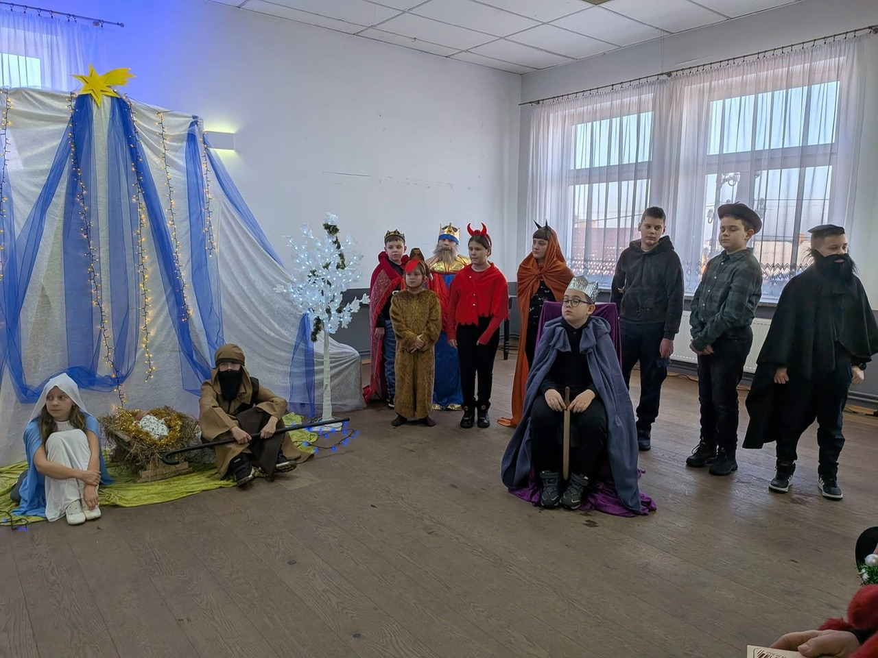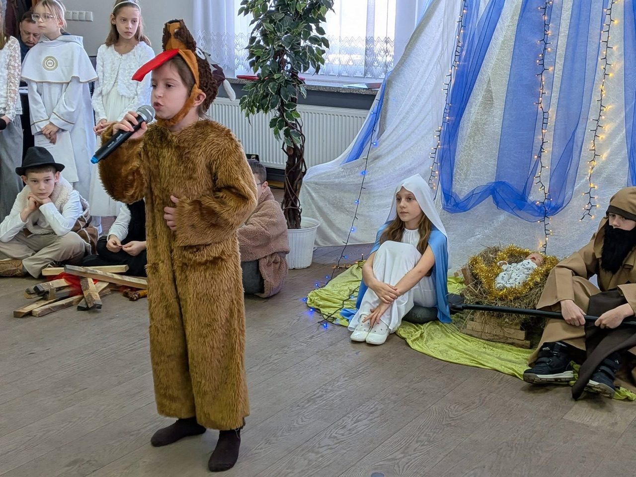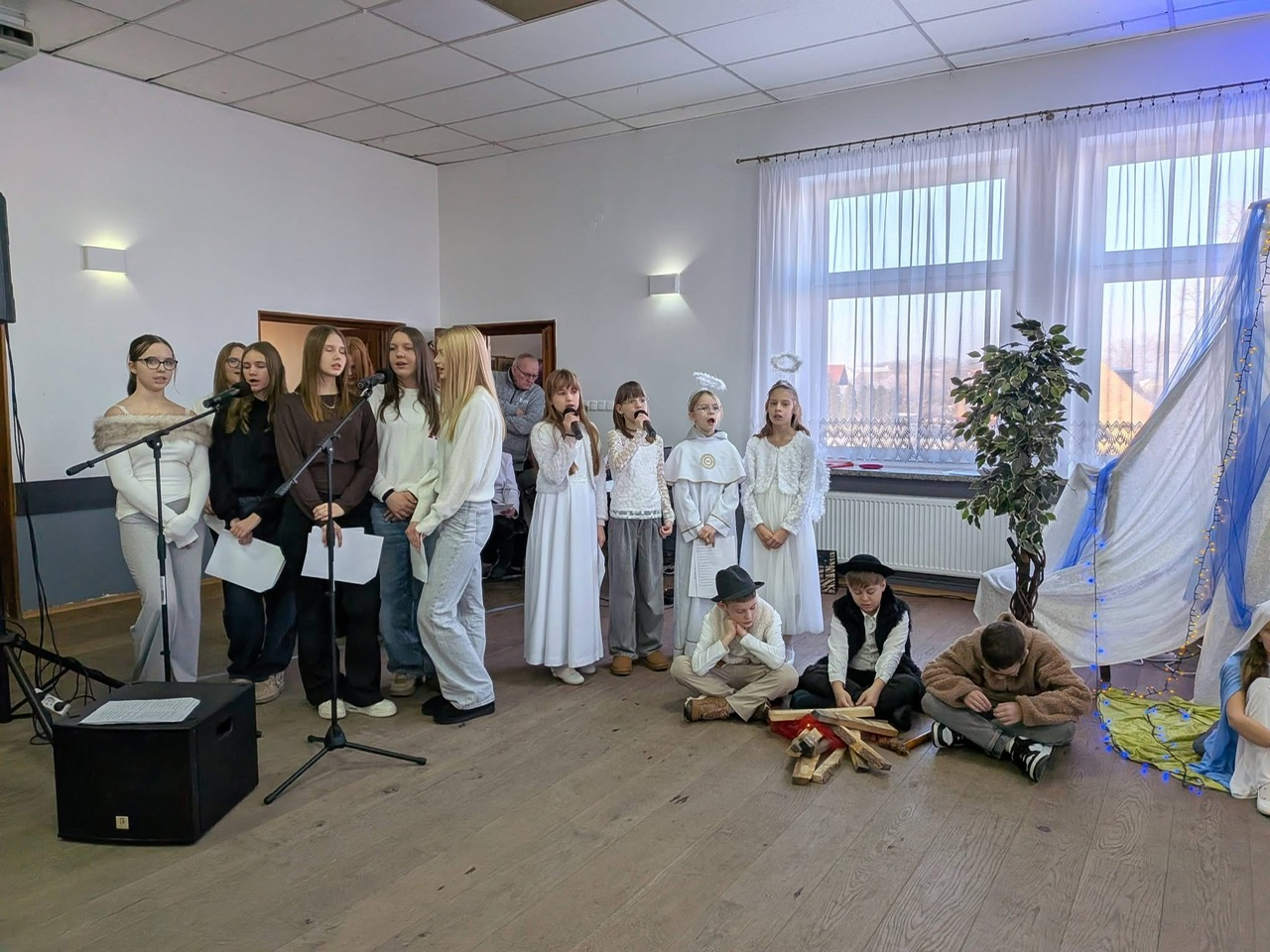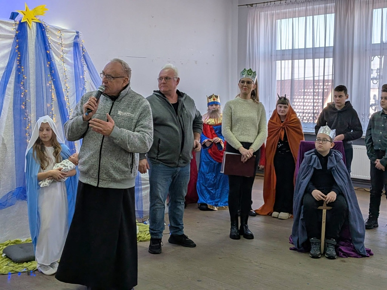 Kolejnym punktem obchodów było spotkanie w Domu Strażaka. Tam uczniowie Szkoły Podstawowej w Świętej, przygotowani przez Annę Brzezińską, zaprezentowali tegoroczne jasełka. Przedstawienie zachwyciło publiczność – nie zabrakło wzruszeń, uśmiechów i gromkich braw. Młodym artystom należą się ogromne podziękowania za zaangażowanie i piękny występ.