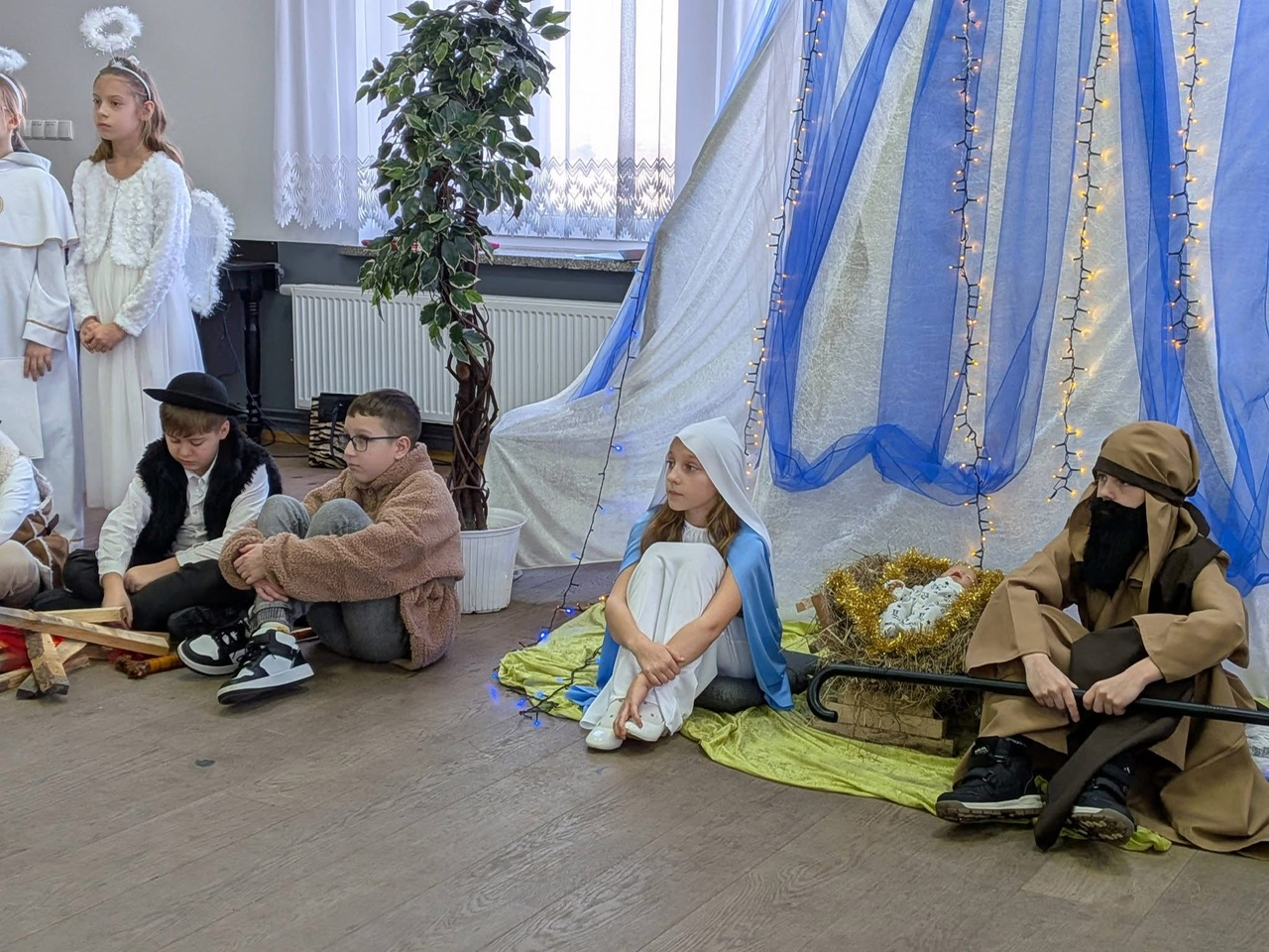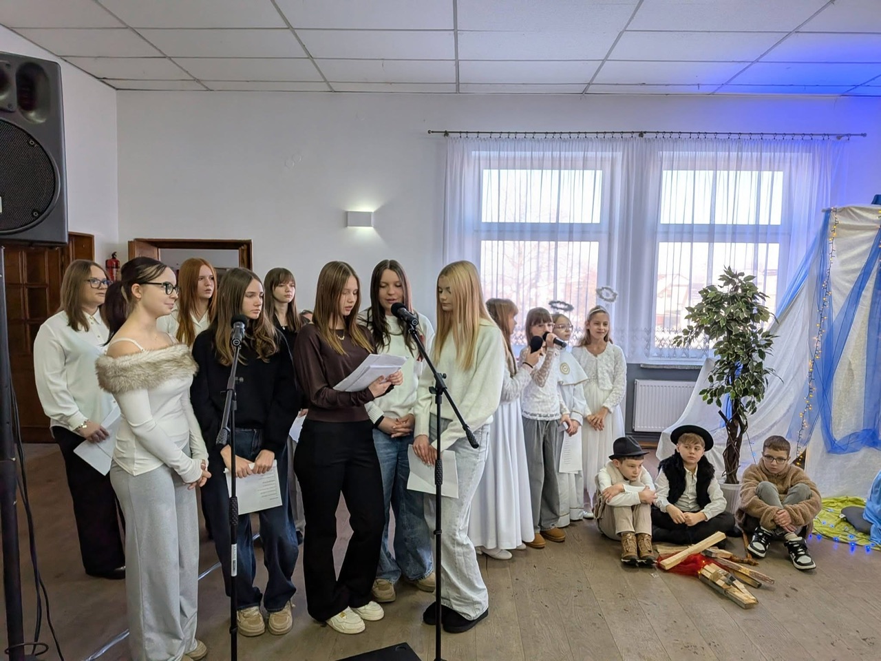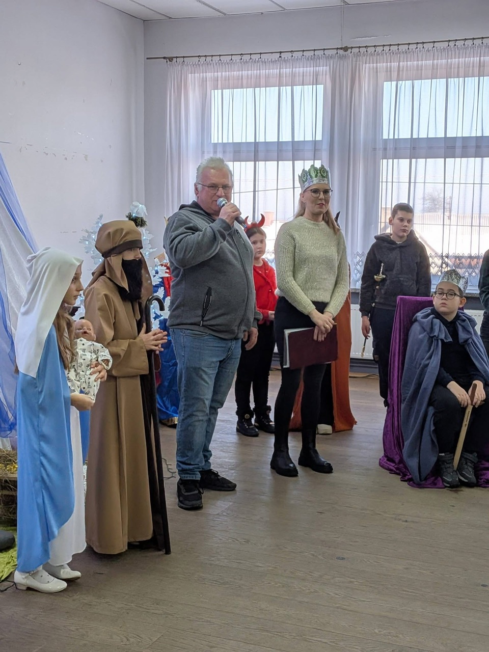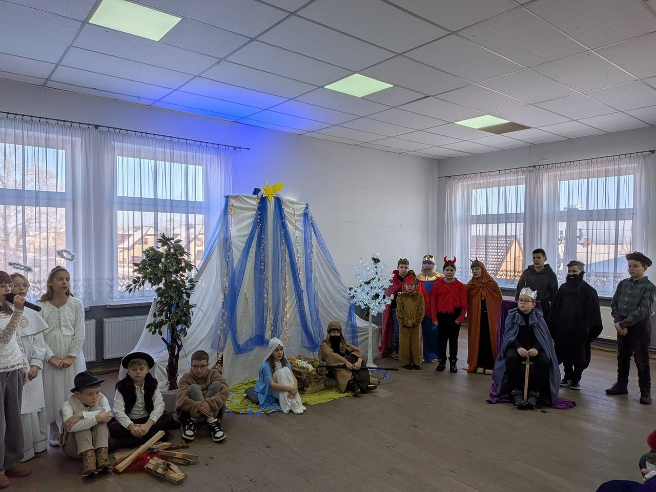 Kolejnym punktem obchodów było spotkanie w Domu Strażaka. Tam uczniowie Szkoły Podstawowej w Świętej, przygotowani przez Annę Brzezińską, zaprezentowali tegoroczne jasełka. Przedstawienie zachwyciło publiczność – nie zabrakło wzruszeń, uśmiechów i gromkich braw. Młodym artystom należą się ogromne podziękowania za zaangażowanie i piękny występ.