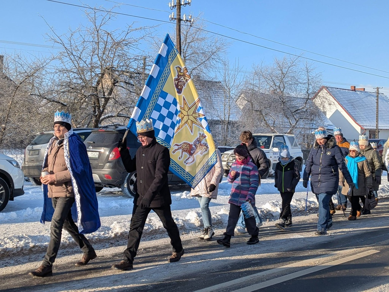 Po Mszy Świętej mieszkańcy wioski wyruszyli w barwnym Orszaku Trzech Króli, który przeszedł przez miejscowość wśród wspólnego śpiewu kolęd i świątecznej atmosfery.