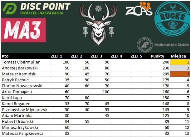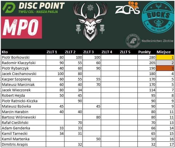 - Michał Kurcin (Bucks DGC Złotów) – wynik: +5