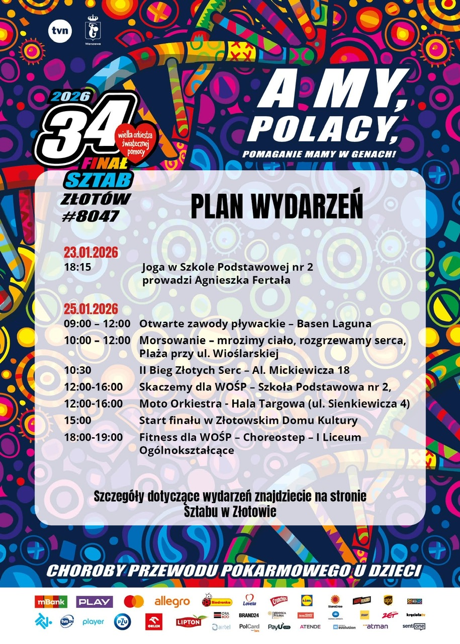Tegoroczny finał odbywa się pod hasłem „A my, Polacy, pomaganie mamy w genach!”, a środki zbierane są na rzecz dzieci z chorobami przewodu pokarmowego. Sztab WOŚP Złotów przygotował bogaty program, który rozciąga się na kilka dni.