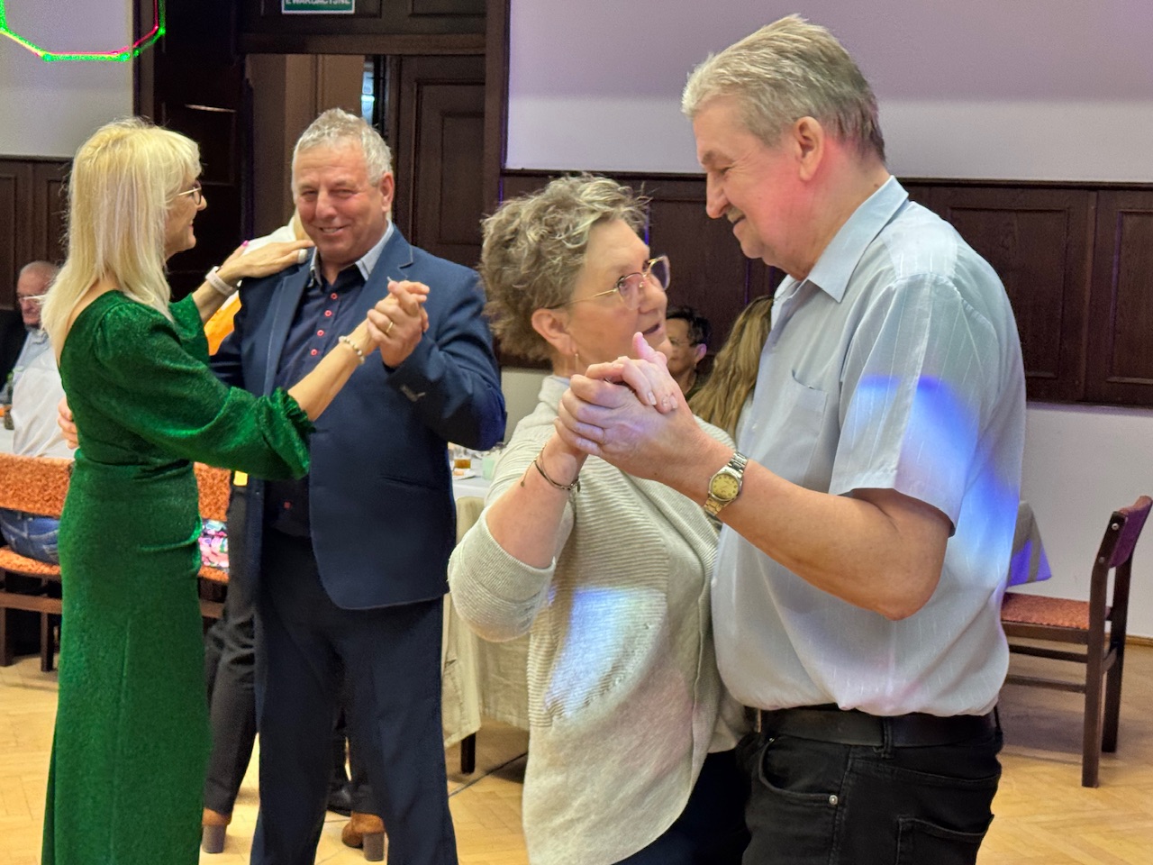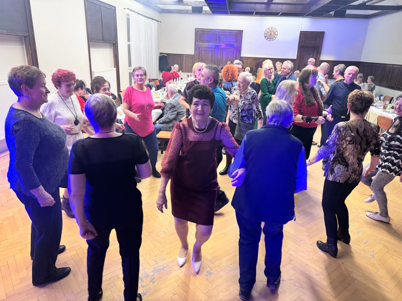 Sala szybko wypełniła się dźwiękami znanych i lubianych melodii. Wspólne śpiewanie integrowało uczestników, a parkiet ani na moment nie świecił pustkami. Biesiada stała się doskonałą okazją do spotkań, wspomnień i celebracji wyjątkowej roli babć i dziadków w życiu lokalnej społeczności.