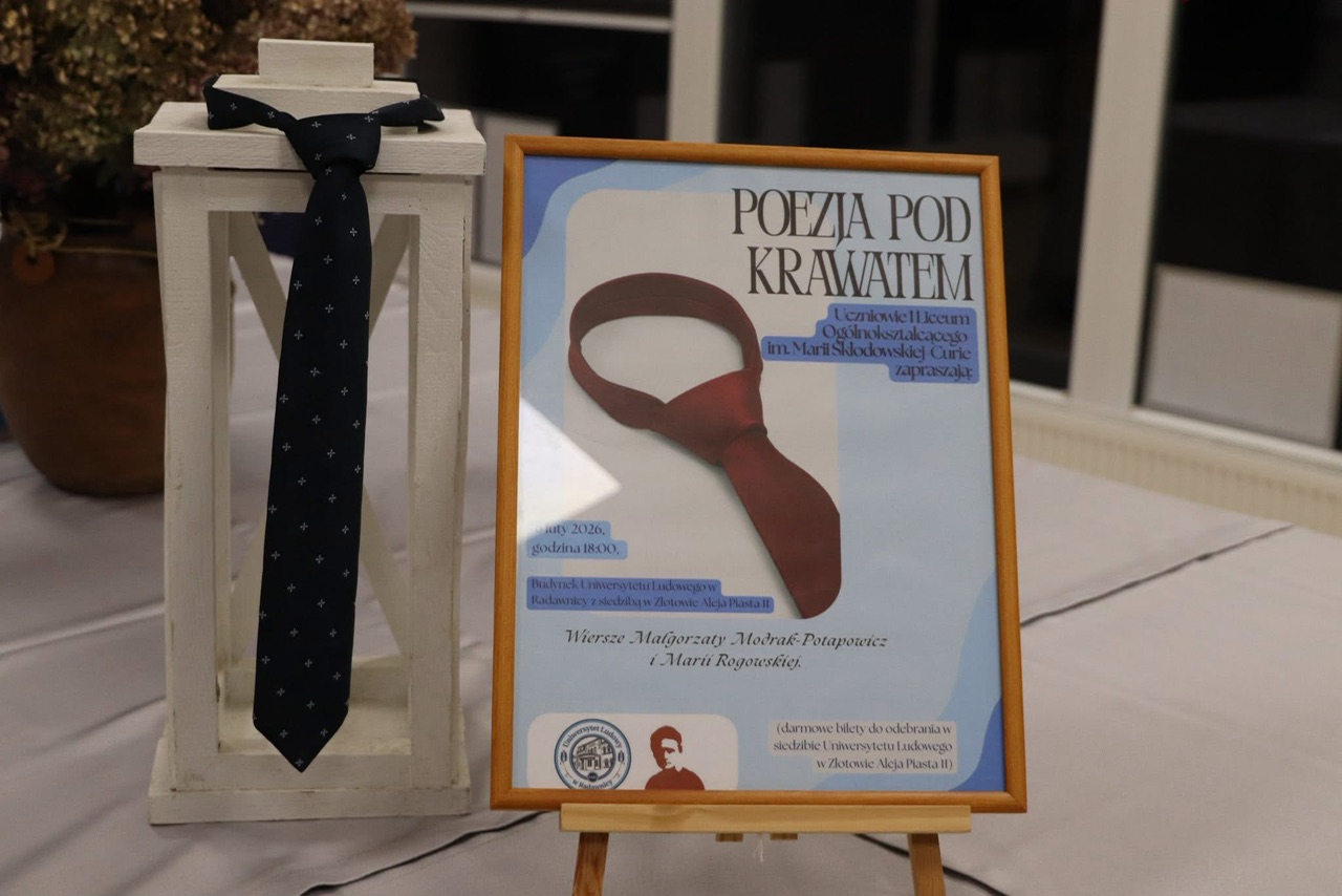 Właśnie w takiej atmosferze odbył się wieczorek poetycki „Pod krawatem”, zorganizowany z okazji 80-lecia I Liceum Ogólnokształcącego im. Marii Skłodowskiej-Curie w Złotowie.