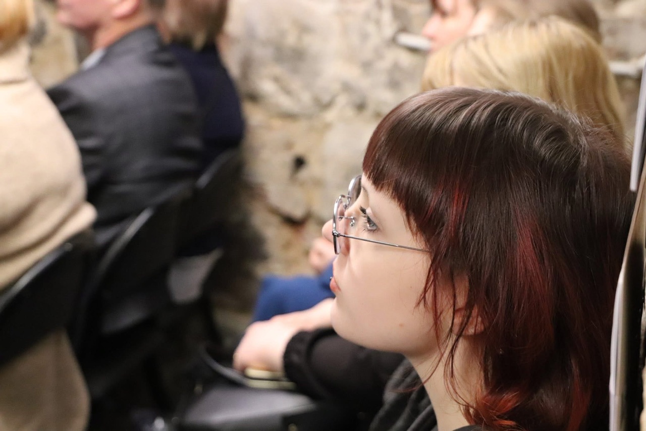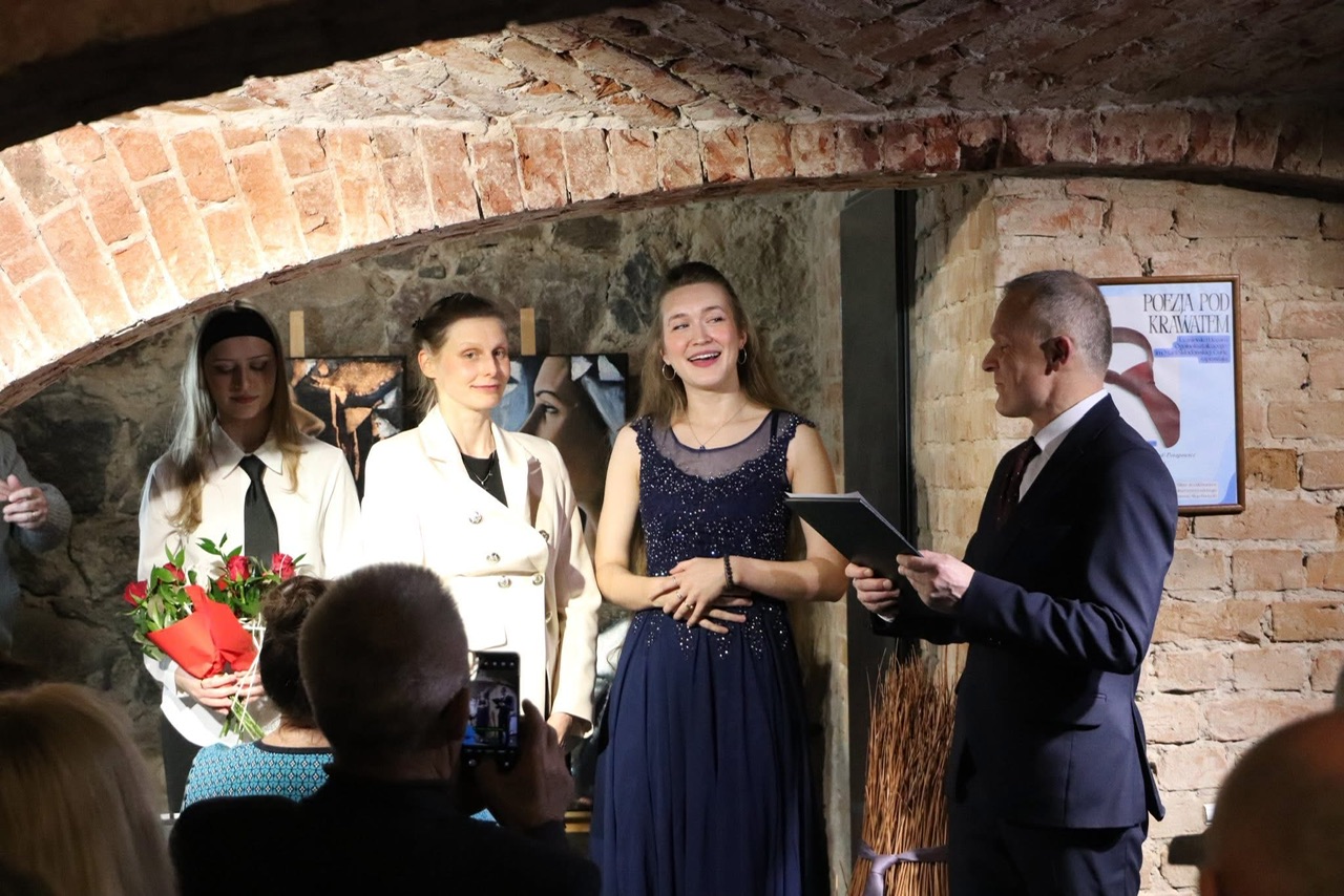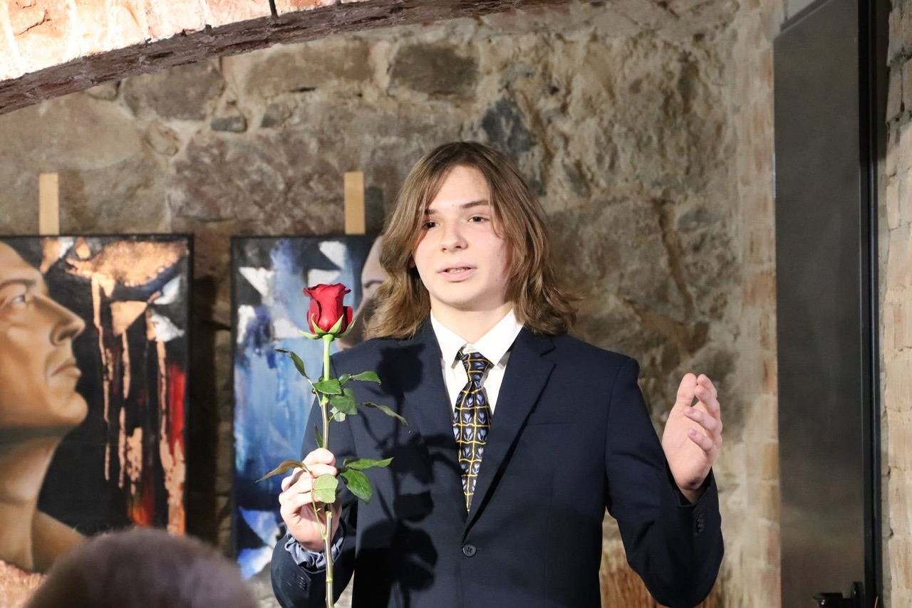 Tego wieczoru poezja zbudowała most pomiędzy pokoleniami. Wybrzmiały wiersze dwóch absolwentek złotowskiego liceum – Marii Rogowskiej oraz Małgorzaty Modrak-Potapowicz. Ich twórczość stała się fundamentem całego spotkania, a obecność Autorek nadała wydarzeniu szczególny, osobisty wymiar. Teksty ożyły w interpretacjach dziewięciorga uczniów liceum, którzy z dużą wrażliwością i dojrzałością weszli w poetyckie słowo.