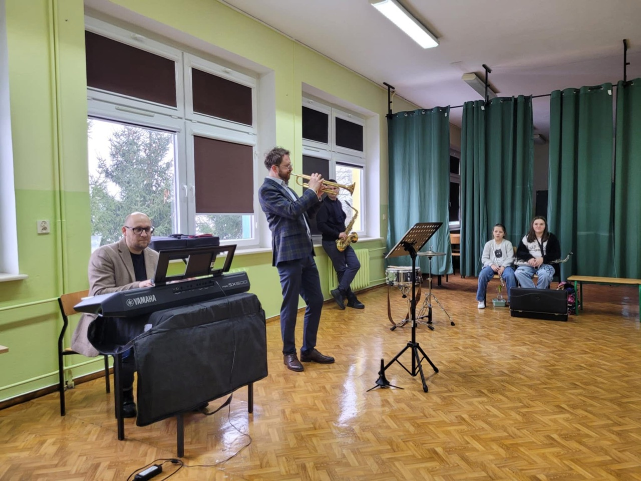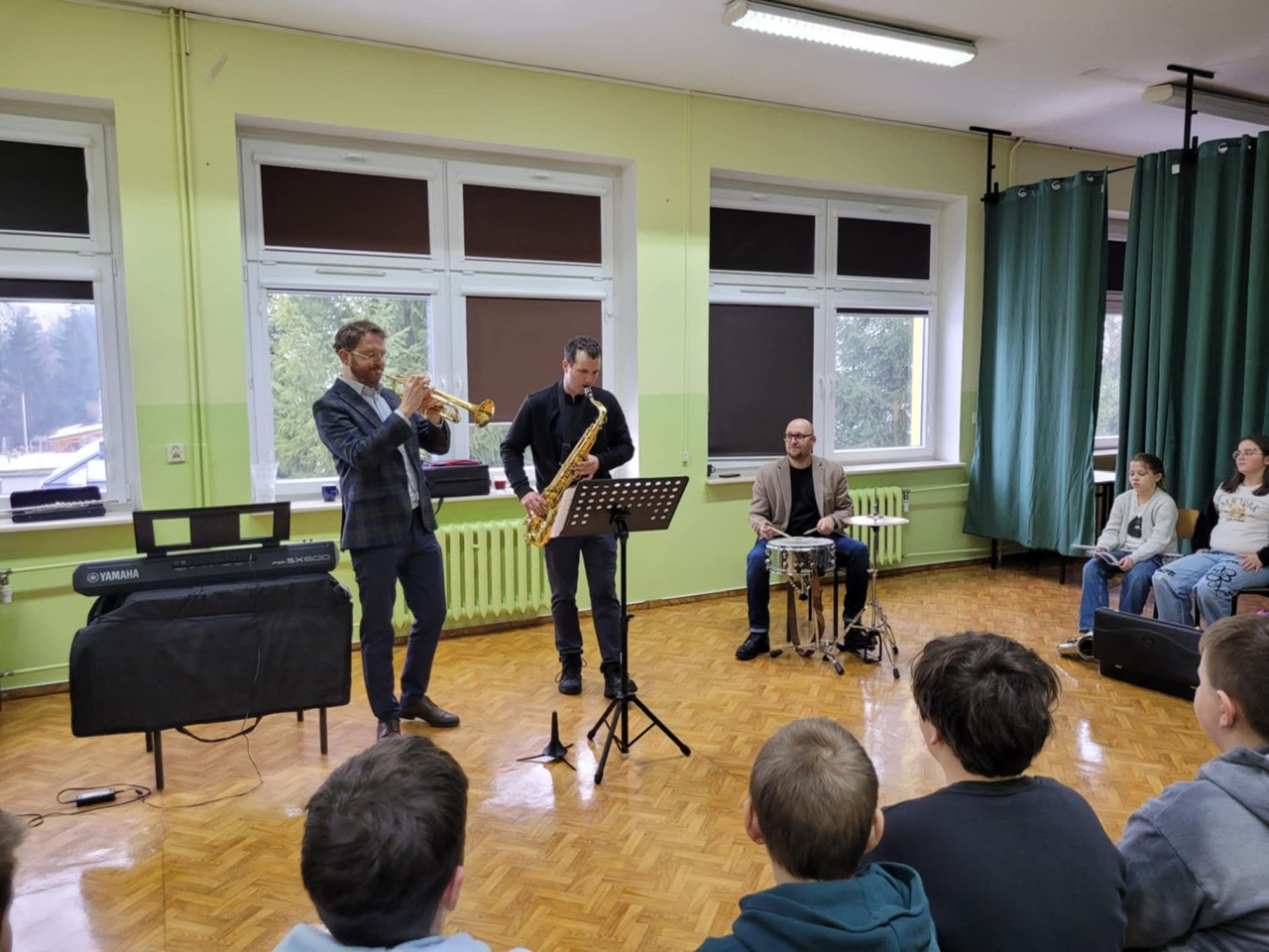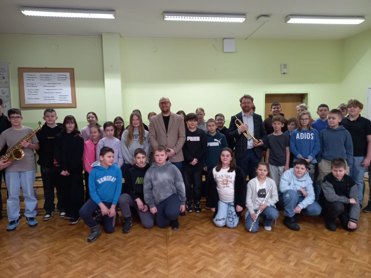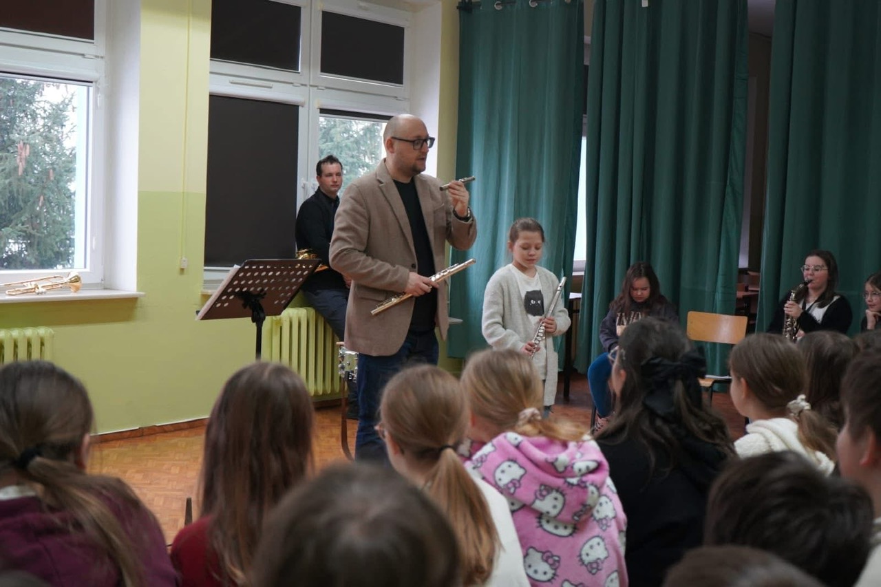 Podczas wizyty goście zaprezentowali młodzieży różnorodne instrumenty muzyczne, a także podzielili się swoimi umiejętnościami, wykonując krótkie pokazy gry. Spotkanie było nie tylko okazją do poznania brzmienia instrumentów z bliska, ale również do rozmowy o pasji do muzyki i możliwościach jej rozwijania w lokalnej orkiestrze.