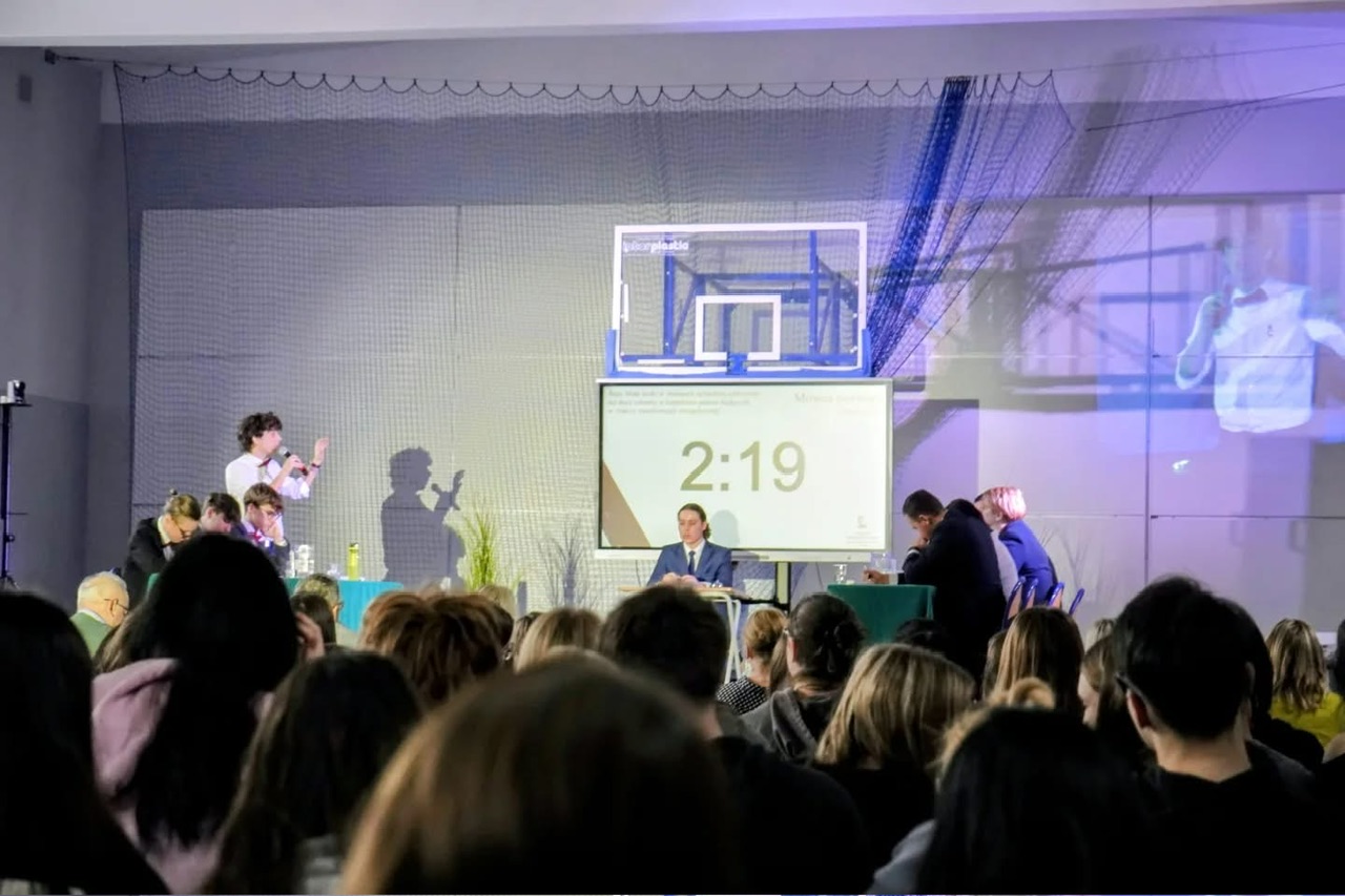 Debata była pełna emocji i dynamicznych dyskusji, a każdy z uczestników prezentował swoje stanowisko z pasją i przekonaniem. Widownia, składająca się z uczniów oraz nauczycieli, aktywnie reagowała na argumenty obu stron, co dodatkowo podniosło poziom zaangażowania i dramaturgii wydarzenia.